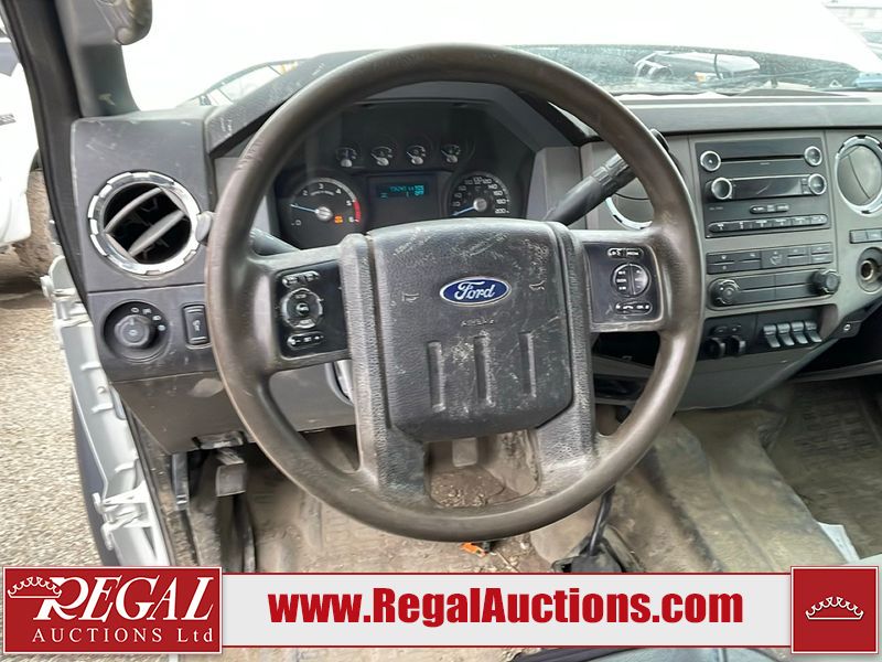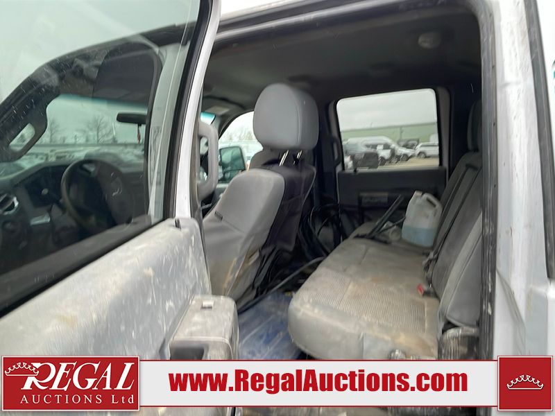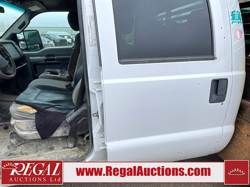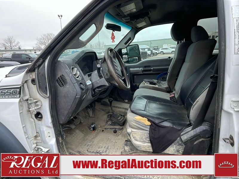 This 2016 FORD F-550 SUPER DUTY - DUAL REAR WHEEL SUPERCREW DRW 4WD 6.8L is powered by a 10 cylinder gasoline engine and an automatic transmission. It is equipped with four wheel drive. The truck has seats for 6 people. The truck has low mileage for its age. The vehicle has some mechanical problems. The vehicle is physically not drivable. This unit will have to be towed through the auction as The battery is missing. The vehicle requires a boost to start and may require a booster pack in order to stay running. The engine has a top end tick. The transmission will not shift. The four wheel drive system does not work. The suspension is broken. The steering rod is entirely attached and broken. The body looks to be in rough condition overall. There is severe dent damage on the front bumper and right rear door. The left front door is missing. There is conspicuous paint peeling on the right front door. There are incidental scratches on the front bumper, hood, left front fender, left front door, left rear door, left rear fender, rear bumper, right rear fender, right rear door, right front door, and right front fender. There are minimal chips on the hood, roof, left front fender, left front door, left rear door, left rear fender, rear bumper, right rear fender, right rear door, right front door, and right front fender. There is dent damage on the left front fender. There is paint peeling on the left rear door. There are very minor chips on the grille. The interior looks to be in rough condition overall. The dashboard is broken. The radio screen is cracked. The dashboard, driver's seat, passenger seat, rear seats, and doors are stained. The driver's seat is torn. The dashboard, driver's seat, passenger seat, rear seats, and doors are dirty. The carpet is dirty. The windshield looks to be in good condition. The front tires are both worn. The rear tires both have lots of tread remaining. There are no Black Book values available for this model year.