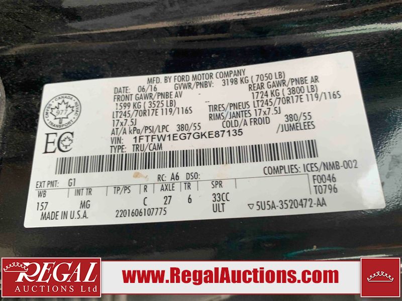 This 2016 FORD F150 XLT SUPERCREW SWB 4WD 3.5L is powered by a turbocharged 6 cylinder gasoline engine and an automatic transmission. It is equipped with four wheel drive. The truck has seats for 6 people. The truck has high mileage for its age. The vehicle has high value options including a backup camera. The Check Engine and Tire Pressure lights are on. The vehicle has some mechanical problems. The vehicle is physically not drivable. It will have to be towed. The transmission will not engage and the vehicle will not move. This unit does not move when put into gear, the rear end is making a knocking noise. When placed back into park there is a snapping noise. The battery is missing. The body looks to be in rough condition overall. There is very bad hail on the hood. There is severe dent damage on the left rear fender. The rear bumper is broken. The fascia is cracked on the front bumper. The fascia is broken on the rear bumper. There is conspicuous paint peeling on the right rear fender. There are chips on the front bumper, hood, left front fender, left front door, left rear door, left rear fender, tail gate, right rear fender, right rear door, right front door, and right front fender. There are minor scratches on the front bumper, hood, left front fender, left front door, left rear door, left rear fender, tail gate, right rear fender, right rear door, and right front door. There is minimal rust on the front bumper. There is dent damage on the left front door. The tail gate has parts missing. There is incidental paint peeling on the right rear door and right front door. There is very minor dent damage in a few areas around the body. There are very minor scratches on the right front fender. The left headlight is broken. The right tail light is broken. The interior looks to be in rough condition overall. The dashboard, driver's seat, passenger seat, rear seats, and doors are dirty. The driver's seat is torn. The driver's seat and passenger seat are stained. There are some cigarette burns on the passenger seat. The carpet is dirty. The roof liner is dirty. The infotainment screen is broken. The rear camera is an operable. The RF window is broken. The windshield is cracked. All of the tires are nearly bald and should be replaced. There is a fifth wheel hitch mounted in the rear.