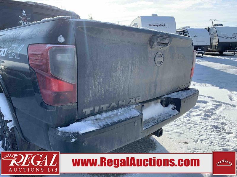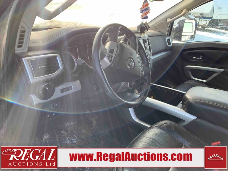 This 2016 NISSAN TITAN XD PRO 4X CREW CAB 4WD 5.0L is powered by a 8 cylinder diesel engine and an automatic transmission. It is equipped with four wheel drive. The truck has seats for 5 people. The vehicle has high value options including leather upholstery, power seats, heated seats, and navigation. The vehicle has some mechanical problems. This unit will have to be towed through the auction as the engine only clicks with external power applied. it's odometer, engine, transmission and driveline cannot be confirmed. Diagnostics will need to be performed to determine its exact issues. The body looks to be in rough condition overall. There are some chips on the front bumper. There are scratches on the front bumper, hood, roof, left front fender, left front door, left rear door, left rear fender, rear bumper, trunk lid, rear door, tail gate, pickup bed, right rear fender, right rear door, right front door, and right front fender. There is minor rust on the front bumper. There are slight chips on the grille, hood, roof, left front fender, left front door, left rear door, left rear fender, rear bumper, trunk lid, rear door, tail gate, pickup bed, right rear fender, right rear door, right front door, and right front fender. There is incidental dent damage on the left rear door. The interior looks to be in fair condition overall. The dashboard, driver's seat, passenger seat, rear seats, and doors are dirty. The carpet is dirty. The right front window is cracked. The windshield is chipped. The tires are all worn.