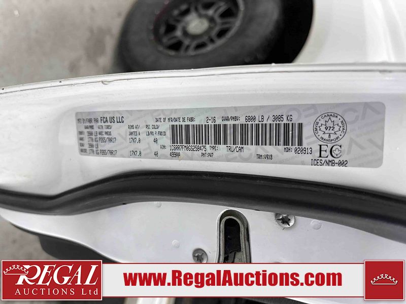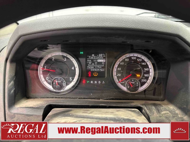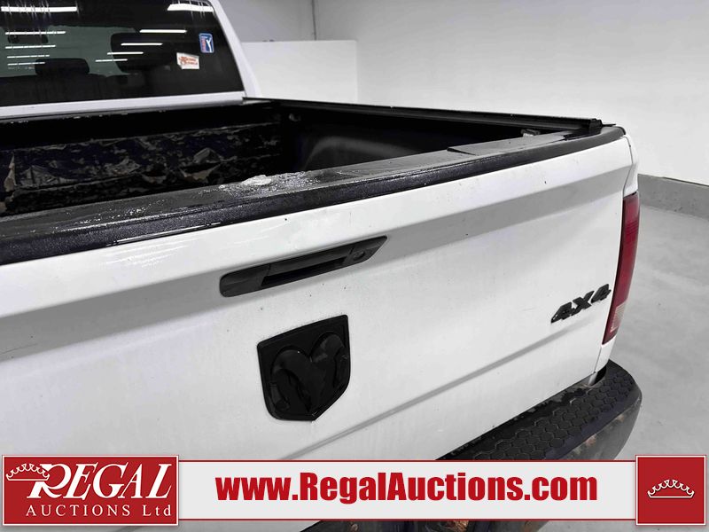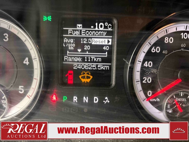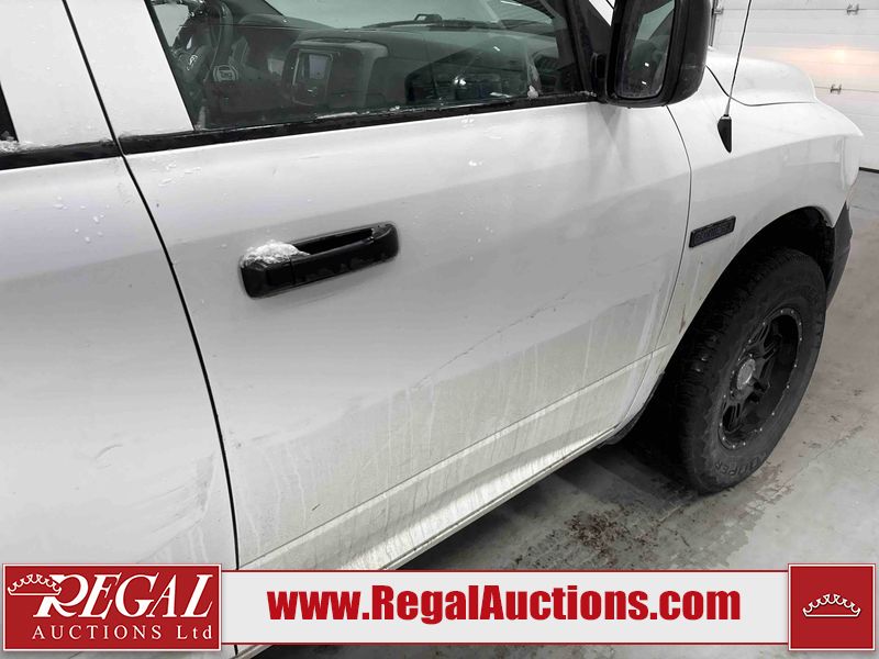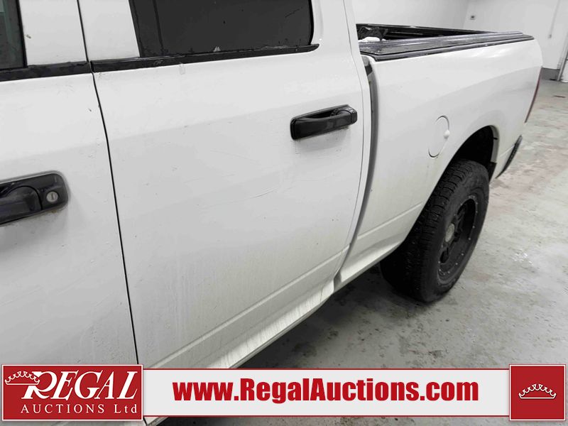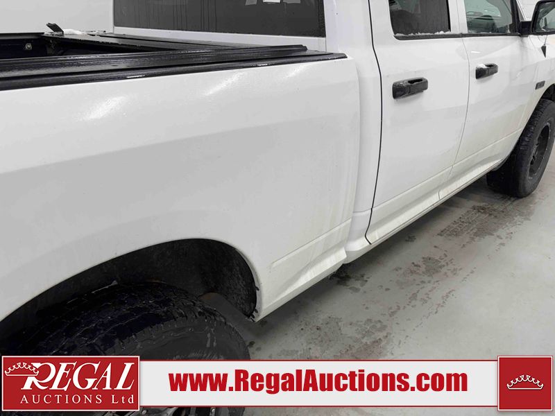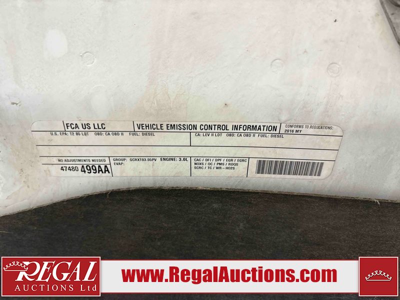 This 2016 RAM 1500 QUAD CAB is powered by a turbocharged 3.0L V6 diesel engine and an automatic transmission. It is equipped with four-wheel drive. The truck has seats for 6 people. The truck has high mileage for its age. The body looks to be in fair condition overall. There is noteworthy rust on the front bumper and rear bumper. There is minimal rust on the hood and tail gate. The tail gate is cracked. There are very minor chips in many areas around the body. There are very minor scratches in many areas around the body. There is very minor dent damage in a few areas around the body. The interior looks to be in good condition overall. The driver seat is torn. The driver side mirror housing is broken. The windshield is cracked. The passenger front tire is worn. The rest of the tires all have lots of tread remaining. This truck is being sold by an automotive broker. The vehicle will be sold with the following declarations: Auctioneer Announcement "** WATER PUMP LEAK ** ** DIESEL ** ". Regal Auctions Ltd. makes no guarantee or warranty, either express or implied, with respect to the data provided in this report. The information has been provided from the consignor and from sources generally believed to be reliable, however the accuracy of this information cannot be guaranteed by Regal Auctions.