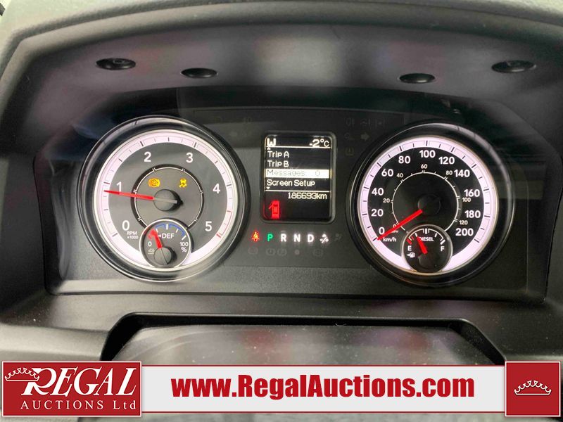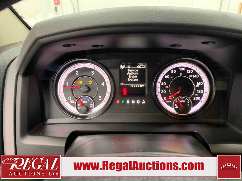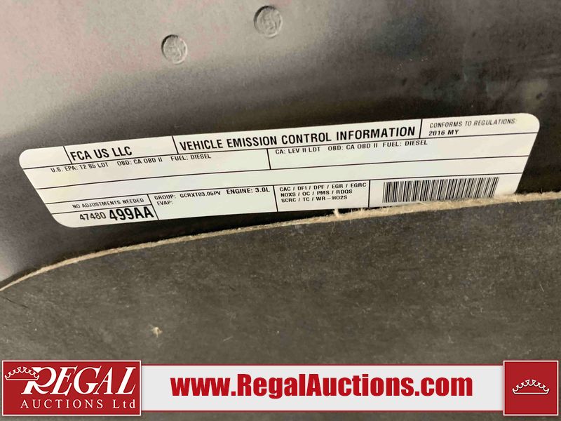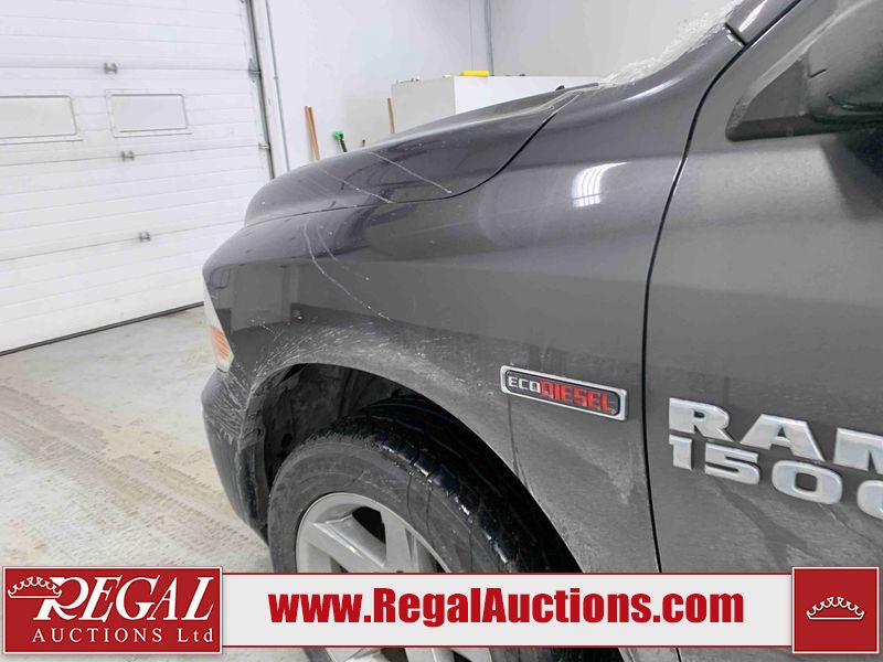 This 2016 RAM 1500 CREWCAB 4WD SWB 3.0L is powered by a turbocharged V6 cylinder diesel engine and an automatic transmission. It is equipped with four wheel drive. The truck has seats for 6 people. The truck has low mileage for its age. The vehicle has high value options including a backup camera. The body looks to be in rough condition overall. There is some rust on the front bumper, left rear fender, and rear bumper. There are chips on the front bumper, hood, roof, left front fender, left rear fender, rear bumper, tail gate, right rear fender, right rear door, right front door, and right front fender. There are scratches on the front bumper, left rear fender, rear bumper, tail gate, right rear fender, right rear door, right front door, and right front fender. There is dent damage on the tail gate. There is incidental rust on the right front door. There are chips in a few areas around the body. There are scratches in some areas around the body. The interior looks to be in good condition overall. The windshield looks to be in good condition. All of the tires have lots of tread remaining. This truck is being sold by an automotive broker. Regal Auctions Ltd. makes no guarantee or warranty, either express or implied, with respect to the data provided in this report. The information has been provided from the consignor and from sources generally believed to be reliable, however the accuracy of this information cannot be guaranteed by Regal Auctions.