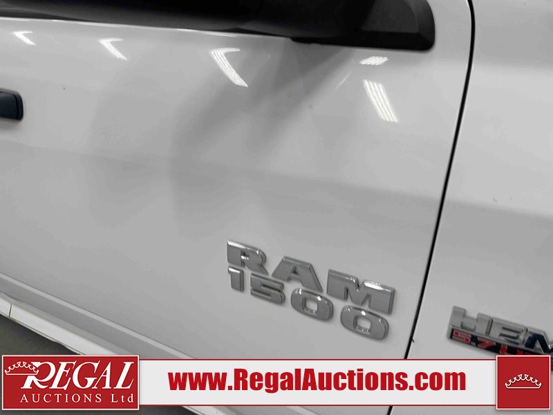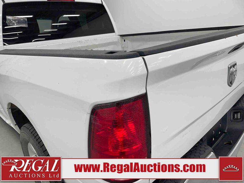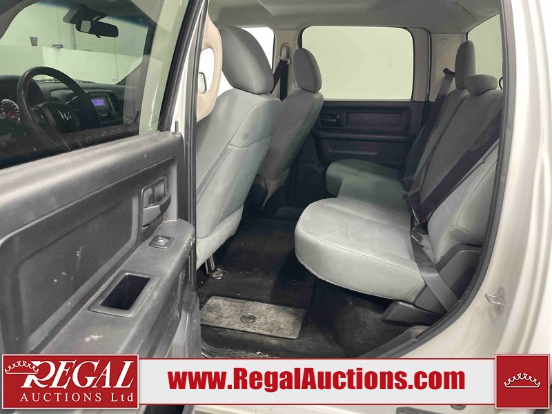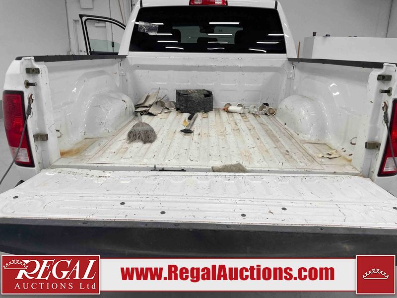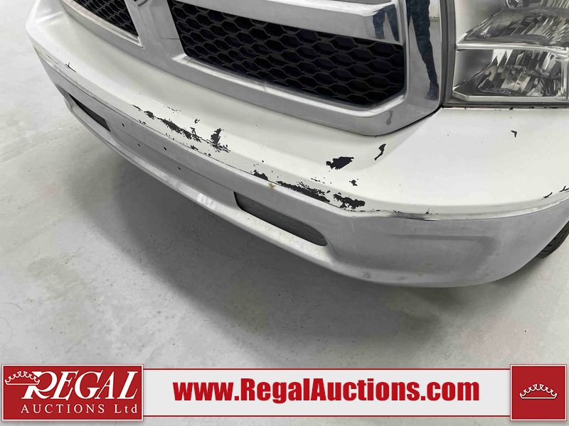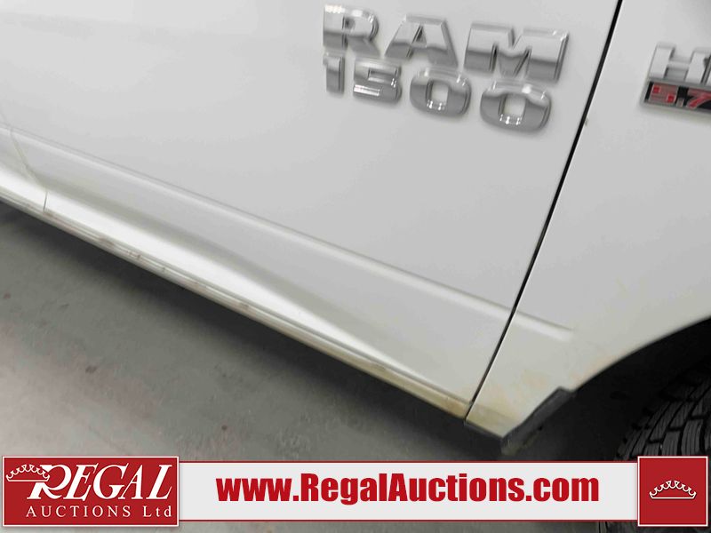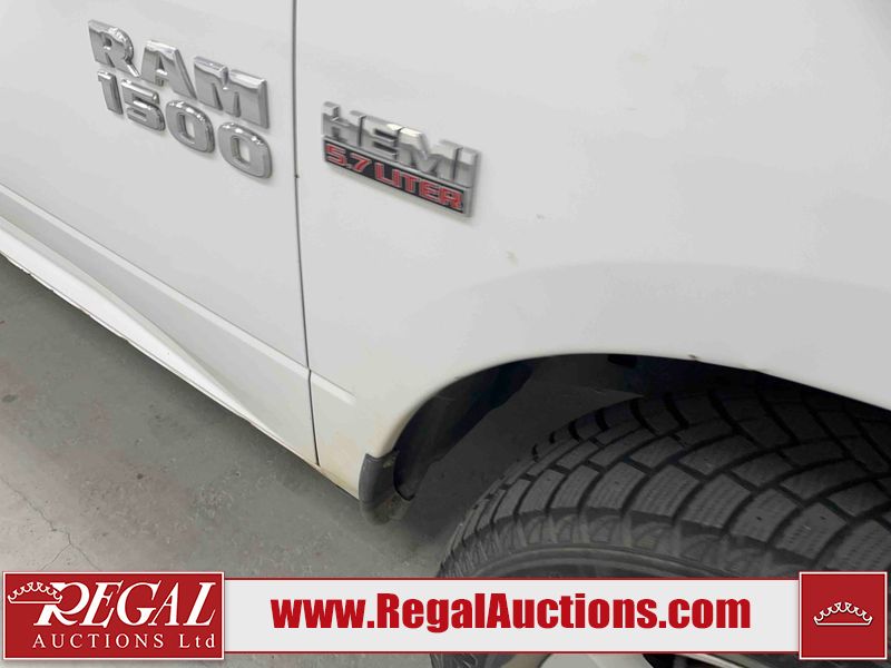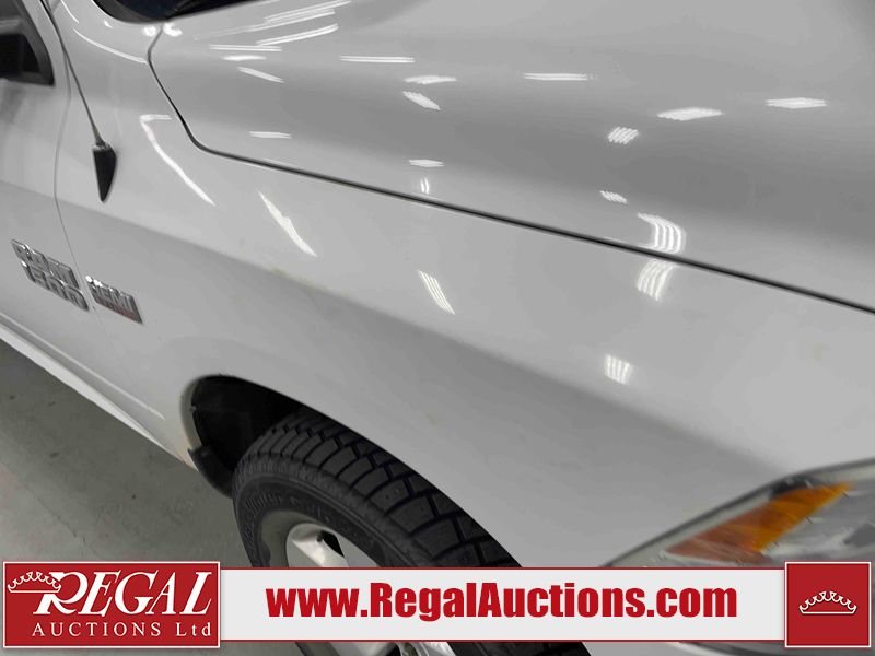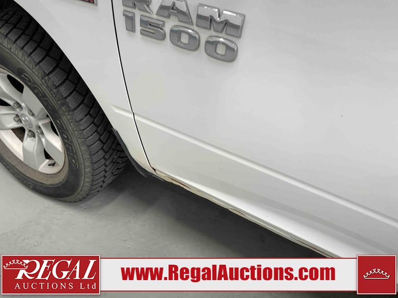 This 2016 RAM 1500 SXT CREW CAB SWB 4WD 5.7L is powered by a 8 cylinder gasoline engine and an automatic transmission. It is equipped with four wheel drive. The truck has seats for 6 people. The mileage is average considering the truck's age. The Tire Pressure light is on. The vehicle has some mechanical problems. The engine has a top end tick. The body looks to be in rough condition overall. The front bumper has been repainted poorly. There is misaligned damage to the rear bumper. There is extensive dent damage on the left rear fender, rear bumper, right rear fender, right rear door, and right front door. There is pronounced paint peeling on the front bumper. The grille is cracked. There is noteworthy rust on the roof, left rear fender, tail gate, right rear fender, right rear door, and right front door. There are conspicuous scratches on the left rear door, tail gate, right rear fender, and right rear door. There is pronounced paint overspray on the left rear fender. There are chips on the front bumper, hood, roof, left front fender, left front door, left rear door, left rear fender, rear bumper, tail gate, right rear fender, right rear door, right front door, and right front fender. There are slight scratches on the front bumper, hood, roof, left front fender, left front door, left rear fender, rear bumper, right front door, and right front fender. There is rust on the front bumper, left front fender, rear bumper, and right front fender. There is slight dent damage on the front bumper, left front door, tail gate, and right front fender. There is incidental paint peeling on the left rear fender, right rear door, and right front door. There is very minor dent damage in a few areas around the body. There is paint over spray damage to the tail lights. The interior looks to be in rough condition overall. The roof liner is torn. The dashboard is worn. The driver's seat and rear seats are torn. The passenger seat is stained. The carpet is dirty. Multiple dashboard panels have been removed and are on the floor in the cab. The cab side has severe dents, moderate surface rust and minor paint peeling. The driver side mirror housing is broken. The passenger side mirror housing is broken. The windshield is cracked. All of the tires have lots of tread remaining.