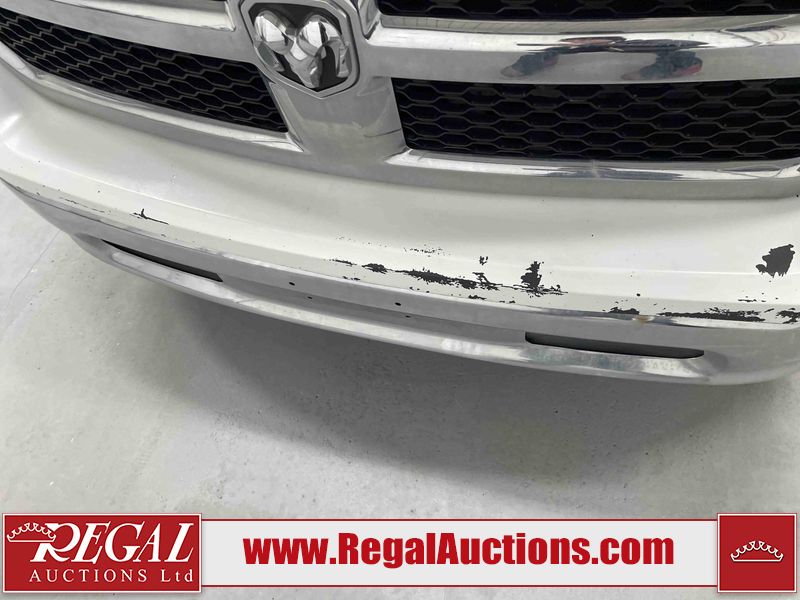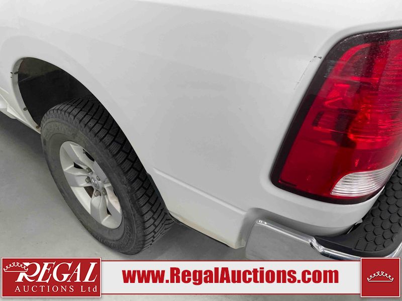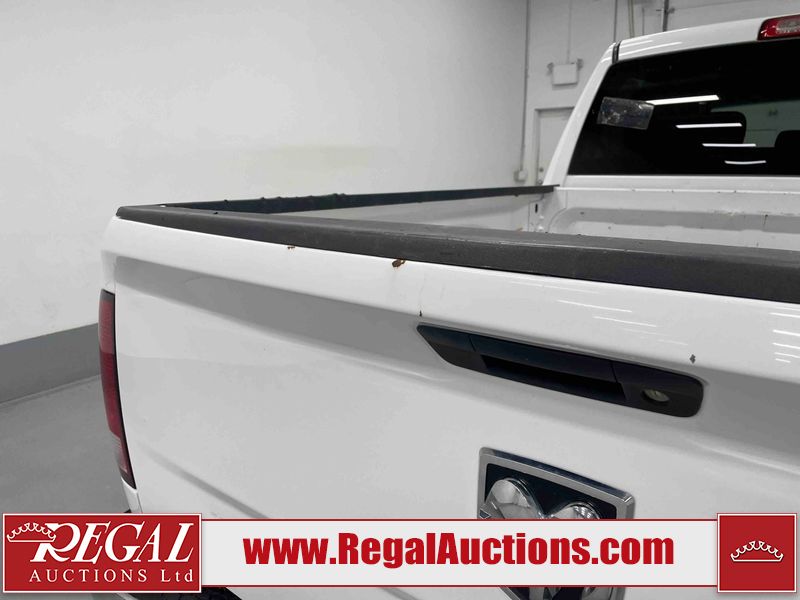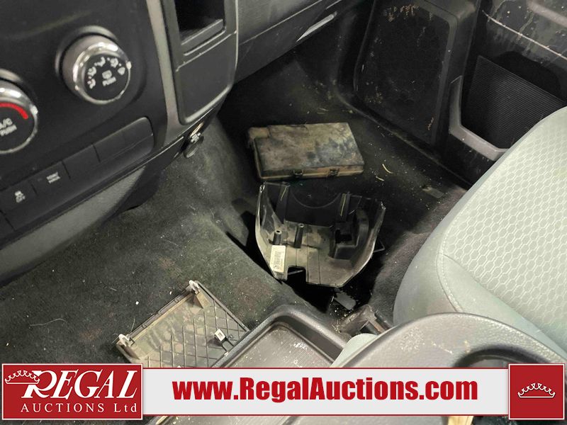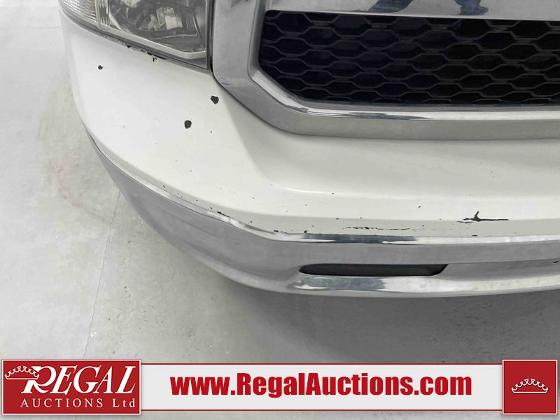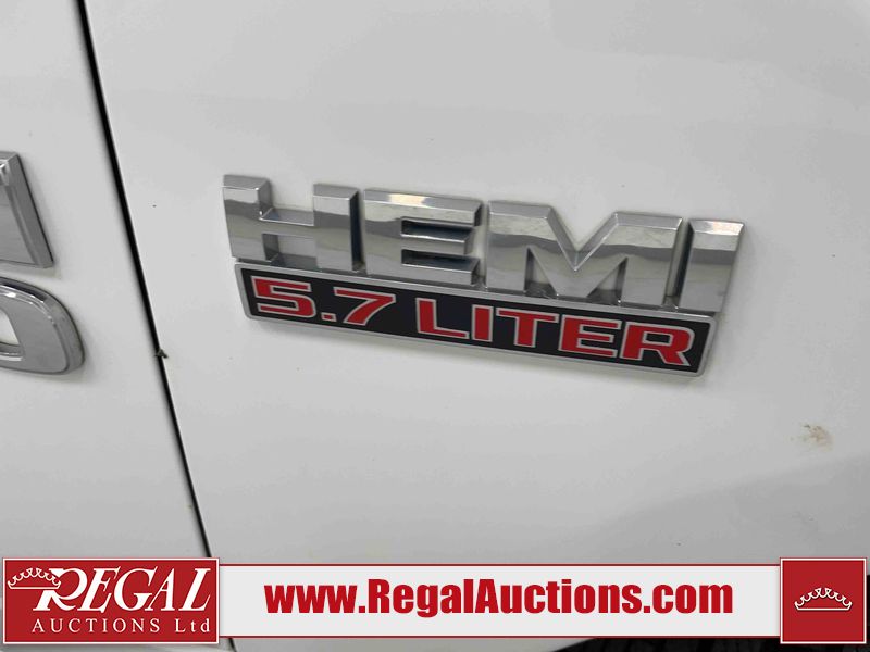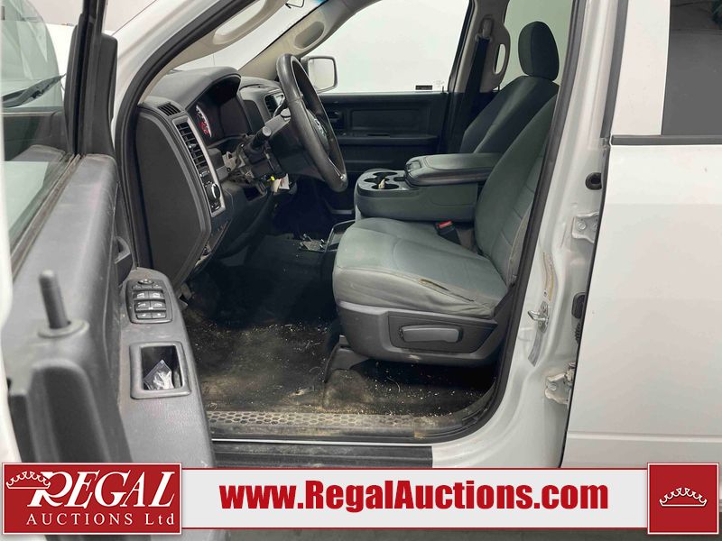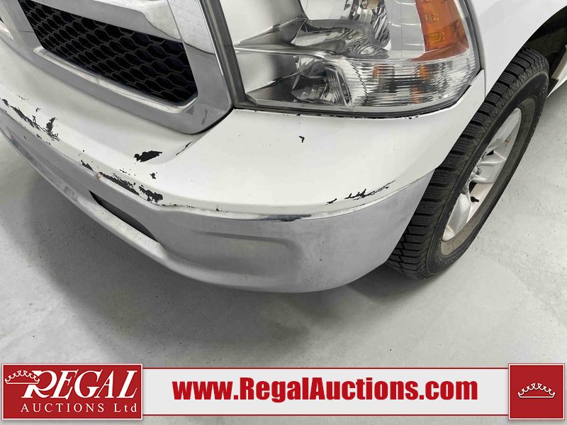 This 2016 RAM 1500 SXT CREW CAB SWB 4WD 5.7L is powered by a 8 cylinder gasoline engine and an automatic transmission. It is equipped with four wheel drive. The truck has seats for 6 people. The mileage is average considering the truck's age. The Tire Pressure light is on. The vehicle has some mechanical problems. The engine has a top end tick. The body looks to be in rough condition overall. The front bumper has been repainted poorly. There is misaligned damage to the rear bumper. There is extensive dent damage on the left rear fender, rear bumper, right rear fender, right rear door, and right front door. There is pronounced paint peeling on the front bumper. The grille is cracked. There is noteworthy rust on the roof, left rear fender, tail gate, right rear fender, right rear door, and right front door. There are conspicuous scratches on the left rear door, tail gate, right rear fender, and right rear door. There is pronounced paint overspray on the left rear fender. There are chips on the front bumper, hood, roof, left front fender, left front door, left rear door, left rear fender, rear bumper, tail gate, right rear fender, right rear door, right front door, and right front fender. There are slight scratches on the front bumper, hood, roof, left front fender, left front door, left rear fender, rear bumper, right front door, and right front fender. There is rust on the front bumper, left front fender, rear bumper, and right front fender. There is slight dent damage on the front bumper, left front door, tail gate, and right front fender. There is incidental paint peeling on the left rear fender, right rear door, and right front door. There is very minor dent damage in a few areas around the body. There is paint over spray damage to the tail lights. The interior looks to be in rough condition overall. The roof liner is torn. The dashboard is worn. The driver's seat and rear seats are torn. The passenger seat is stained. The carpet is dirty. Multiple dashboard panels have been removed and are on the floor in the cab. The cab side has severe dents, moderate surface rust and minor paint peeling. The driver side mirror housing is broken. The passenger side mirror housing is broken. The windshield is cracked. All of the tires have lots of tread remaining.