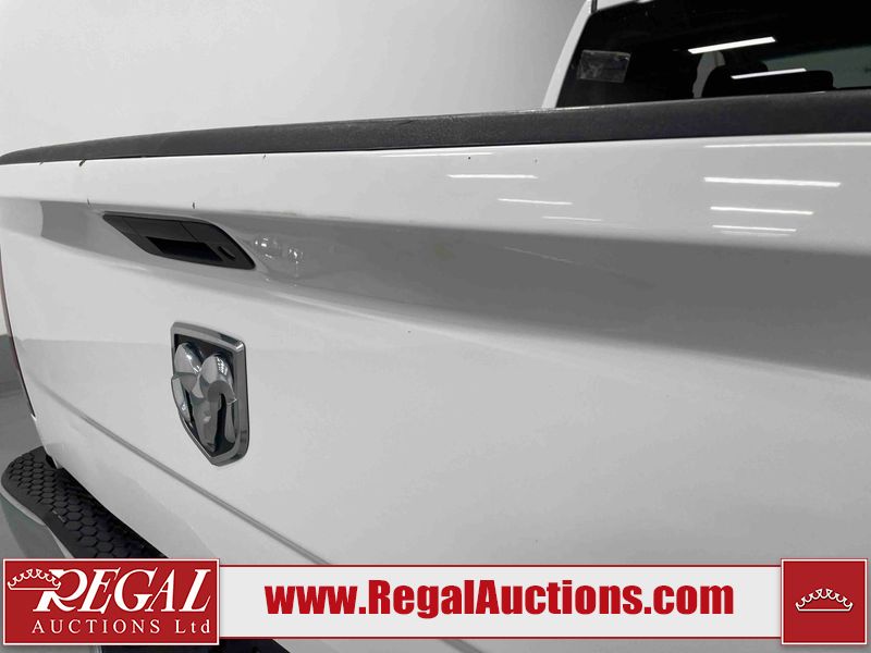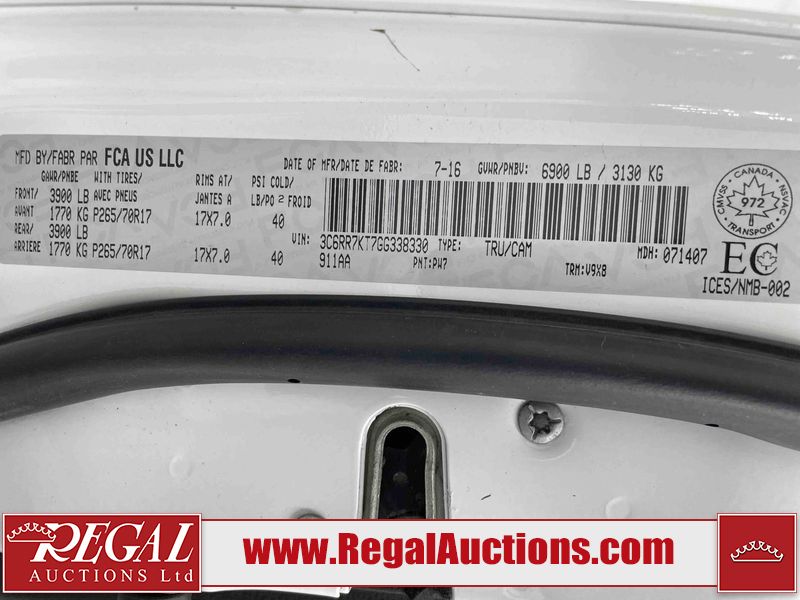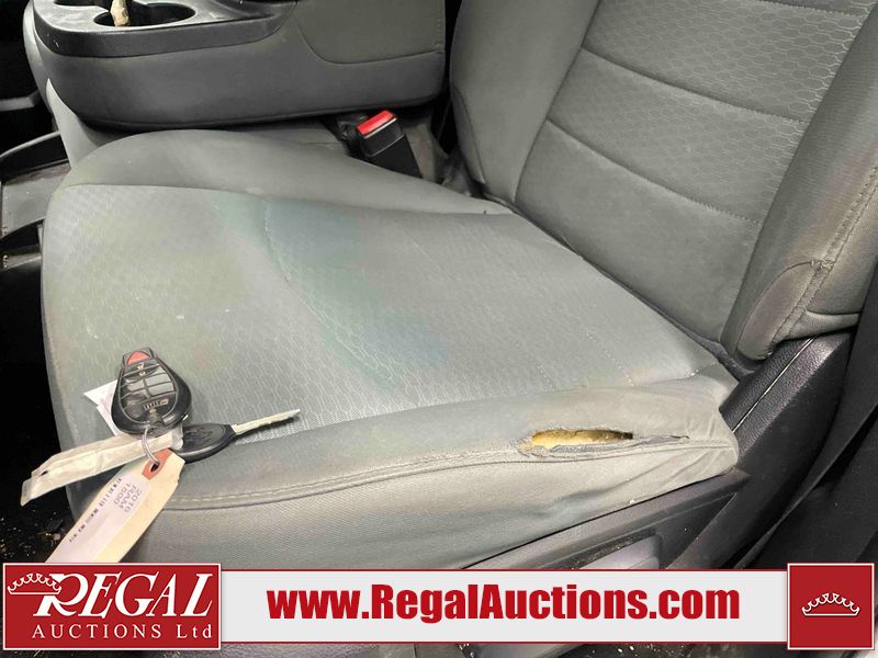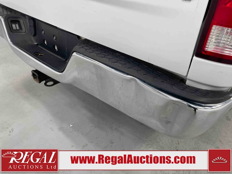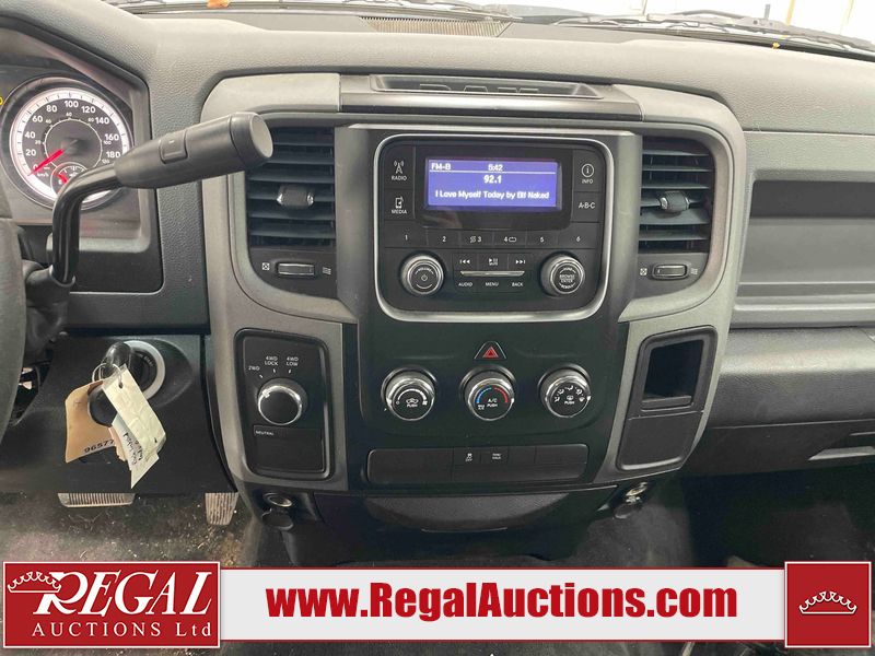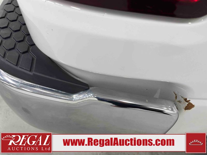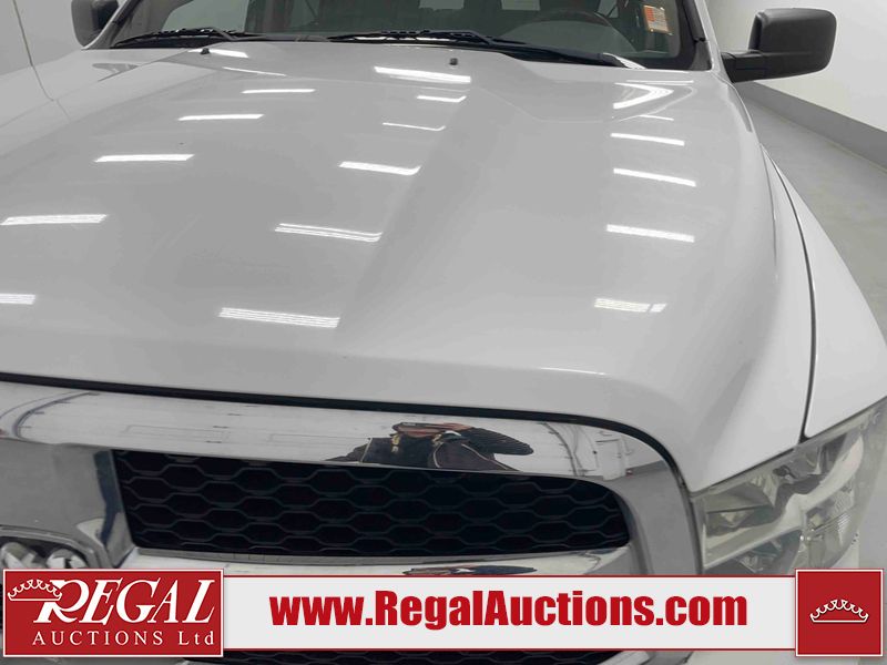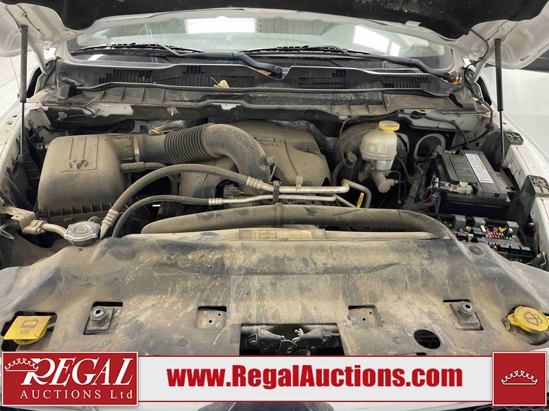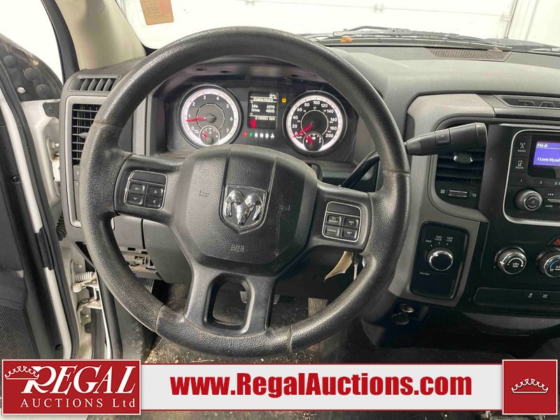 This 2016 RAM 1500 SXT CREW CAB SWB 4WD 5.7L is powered by a 8 cylinder gasoline engine and an automatic transmission. It is equipped with four wheel drive. The truck has seats for 6 people. The mileage is average considering the truck's age. The Tire Pressure light is on. The vehicle has some mechanical problems. The engine has a top end tick. The body looks to be in rough condition overall. The front bumper has been repainted poorly. There is misaligned damage to the rear bumper. There is extensive dent damage on the left rear fender, rear bumper, right rear fender, right rear door, and right front door. There is pronounced paint peeling on the front bumper. The grille is cracked. There is noteworthy rust on the roof, left rear fender, tail gate, right rear fender, right rear door, and right front door. There are conspicuous scratches on the left rear door, tail gate, right rear fender, and right rear door. There is pronounced paint overspray on the left rear fender. There are chips on the front bumper, hood, roof, left front fender, left front door, left rear door, left rear fender, rear bumper, tail gate, right rear fender, right rear door, right front door, and right front fender. There are slight scratches on the front bumper, hood, roof, left front fender, left front door, left rear fender, rear bumper, right front door, and right front fender. There is rust on the front bumper, left front fender, rear bumper, and right front fender. There is slight dent damage on the front bumper, left front door, tail gate, and right front fender. There is incidental paint peeling on the left rear fender, right rear door, and right front door. There is very minor dent damage in a few areas around the body. There is paint over spray damage to the tail lights. The interior looks to be in rough condition overall. The roof liner is torn. The dashboard is worn. The driver's seat and rear seats are torn. The passenger seat is stained. The carpet is dirty. Multiple dashboard panels have been removed and are on the floor in the cab. The cab side has severe dents, moderate surface rust and minor paint peeling. The driver side mirror housing is broken. The passenger side mirror housing is broken. The windshield is cracked. All of the tires have lots of tread remaining.