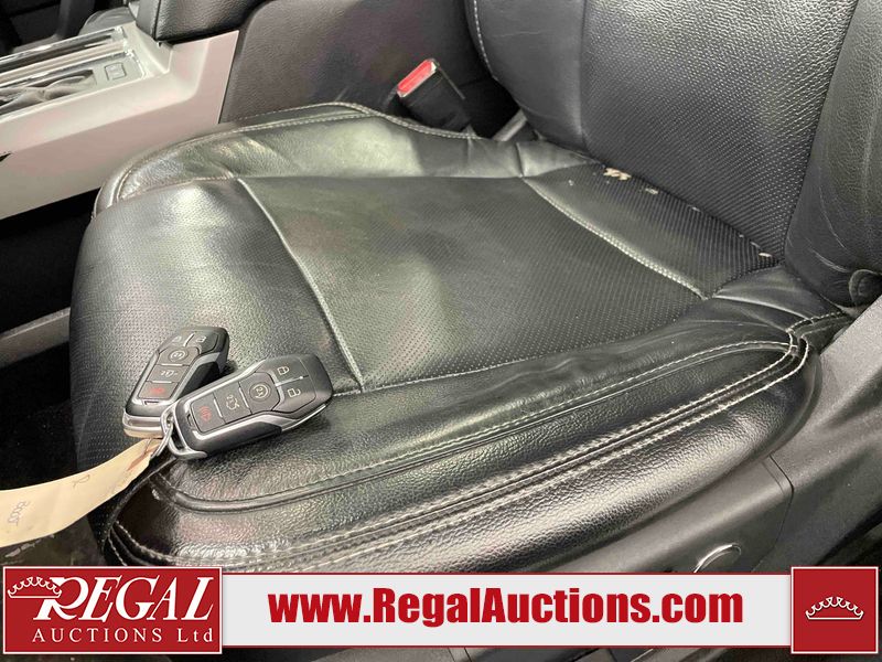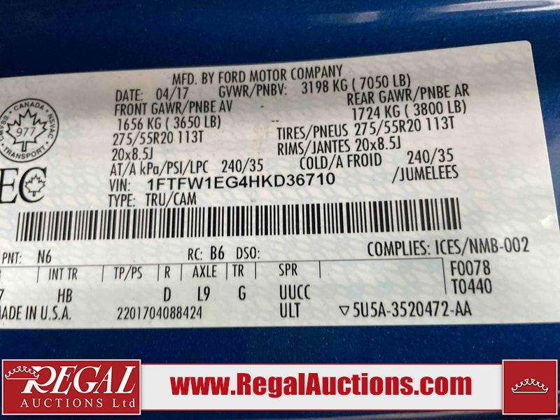 This 2017 FORD F150 LARIAT SUPER CREW 4WD SWB 3.5L is powered by a turbocharged 6 cylinder gasoline engine and an automatic transmission. It is equipped with four wheel drive. The truck has seats for 5 people. The mileage is average considering the truck's age. LARIAT is a very popular trim level. The vehicle has high value options including leather upholstery, power seats, heated seats, navigation, and a backup camera. The body looks to be in rough condition overall. There is substantial paint peeling on the tail gate. There is conspicuous hail on the hood and roof. There are chips on the front bumper, grille, left rear fender, and right rear fender. There are incidental scratches on the front bumper and rear bumper. There is rust on the front bumper and rear bumper. There is dent damage on the left rear door and right rear door. There is paint peeling on the left rear fender and right rear fender. There is slight hail on the right rear door, right front door, and right front fender. There are very minor chips in many areas around the body. There are very minor scratches in many areas around the body. There is very minor dent damage in some areas around the body. The interior looks to be in fair condition overall. The driver's seat, passenger seat, rear seats, and doors are worn. The carpet is dirty. The windshield is chipped. All of the tires have lots of tread remaining. Aftermarket alloy wheels have been mounted, the factory alloys are missing.