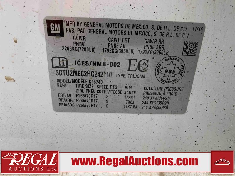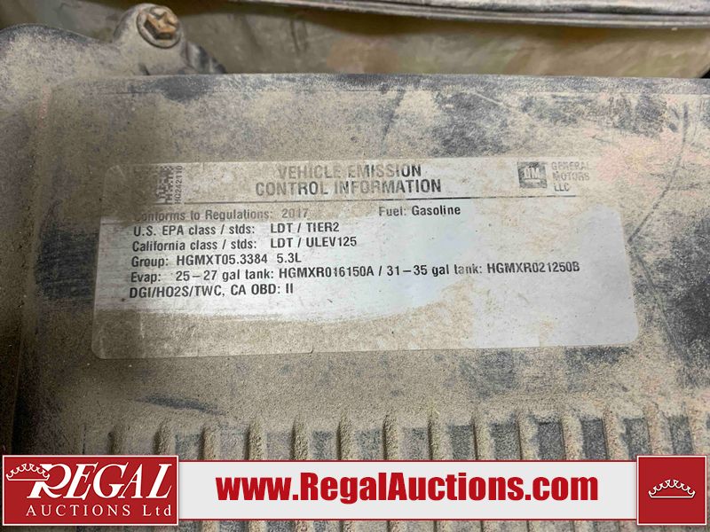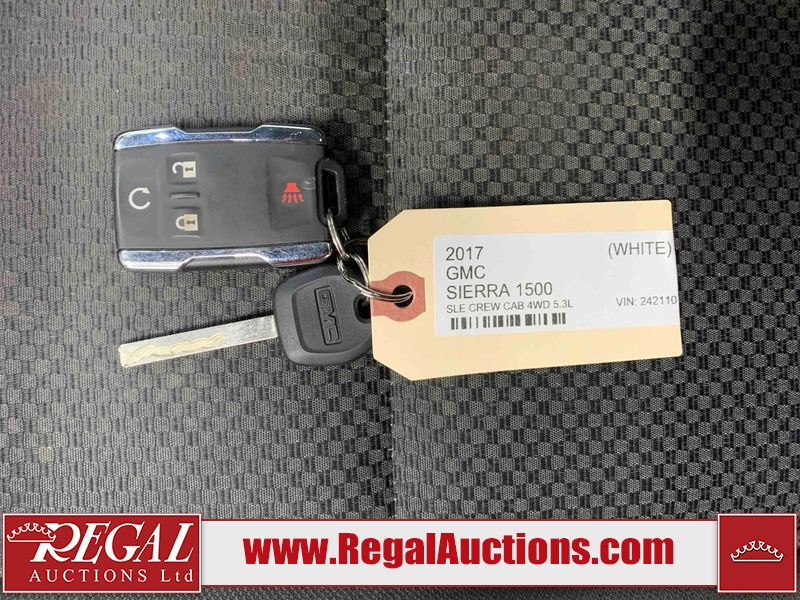 This 2017 GMC SIERRA 1500 SLE CREW CAB 4WD is powered by a 5.3L V8 gasoline engine and an automatic transmission. It is equipped with four-wheel drive. The truck has seats for 6 people. The truck has high mileage for its age. The vehicle has high-value options including power seats and a backup camera. The body looks to be in fair condition overall. There is moderate dent damage on the rear bumper. There are slight chips on the front bumper, grille, hood, and left front fender. There are scratches on the left front door, left rear door, left rear fender, right rear fender, right rear door, and right front door. There is incidental dent damage on the left rear fender. There is paint peeling on the right rear door. There is very minor dent damage in a few areas around the body. There are very minor scratches in a few areas around the body. There are very minor chips in many areas around the body. The interior looks to be in fair condition overall. The driver's seat and rear seats are stained. The driver's seat is worn. The carpet is dirty. The windshield looks to be in good condition. All of the tires have lots of tread remaining. This truck is being sold by an automotive broker. Regal Auctions Ltd. makes no guarantee or warranty, either express or implied, with respect to the data provided in this report. The information has been provided from the consignor and from sources generally believed to be reliable, however the accuracy of this information cannot be guaranteed by Regal Auctions.