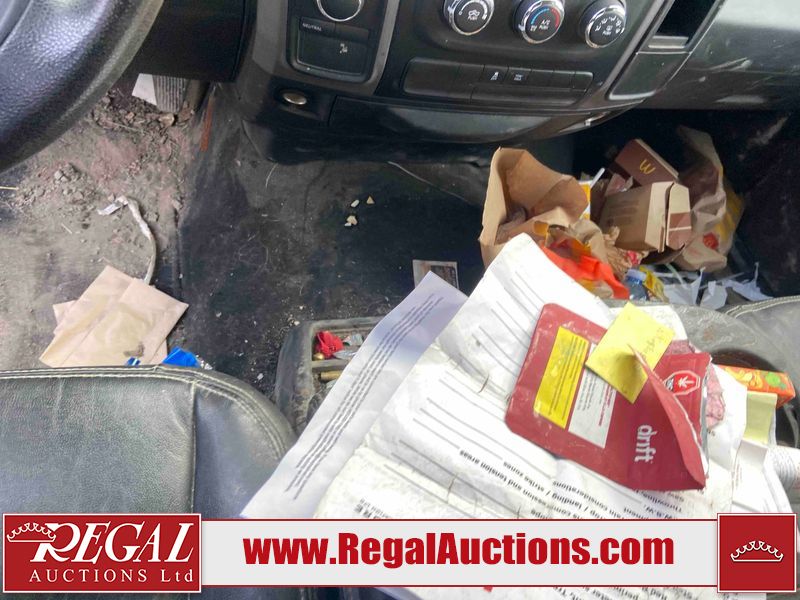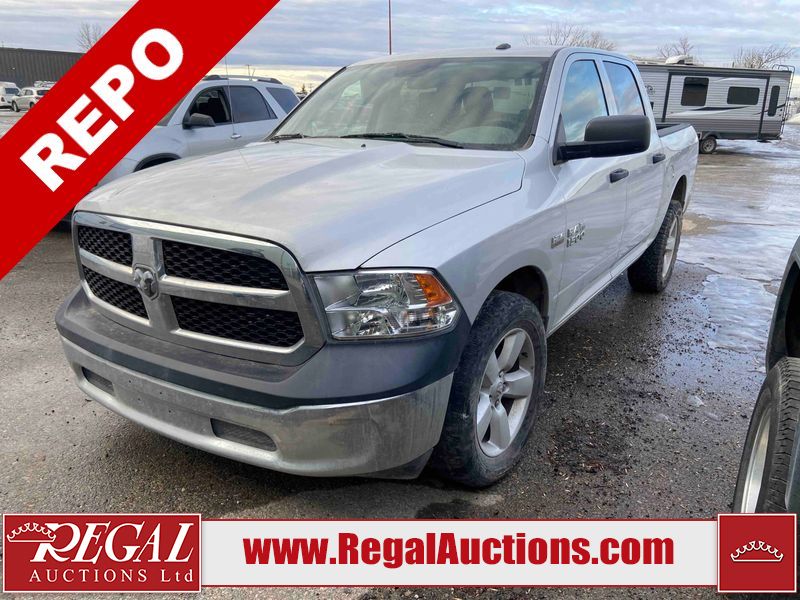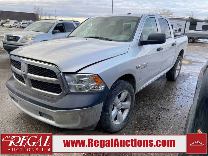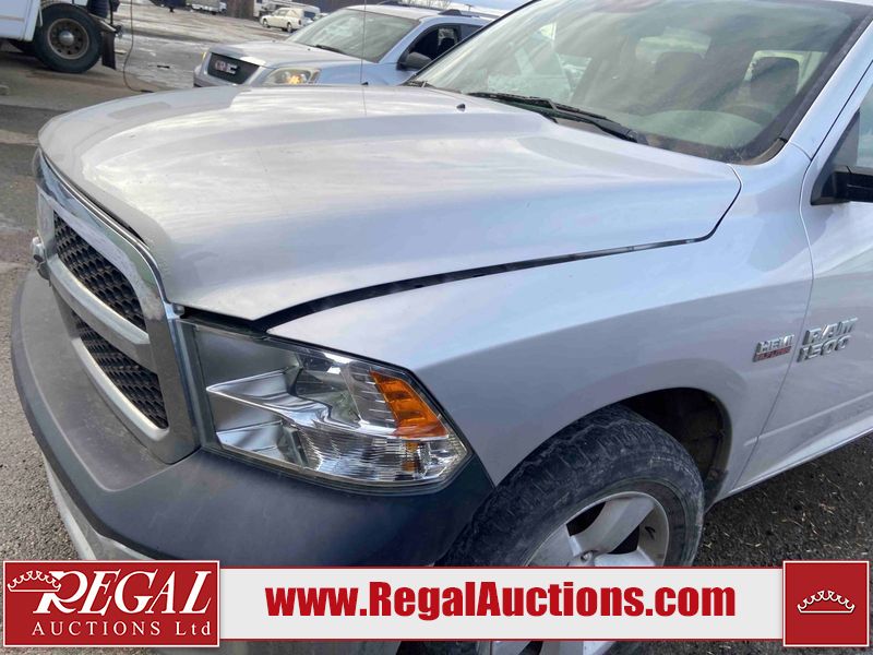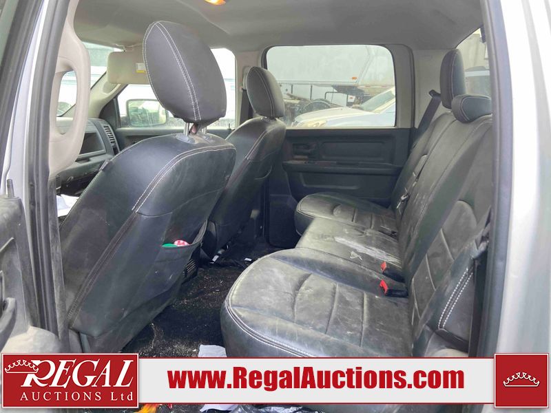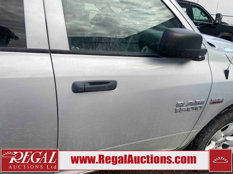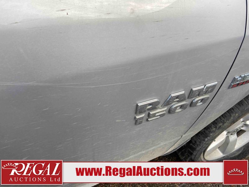 This 2017 RAM 1500 ST CREW CAB 4WD 5.7L is powered by a 8 cylinder gasoline engine and an automatic transmission. It is equipped with four wheel drive. The truck has seats for 6 people. The vehicle has high value options including leather upholstery. The body looks to be in fair condition overall. There is dent damage to the grille. There is noteworthy paint peeling on the hood. There are chips on the front bumper, hood, roof, left front fender, left rear door, left rear fender, rear bumper, and tail gate. There is dent damage on the front bumper. There are slight scratches on the left rear fender, right rear fender, and right rear door. There are very minor scratches in many areas around the body. There are very minor chips in many areas around the body. There is very minor dent damage on the left rear fender. The interior looks to be in fair condition overall. The rear seats are dirty. The dashboard, driver's seat, passenger seat, and doors are dirty. The carpet is dirty. The roof liner is dirty. The windshield is cracked. The front tires are nearly bald and should be replaced. The rear tires have lots of tread. The right front tire is damaged.