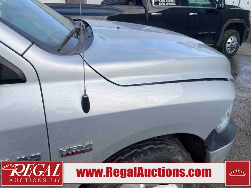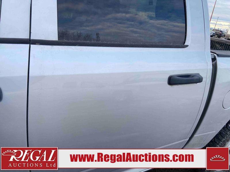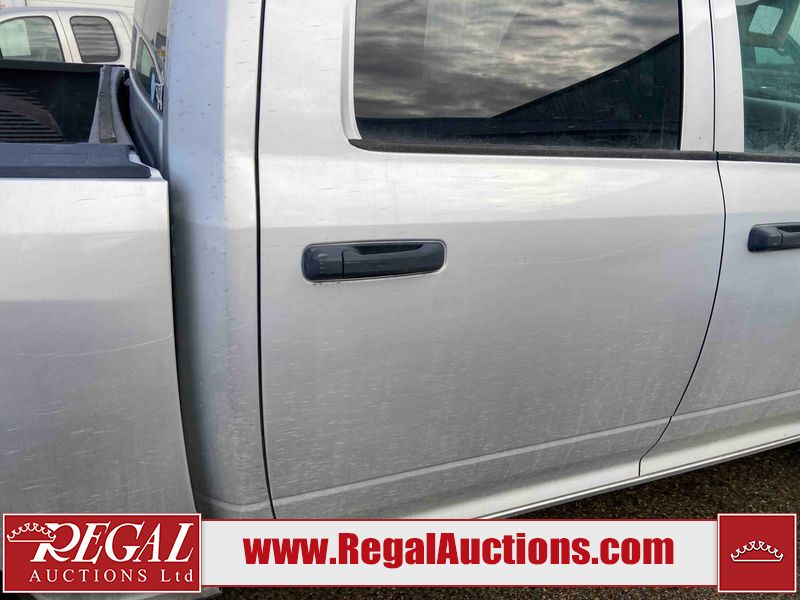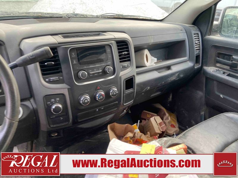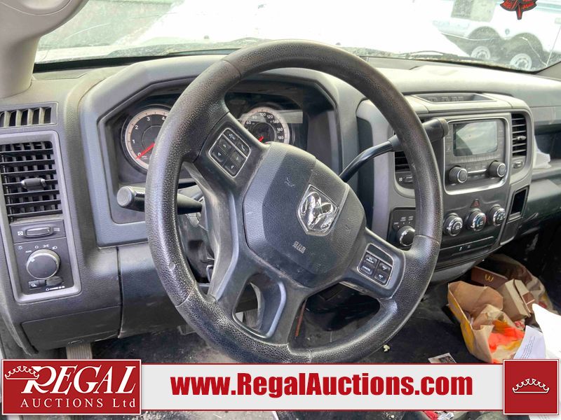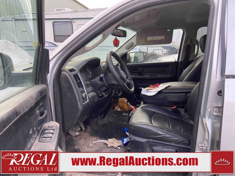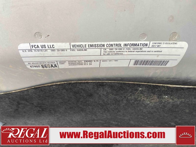 This 2017 RAM 1500 ST CREW CAB 4WD 5.7L is powered by a 8 cylinder gasoline engine and an automatic transmission. It is equipped with four wheel drive. The truck has seats for 6 people. The vehicle has high value options including leather upholstery. The body looks to be in fair condition overall. There is dent damage to the grille. There is noteworthy paint peeling on the hood. There are chips on the front bumper, hood, roof, left front fender, left rear door, left rear fender, rear bumper, and tail gate. There is dent damage on the front bumper. There are slight scratches on the left rear fender, right rear fender, and right rear door. There are very minor scratches in many areas around the body. There are very minor chips in many areas around the body. There is very minor dent damage on the left rear fender. The interior looks to be in fair condition overall. The rear seats are dirty. The dashboard, driver's seat, passenger seat, and doors are dirty. The carpet is dirty. The roof liner is dirty. The windshield is cracked. The front tires are nearly bald and should be replaced. The rear tires have lots of tread. The right front tire is damaged.