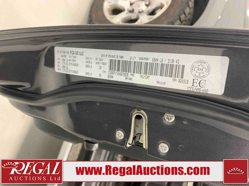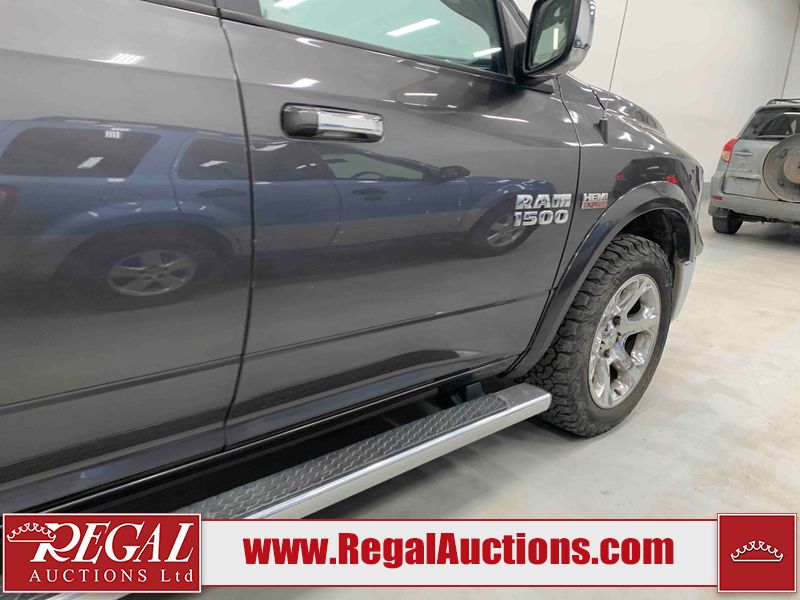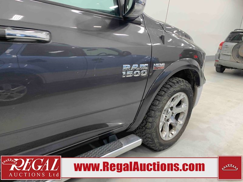 This 2017 RAM 1500 LARAMIE CREW CAB PICKUP is powered by a 5.7L V8 gasoline engine and an automatic transmission. It is equipped with four-wheel drive. The truck has seats for 6 people. LARAMIE is a very popular trim level. The vehicle has high-value options, including leather upholstery, power seats, heated seats, navigation, and a backup camera. The body looks to be in fair condition overall. There are incidental chips on the front bumper, grille, hood, and tailgate. There are minor scratches on the front bumper and tailgate. There is rust on the left front fender. There is incidental dent damage on the left rear fender, tailgate, and right rear fender. There are very minor scratches in many areas around the body. There are very minor chips in many areas around the body. The interior looks to be in good condition overall. The windshield is chipped. All of the tires have lots of tread remaining. This truck is being sold by an automotive broker. The vehicle will be sold with the following declarations: Out of Province - BC (See Footnote 1), Rebuilt Status (See Footnote 2), and True Mileage Unknown (See Footnote 3). Footnotes: 1) The vehicle's last registered jurisdiction is British Columbia. The purchaser must have the vehicle undergo and pass an Out of Province inspection before it can be registered in Alberta. 2) This vehicle has been rebuilt from salvage. 3) The accuracy and history of the odometer reading cannot be verified and the current odometer reading is not believed to be correct. Regal Auctions Ltd. makes no guarantee or warranty, either express or implied, with respect to the data provided in this report. The information has been provided from the consignor and from sources generally believed to be reliable, however the accuracy of this information cannot be guaranteed by Regal Auctions.