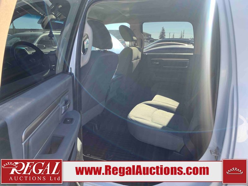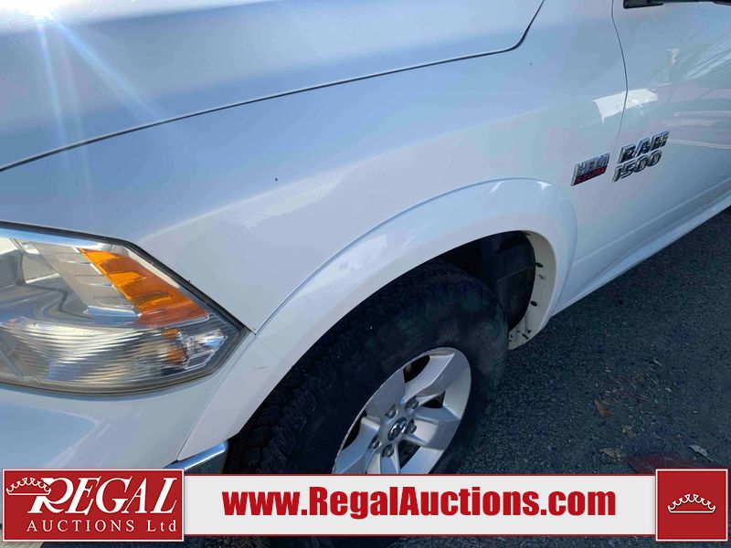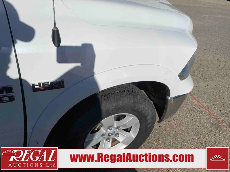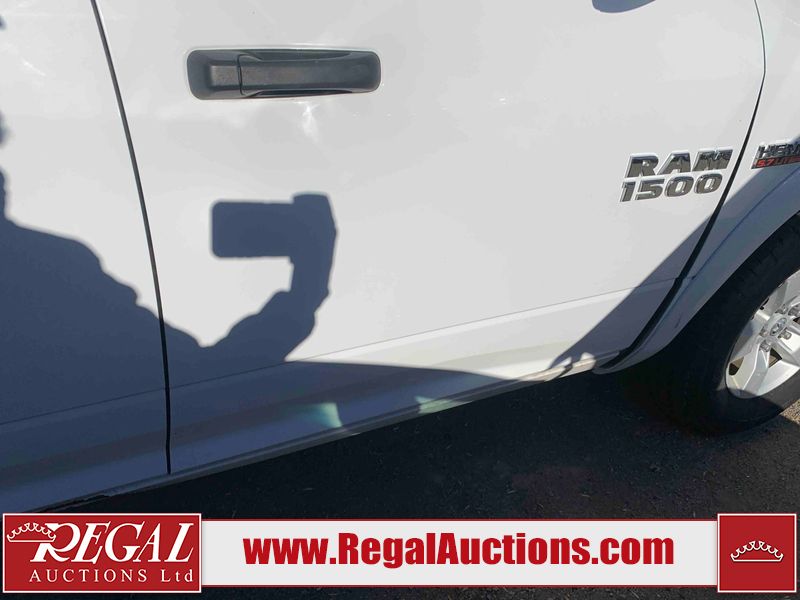 This 2017 RAM 1500 SLT CREW CAB SWB 4WD 5.7L is powered by a 8 cylinder gasoline engine and an automatic transmission. It is equipped with four wheel drive. The truck has seats for 6 people. The truck has high mileage for its age. The engine has a top end tick. The emergency brake pedal is loose. There is an aftermarket light strip installed at the rear. The rear trim emblem is missing. The body looks to be in rough condition overall. The front bumper is cracked. There is very bad dent damage on the rear bumper. There are chips on the front bumper, grille, hood, left front fender, left front door, left rear door, left rear fender, tail gate, right rear door, right front door, and right front fender. There is slight dent damage on the front bumper, left front door, and right rear fender. There are minimal scratches on the tail gate, right rear fender, right rear door, and right front fender. There is paint peeling on the tail gate. The tail gate has parts missing. There are very minor scratches in many areas around the body. There is very minor dent damage in a few areas around the body. There are very minor chips in a few areas around the body. There is misaligned damage to the rear bumper. The interior looks to be in fair condition overall. There are a fair amount of cigarette burns on the driver's seat and passenger seat. The driver's seat is torn. The rear seats are stained. The carpet is dirty. The windshield is cracked. All of the tires have lots of tread remaining.