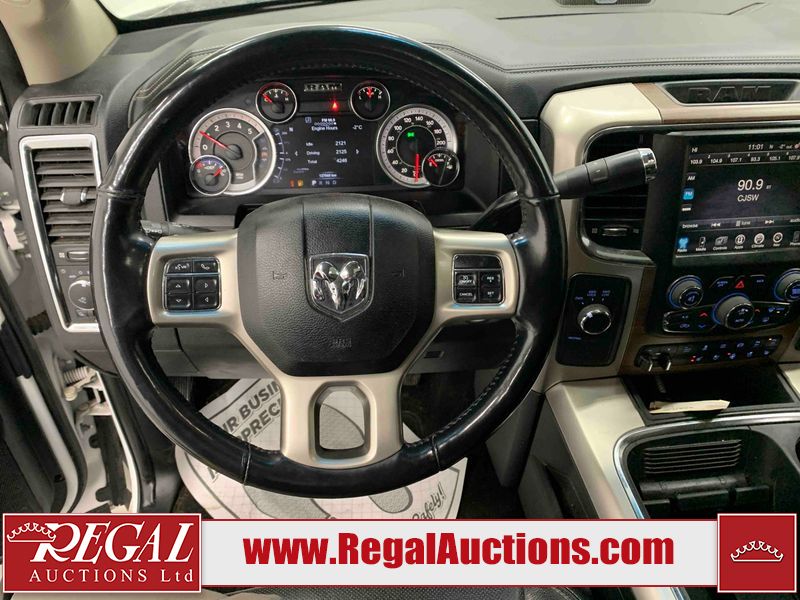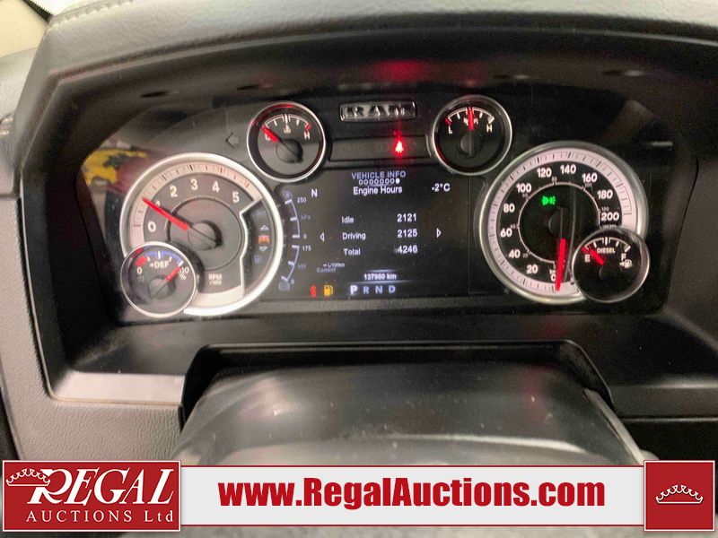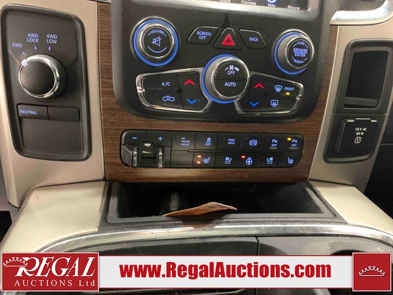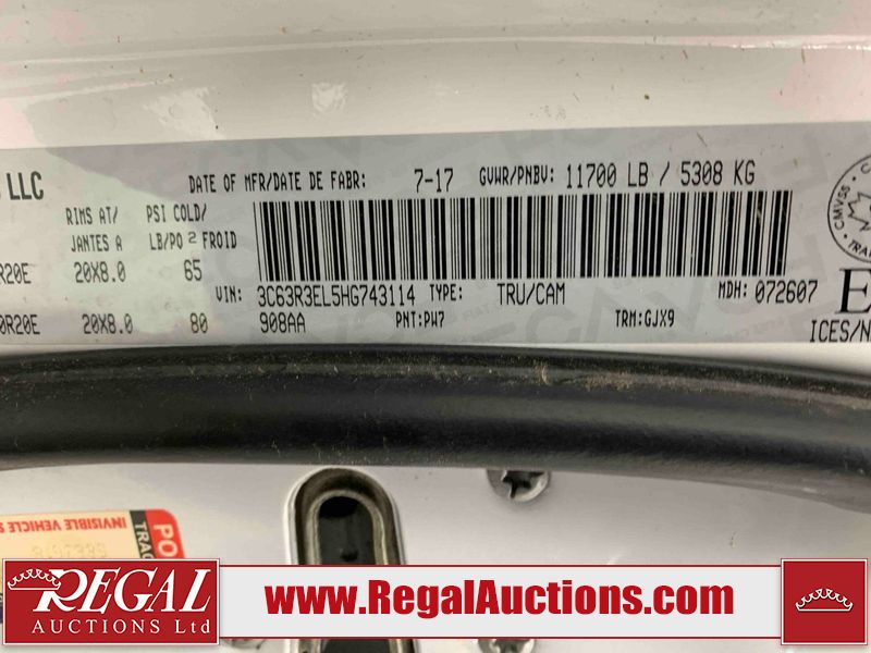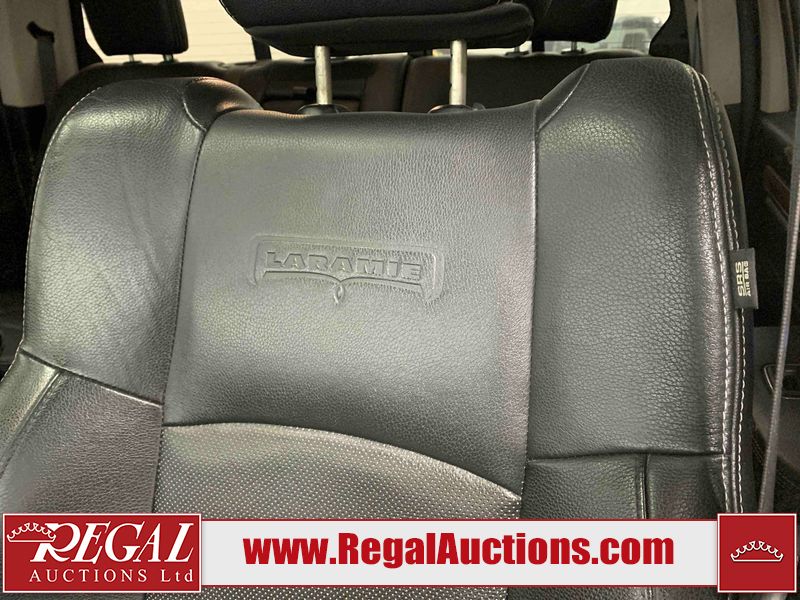 This 2017 RAM 3500 LARAMIE CREW CAB is powered by a turbocharged 6.7L 6-cylinder diesel engine and an automatic transmission. It is equipped with four- wheel drive. The truck has seats for 6 people. The truck has low mileage for its age. LARAMIE is a very popular trim level. The vehicle has high-value options including leather upholstery, power seats, heated seats, navigation, and a backup camera. The vehicle has some mechanical problems. The battery is dead. The vehicle requires a boost to start and may require a booster pack in order to stay running. The catalytic converter is missing from the exhaust. (See Footnote 1) The body looks to be in good condition overall. There are incidental chips on the front bumper, hood, left rear fender, and right rear fender. There are scratches on the rear bumper. There are very minor chips in many areas around the body. There are very minor scratches in many areas around the body. The interior looks to be in fair condition overall. There are moderate stained on the doors. The roofliner is dirty. The windshield is cracked. All of the tires have lots of tread remaining. This truck is being sold by a franchise dealership. The vehicle will be sold with the following declarations: Claims Total $3000 - $4999 (See Footnote 2) and Dealership Trade-In (See Footnote 3). Footnotes: 1) We've identified some mechanical problems with the vehicle. However, the vehicle has not undergone a mechanical inspection and our findings are not to be considered a complete evaluation of the vehicle's mechanical condition. Review our Buyer Protection Policy to see how Regal Auctions protects you from undisclosed mechanical problems. 2) The vehicle's total recorded insurance claims history is between $3,000 - $4,999. This is the amount of money that was paid out by an insurance company for repairs to cover claims against the vehicle's insurance policy. This information is provided by CarFax. 3) This vehicle is being sold on behalf of a franchise dealership. Franchise Dealerships are automotive sales companies who are directly connected to an automotive manufacturer like Ford, Tesla, Honda, BMW, or similar. Regal Auctions Ltd. makes no guarantee or warranty, either express or implied, with respect to the data provided in this report. The information has been provided from the consignor and from sources generally believed to be reliable, however the accuracy of this information cannot be guaranteed by Regal Auctions.