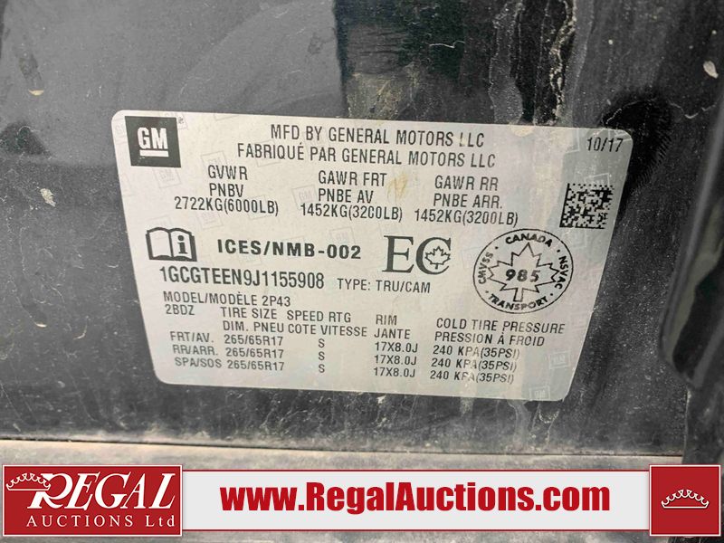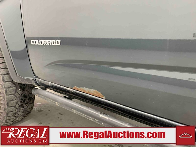 This 2018 CHEVROLET COLORADO CREW CAB 4WD is powered by a 3.6L V6 gasoline engine and an automatic transmission. It is equipped with four-wheel drive. The truck has seats for 5 people. The mileage is average considering the truck's age. The vehicle has high-value options including leather upholstery, power seats, heated seats, and a backup camera. The body looks to be in rough condition overall. There is noteworthy rust on the left front door. There are some scratches on the left rear door and left rear fender. There are chips on the hood, left rear fender, tail gate, right rear fender, and right front door. There are scratches on the roof, tail gate, right rear fender, right rear door, and right front door. There is incidental paint peeling on the left front door, right rear door, and right front door. There is minor dent damage on the tail gate. There are very minor chips in many areas around the body. There are very minor scratches in many areas around the body. The interior looks to be in fair condition overall. The driver's seat, passenger seat, rear seats, and doors are worn. The windshield looks to be in good condition. All of the tires have lots of tread remaining. This truck is being sold by an automotive broker. The vehicle will be sold with the following declarations: Claims Total $3000 - $4999 (See Footnote 1) and Out of Province - MB (See Footnote 2). Footnotes: 1) The vehicle's total recorded insurance claims history is between $3,000 - $4,999. This is the amount of money that was paid out by an insurance company for repairs to cover claims against the vehicle's insurance policy. This information is provided by CarFax. 2) The vehicle's last registered jurisdiction is Manitoba. The purchaser must have the vehicle undergo and pass an Out of Province inspection before it can be registered in Alberta. Regal Auctions Ltd. makes no guarantee or warranty, either express or implied, with respect to the data provided in this report. The information has been provided from the consignor and from sources generally believed to be reliable, however the accuracy of this information cannot be guaranteed by Regal Auctions.