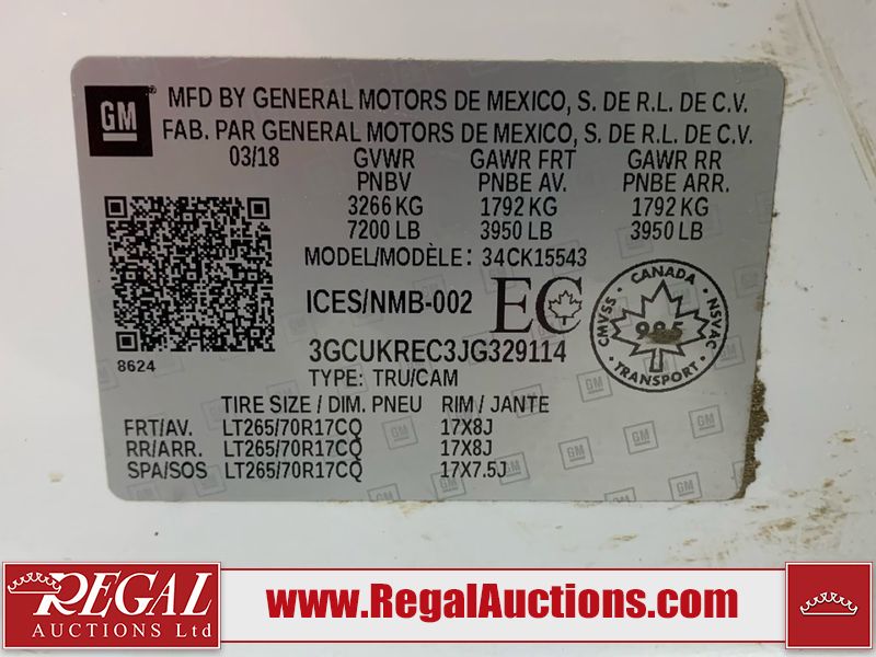 2018 CHEVROLET SILVERADO 1500 LT CREW CAB 4WD 5.3L