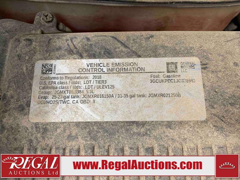 This 2018 CHEVROLET SILVERADO 1500 CUSTOM CREW CAB SWB 4WD 5.3L is powered by a 8 cylinder gasoline engine and an automatic transmission. It is equipped with four wheel drive. The truck has seats for 6 people. The truck has low mileage for its age. The vehicle has high value options including a backup camera. The body looks to be in fair condition overall. There are incidental chips on the front bumper, grille, hood, roof, left front fender, left front door, left rear fender, rear bumper, tail gate, right rear fender, right rear door, and right front door. There are incidental scratches on the front bumper, left front fender, left front door, left rear door, left rear fender, rear bumper, tail gate, right rear fender, right rear door, and right front door. There is minimal dent damage on the right rear fender. There are very minor scratches in a few areas around the body. There is very minor dent damage in a few areas around the body. There are very minor chips in a few areas around the body. The interior looks to be in fair condition overall. The passenger seat is stained. The dashboard, passenger seat, rear seats, and doors are dirty. The carpet is dirty. The windshield is cracked. All of the tires have lots of tread remaining.
