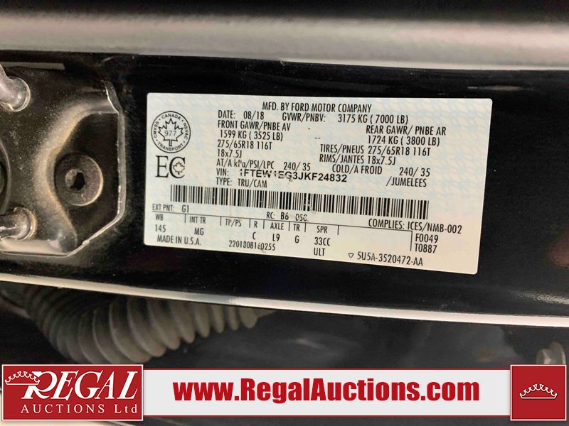 This 2018 FORD F-150 XLT SUPERCREW 4WD is powered by a turbocharged 3.5L V6 gasoline engine and an automatic transmission. It is equipped with four-wheel drive. The truck has seats for 6 people. The truck has high mileage for its age. The vehicle has high-value options including a backup camera. The body looks to be in rough condition overall. There is substantial dent damage on the left rear fender. There are some scratches on the left rear fender. There are incidental chips on the front bumper, hood, roof, left front fender, left front door, left rear door, left rear fender, rear bumper, tailgate, right rear fender, right rear door, right front door, and right front fender. There are incidental scratches on the front bumper, hood, roof, left front fender, left front door, left rear door, rear bumper, tailgate, right rear fender, right rear door, right front door, and right front fender. There is slight dent damage on the left rear door. There are very minor chips on the grille. The interior looks to be in fair condition overall. There are a fair amount of stains on the driver's seat and passenger seat. The windshield looks to be in good condition. All of the tires have lots of tread remaining. This truck is being sold by an automotive broker. Regal Auctions Ltd. makes no guarantee or warranty, either express or implied, with respect to the data provided in this report. The information has been provided from the consignor and from sources generally believed to be reliable, however the accuracy of this information cannot be guaranteed by Regal Auctions.