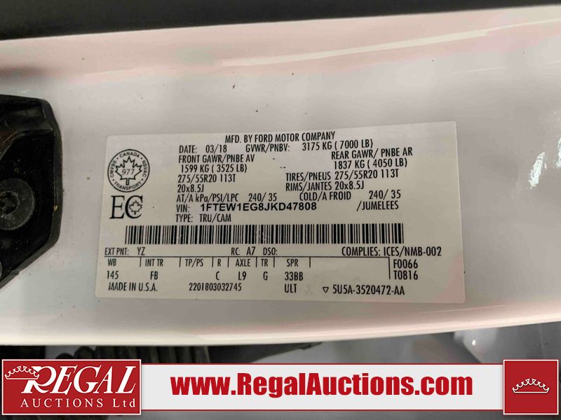 This 2018 FORD F-150 SUPERCREW is powered by a turbocharged 3.5L V6 gasoline engine and an automatic transmission. It is equipped with four-wheel drive. The truck has seats for 5 people. The mileage is average considering the truck's age. The vehicle has high-value options including power seats, heated seats, navigation, and a backup camera. The Check Engine light is on. The vehicle has some mechanical problems. There is motor noise. (See Footnote 1) The body looks to be in fair condition overall. The roof has been repainted poorly. There are chips on the roof and left front fender. The left front fender has been repainted poorly. There are minor scratches on the tail gate and right rear fender. There is dent damage on the right rear fender. There are very minor chips in many areas around the body. There are very minor scratches in many areas around the body. There is very minor dent damage in a few areas around the body. The interior looks to be in good condition overall. The windshield looks to be in good condition. All of the tires have lots of tread remaining. This truck is being sold by an automotive broker. The vehicle will be sold with the following declarations: Mechanical Problems (See Footnote 1) and Out of Province - BC (See Footnote 2). Footnotes: 1) We've identified some mechanical problems with the vehicle. However, the vehicle has not undergone a mechanical inspection and our findings are not to be considered a complete evaluation of the vehicle's mechanical condition. Review our Buyer Protection Policy to see how Regal Auctions protects you from undisclosed mechanical problems. 2) The vehicle's last registered jurisdiction is British Columbia. The purchaser must have the vehicle undergo and pass an Out of Province inspection before it can be registered in Alberta. Regal Auctions Ltd. makes no guarantee or warranty, either express or implied, with respect to the data provided in this report. The information has been provided from the consignor and from sources generally believed to be reliable, however the accuracy of this information cannot be guaranteed by Regal Auctions.