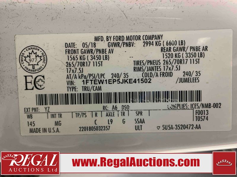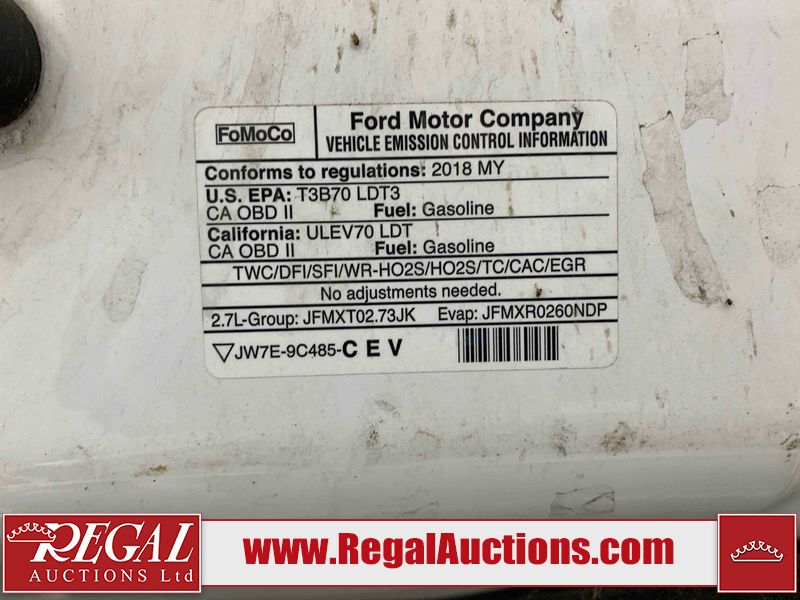 This 2018 FORD F-150 XLT SUPERCREW 4WD is powered by a turbocharged 2.7L V6 gasoline engine and an automatic transmission. It is equipped with four-wheel drive. The truck has seats for 6 people. The truck has high mileage for its age. The vehicle has high-value options including a backup camera. The Airbag and Tire Pressure lights are on. The body looks to be in fair condition overall. There are chips on the front bumper, hood, and right front fender. There are slight scratches on the front bumper, left front door, left rear fender, rear bumper, tailgate, right rear fender, and right front door. There is incidental dent damage on the hood and tailgate. There are very minor chips in many areas around the body. There is very minor dent damage on the left front door. There are very minor scratches in a few areas around the body. The taillights are broken. Some of the panels around the body have been repainted. The interior looks to be in fair condition overall. There is obvious stained on the passenger seat and rear seats. There is incidental staining on the driver's seat. The windshield is cracked. All of the tires have lots of tread remaining. The right front wheel is a spare. This truck is being sold by the fleet department of a corporation or government body. The vehicle will be sold with the following declarations: Claims Total $15,000 - $19,999 (See Footnote 1) and Fleet Vehicle (See Footnote 2). Footnotes: 1) The vehicle's total recorded insurance claims history is between $15,000 - $19,999. This is the amount of money that was paid out by an insurance company for repairs to cover claims against the vehicle's insurance policy. This information is provided by CarFax. 2) This vehicle is a commercially owned work vehicle. Regal Auctions Ltd. makes no guarantee or warranty, either express or implied, with respect to the data provided in this report. The information has been provided from the consignor and from sources generally believed to be reliable, however the accuracy of this information cannot be guaranteed by Regal Auctions.