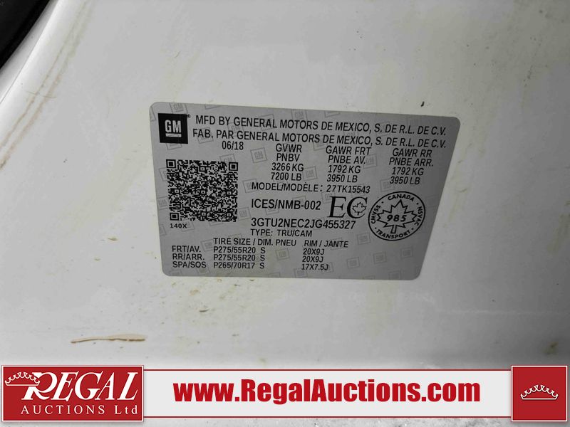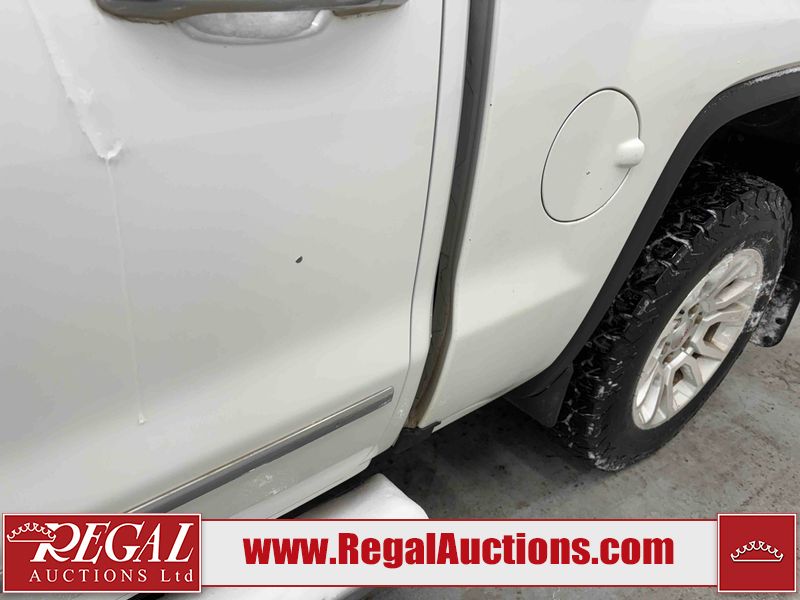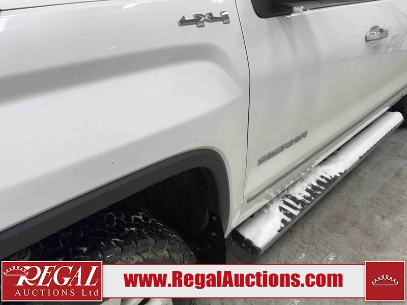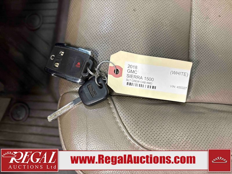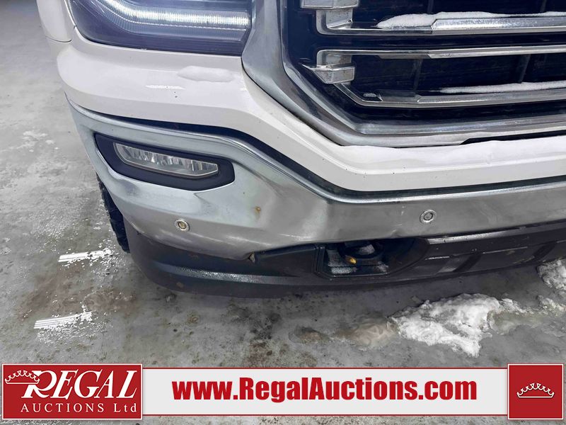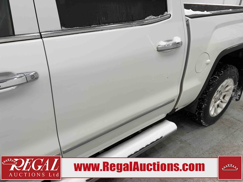 This 2018 GMC SIERRA 1500 SLT CREW CAB 4WD is powered by a 5.3L V8 gasoline engine and an automatic transmission. It is equipped with four-wheel drive. The truck has seats for 5 people. The truck has high mileage for its age. The vehicle has high-value options including leather upholstery, power seats, heated seats, navigation, and a backup camera. The Airbag light is on. The body looks to be in fair condition overall. There is minimal hail on the hood and roof. There is rust on the roof, left front door, and left rear door. There are chips on the left front fender. There is minor dent damage on the right front door. There are very minor chips in many areas around the body. There are very minor scratches in many areas around the body. There is very minor dent damage on the tail gate. The interior looks to be in good condition overall. The windshield is cracked. All of the tires have lots of tread remaining. This truck is being sold by an automotive broker. The vehicle will be sold with the following declarations: Hail Damage (See Footnote 1). Footnotes: 1) This vehicle shows signs of damage from a hail storm. Hail damage is not always clearly visible in photographs. Regal Auctions Ltd. makes no guarantee or warranty, either express or implied, with respect to the data provided in this report. The information has been provided from the consignor and from sources generally believed to be reliable, however the accuracy of this information cannot be guaranteed by Regal Auctions.