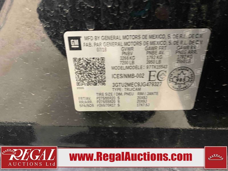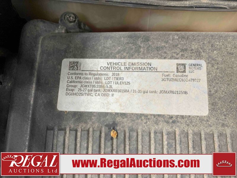 This 2018 GMC SIERRA 1500 SLE CREW CAB SWB 4WD 5.3L is powered by a 8 cylinder gasoline engine and an automatic transmission. It is equipped with four wheel drive. The truck has seats for 6 people. The truck has low mileage for its age. The vehicle has high value options including power seats, navigation, and a backup camera. Aftermarket exhaust tip, and fender flares have been installed. The body looks to be in fair condition overall. There are chips on the front bumper, grille, left front door, left rear door, tail gate, right rear door, and right front door. There are scratches on the front bumper. There is dent damage on the rear bumper, right rear fender, and right rear door. There are very minor chips in many areas around the body. There are very minor scratches in many areas around the body. The interior looks to be in fair condition overall. The driver's seat and rear seats are stained. The carpet is dirty. The windshield is chipped. The tires are all worn.