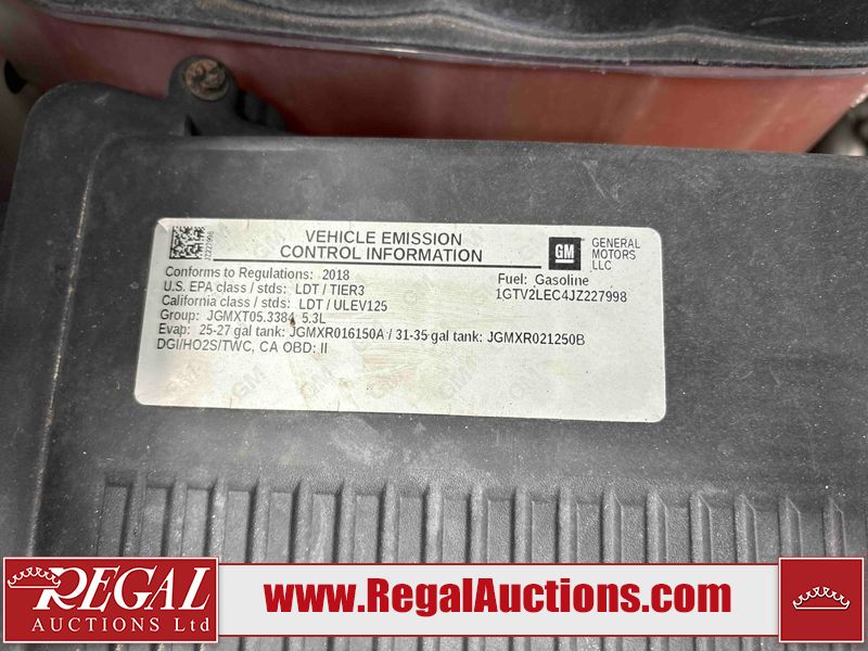 This 2018 GMC SIERRA 1500 EXTENDED CAB 4WD is powered by a 5.3L V8 gasoline engine and an automatic transmission. It is equipped with four-wheel drive. The truck has seats for 6 people. The truck has high mileage for its age. The vehicle has high-value options including a backup camera. The body looks to be in fair condition overall. There are incidental chips on the left rear door. There is incidental rust on the left rear door. The left rear door has been repainted poorly. There are minimal scratches on the tail gate. There are very minor chips in many areas around the body. There are very minor scratches in many areas around the body. There is very minor dent damage in a few areas around the body. The interior looks to be in good condition overall. The windshield is chipped. All of the tires have lots of tread remaining. This truck is being sold by an automotive broker. Regal Auctions Ltd. makes no guarantee or warranty, either express or implied, with respect to the data provided in this report. The information has been provided from the consignor and from sources generally believed to be reliable, however the accuracy of this information cannot be guaranteed by Regal Auctions.