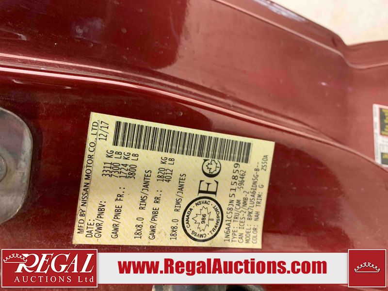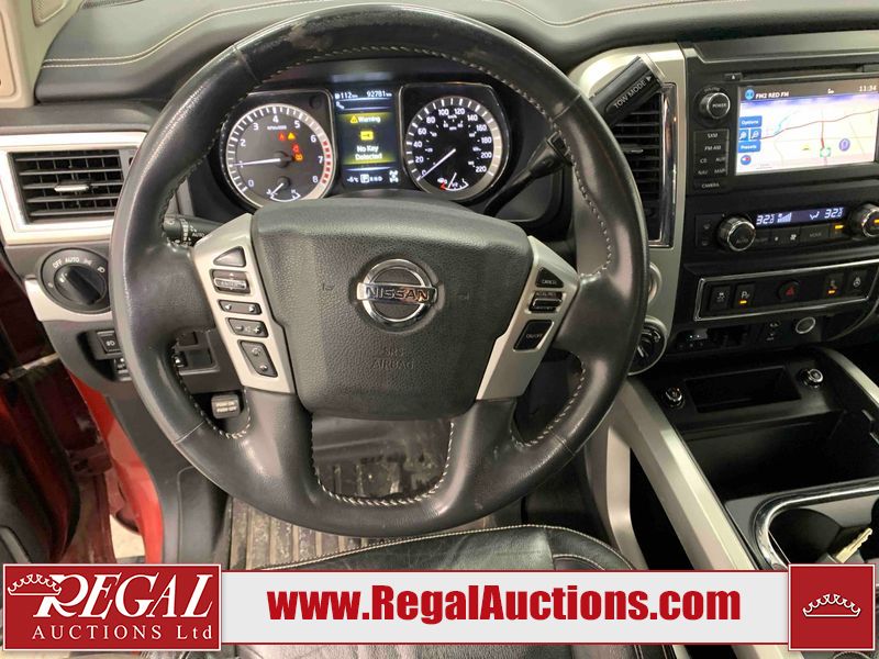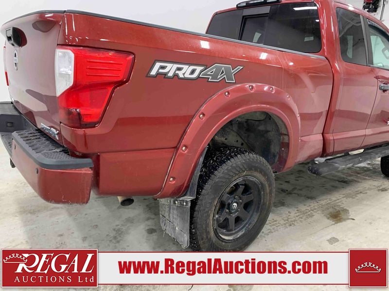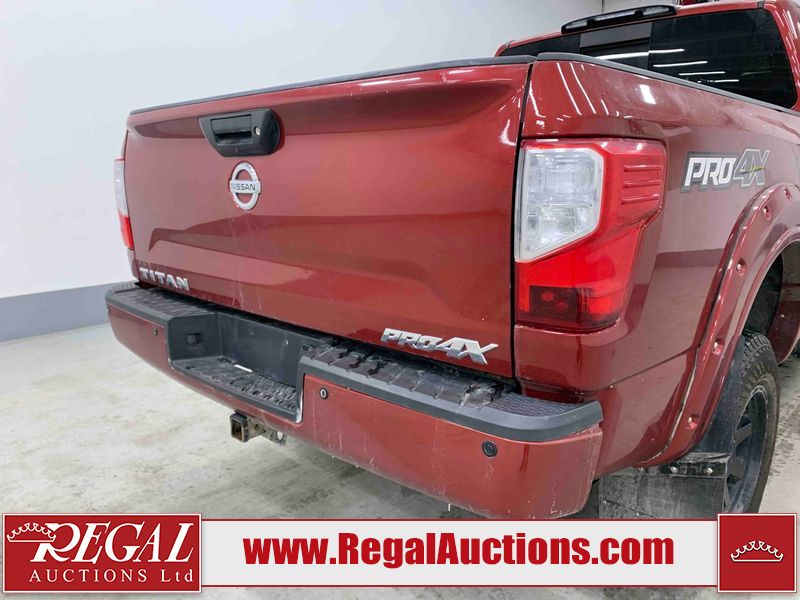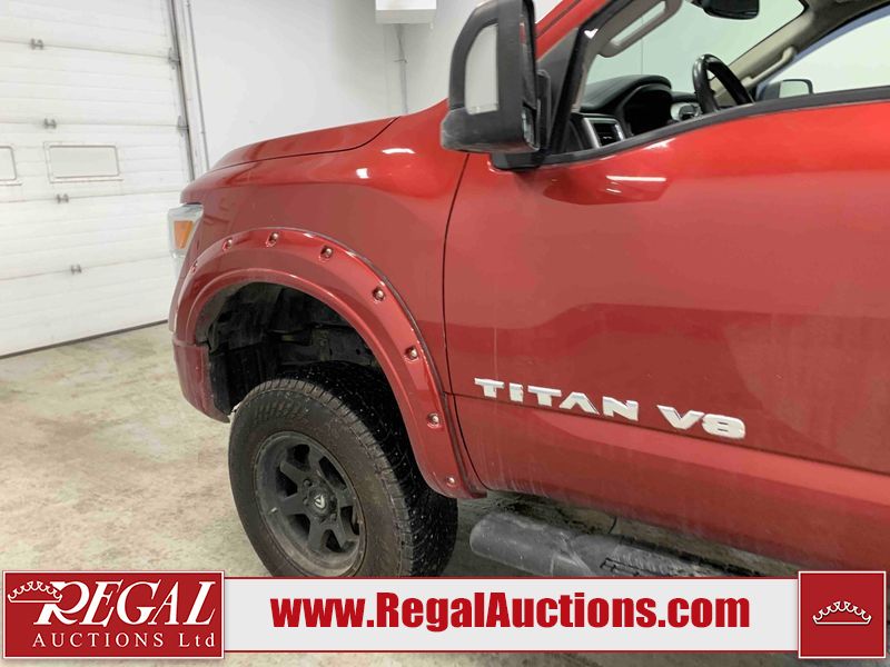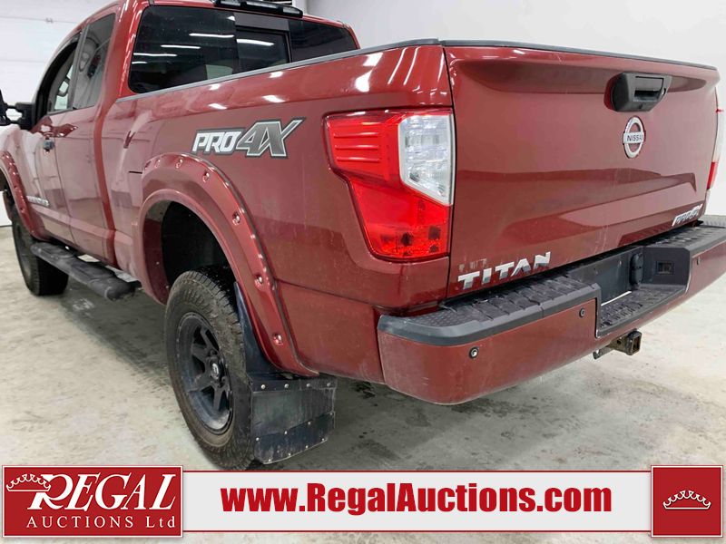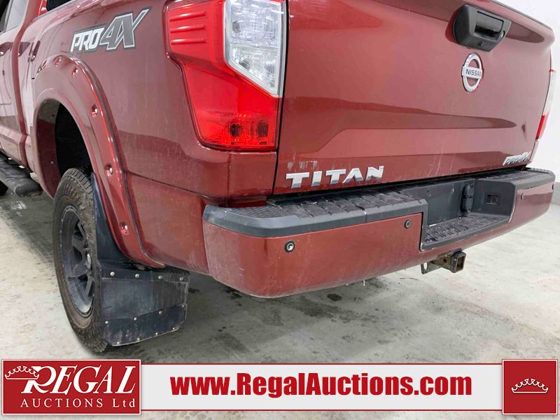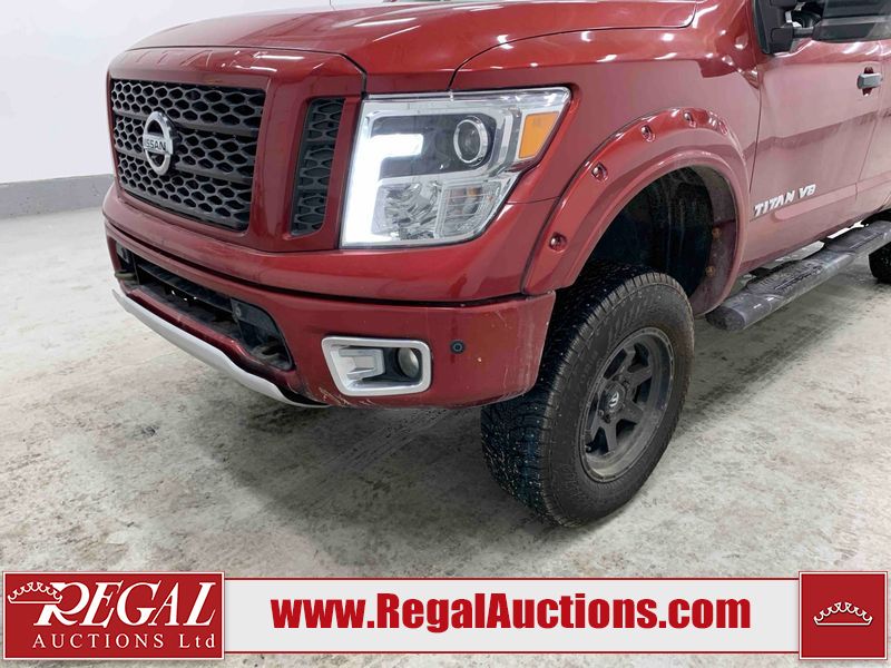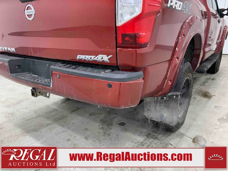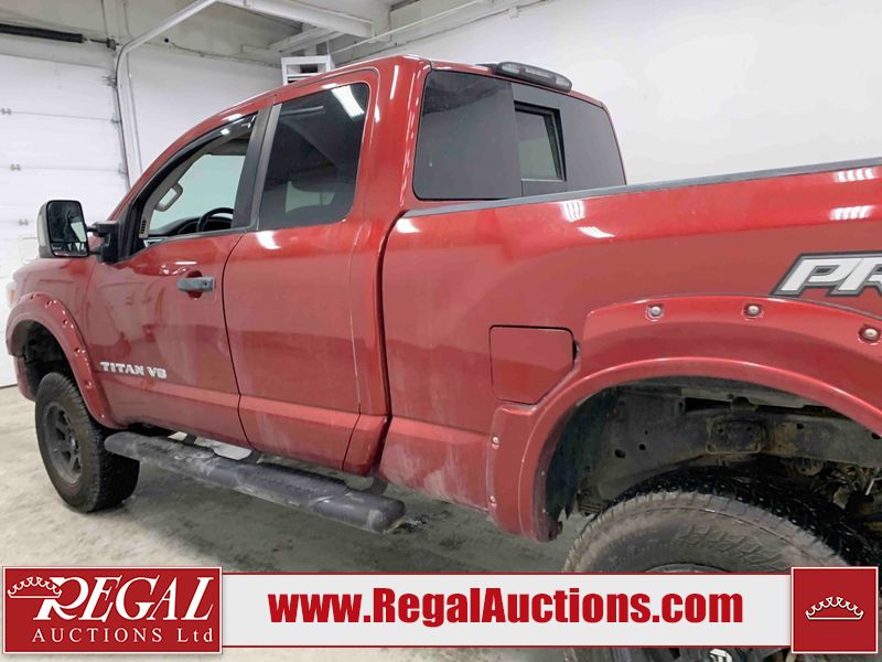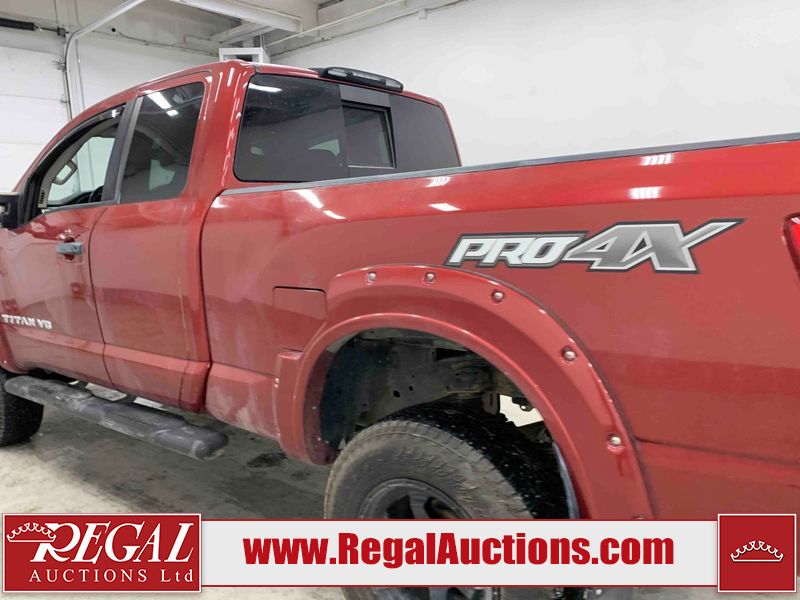 This 2018 NISSAN TITAN PRO-4X KING CAB 4WD 5.6L is powered by an 8 cylinder gasoline engine and an automatic transmission. It is equipped with four wheel drive. The truck has seats for 5 people. The truck has low mileage for its age. The vehicle has high value options including leather upholstery, power seats, heated seats, navigation, and a backup camera. The Tire Pressure light is on. The vehicle has some mechanical problems. **ENGINE NOISE** (See Footnote 1) The body looks to be in fair condition overall. There are minor chips on the front bumper, left front door, left rear door, left rear fender, rear bumper, tail gate, right rear fender, right rear door, right front door, and right front fender. There are minor scratches on the front bumper, hood, roof, left front fender, left front door, left rear door, left rear fender, rear bumper, tail gate, right rear fender, right rear door, right front door, and right front fender. There is minor dent damage on the left rear fender. There are very minor chips in some areas around the body. The interior looks to be in good condition overall. The windshield is chipped. All of the tires have lots of tread remaining. This truck is being sold by an automotive broker. The vehicle will be sold with the following declarations: Mechanical Problems (See Footnote 1) and Out of Province - BC (See Footnote 2). Footnotes: 1) We've identified some mechanical problems with the vehicle. However, the vehicle has not undergone a mechanical inspection and our findings are not to be considered a complete evaluation of the vehicle's mechanical condition. Review our Buyer Protection Policy to see how Regal Auctions protects you from undisclosed mechanical problems. 2) The vehicle's last registered jurisdiction is British Columbia. The purchaser must have the vehicle undergo and pass an Out of Province inspection before it can be registered in Alberta. Regal Auctions Ltd. makes no guarantee or warranty, either express or implied, with respect to the data provided in this report. The information has been provided from the consignor and from sources generally believed to be reliable, however the accuracy of this information cannot be guaranteed by Regal Auctions.