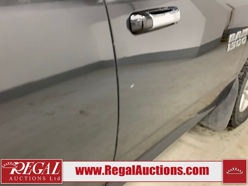 This 2018 RAM 1500 SLT CREW CAB SWB 4WD 5.7L is powered by a 8 cylinder gasoline engine and an automatic transmission. It is equipped with four wheel drive. The truck has seats for 6 people. The mileage is average considering the truck's age. The vehicle has some mechanical problems. The engine has a top end tick. The body looks to be in rough condition overall. There is extensive dent damage on the roof and tail gate. There is conspicuous rust on the left rear fender. There are conspicuous scratches on the right rear door. There are slight chips on the front bumper and grille. There are scratches on the front bumper, hood, roof, left front fender, left front door, left rear fender, tail gate, right rear fender, and right front door. There is incidental rust on the roof, tail gate, and right rear fender. There is incidental dent damage on the left front door, left rear fender, rear bumper, right rear fender, and right rear door. There are very minor chips in many areas around the body. There are very minor scratches in a few areas around the body. There is very minor dent damage in a few areas around the body. The trim on the left rear, right rear, and tailgate is lifting. The tailgate trim is broken. The interior looks to be in fair condition overall. There are noteworthy cigarette burns on the driver's seat. The carpet is dirty. The roofliner is dirty. The windshield is damaged. All of the tires have lots of tread remaining.