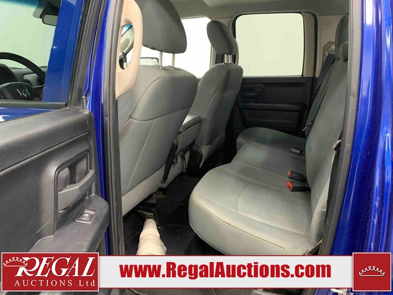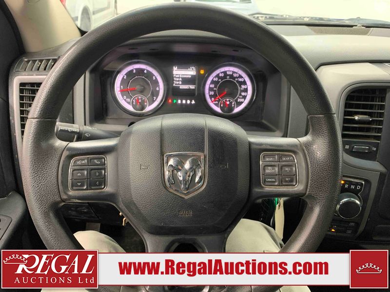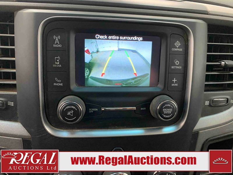 This 2018 RAM 1500 EXPRESS QUAD CAB SWB 4WD 3.6L is powered by a 6 cylinder gasoline engine and an automatic transmission. It is equipped with four wheel drive. The truck has seats for 5 people. The truck has low mileage for its age. The vehicle has high value options including a backup camera. The Tire Pressure light is on.The body looks to be in fair condition overall. There are chips on the front bumper and rear bumper. There are scratches on the front bumper, left rear fender, rear bumper, tail gate, right rear door, and right front door. There is incidental dent damage on the hood, rear bumper, and right rear fender. There are very minor chips in many areas around the body. There are very minor scratches in many areas around the body. The interior looks to be in fair condition overall. The driver's seat is torn. The passenger seat and rear seats are stained. The carpet is dirty. The windshield is damaged. The passenger side mirror is broken. The tires are all worn.