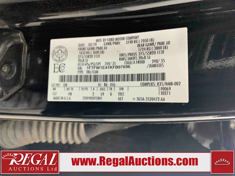 This 2019 FORD F-150 LARIAT CREW CAB 4WD is powered by a 3.5L V6 gasoline engine and an automatic transmission. It is equipped with four-wheel drive. The truck has seats for 5 people. The truck has high mileage for its age. LARIAT is a very popular trim level. The vehicle has high-value options including leather upholstery, power seats, heated seats, navigation, and a backup camera. The Oil Pressure and Check Engine lights are on. The vehicle has some mechanical problems. The engine ia making an abnormal noise. (See Footnote 1) The body looks to be in fair condition overall. There are incidental scratches on the hood, left front fender, left front door, left rear door, left rear fender, rear bumper, and right front fender. There is incidental hail on the hood and roof. There are very minor chips in many areas around the body. There are very minor scratches in many areas around the body. The interior looks to be in good condition overall. The windshield is cracked. All of the tires have lots of tread remaining. This truck is being sold by an automotive broker. The vehicle will be sold with the following declarations: Mechanical Problems (See Footnote 1) and Claims Total $5000 - $9999 (See Footnote 2). Footnotes: 1) We've identified some mechanical problems with the vehicle. However, the vehicle has not undergone a mechanical inspection and our findings are not to be considered a complete evaluation of the vehicle's mechanical condition. Review our Buyer Protection Policy to see how Regal Auctions protects you from undisclosed mechanical problems. 2) The vehicle's total recorded insurance claims history is between $5,000 - $9,999. This is the amount of money that was paid out by an insurance company for repairs to cover claims against the vehicle's insurance policy. This information is provided by CarFax. Regal Auctions Ltd. makes no guarantee or warranty, either express or implied, with respect to the data provided in this report. The information has been provided from the consignor and from sources generally believed to be reliable, however the accuracy of this information cannot be guaranteed by Regal Auctions.