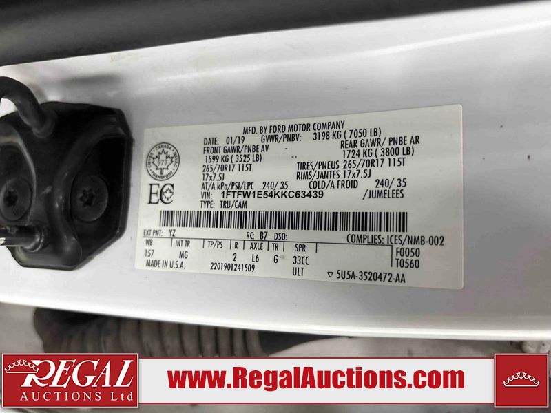 This 2019 FORD F-150 XLT SUPERCREW is powered by a 5.0L V8 gasoline engine and an automatic transmission. It is equipped with four-wheel drive. The truck has seats for 6 people. The truck has high mileage for its age. The vehicle has high-value options including a backup camera. The vehicle has some mechanical problems. The engine is making abnormal noise. (See Footnote 1) The body looks to be in fair condition overall. The tail gate has been repainted poorly. There are chips on the hood, roof, and left front fender. There is paint peeling on the roof, left rear door, and right rear fender. There are scratches on the left rear fender, tail gate, and right rear fender. The left rear fender is broken. There is minor dent damage on the rear bumper and right rear fender. There are very minor chips in many areas around the body. There are very minor scratches in many areas around the body. There is very minor dent damage on the left rear fender. The interior looks to be in good condition overall. The windshield is chipped. All of the tires have lots of tread remaining. This truck is being sold by a franchise dealership. The vehicle will be sold with the following declarations: Claims Total $10,000 - $14,999 (See Footnote 2), Dealership Trade-In (See Footnote 3), Mechanical Problems (See Footnote 1), and Out of Province - BC (See Footnote 4). Footnotes: 1) We've identified some mechanical problems with the vehicle. However, the vehicle has not undergone a mechanical inspection and our findings are not to be considered a complete evaluation of the vehicle's mechanical condition. Review our Buyer Protection Policy to see how Regal Auctions protects you from undisclosed mechanical problems. 2) The vehicle's total recorded insurance claims history is between $10,000 - $14,999. This is the amount of money that was paid out by an insurance company for repairs to cover claims against the vehicle's insurance policy. This information is provided by CarFax. 3) This vehicle is being sold on behalf of a franchise dealership. Franchise Dealerships are automotive sales companies who are directly connected to an automotive manufacturer like Ford, Tesla, Honda, BMW, or similar. 4) The vehicle's last registered jurisdiction is British Columbia. The purchaser must have the vehicle undergo and pass an Out of Province inspection before it can be registered in Alberta. Regal Auctions Ltd. makes no guarantee or warranty, either express or implied, with respect to the data provided in this report. The information has been provided from the consignor and from sources generally believed to be reliable, however the accuracy of this information cannot be guaranteed by Regal Auctions.