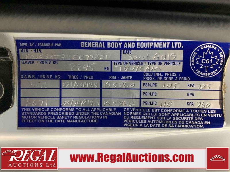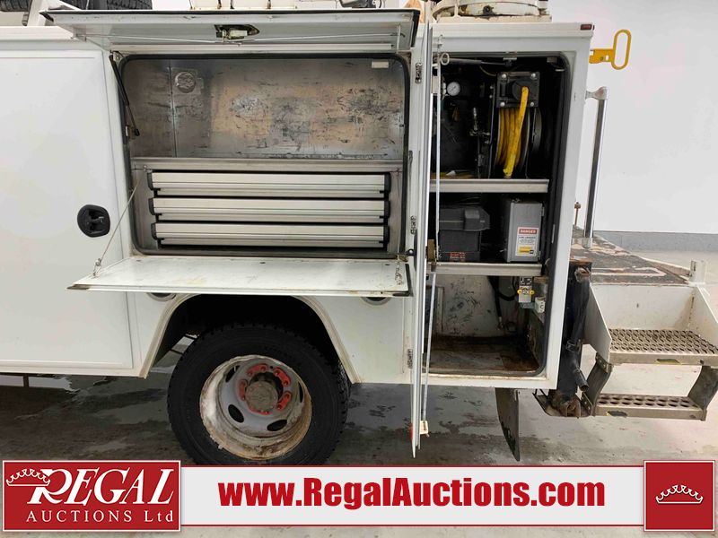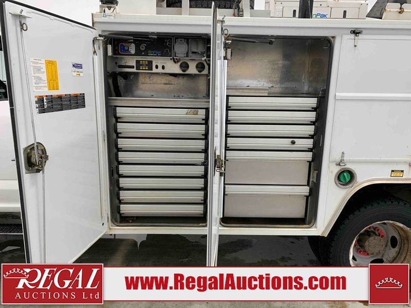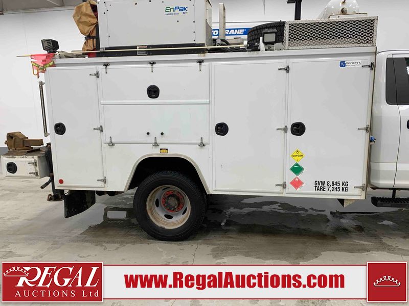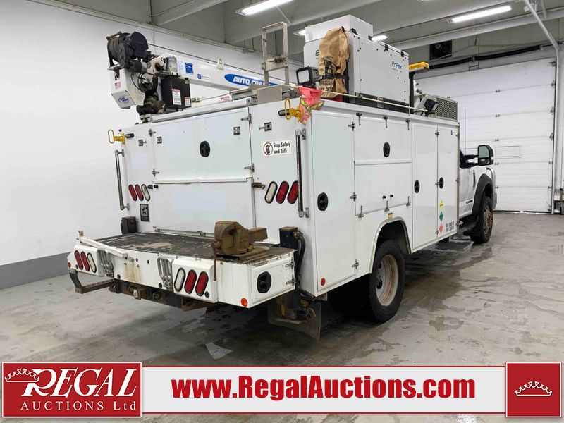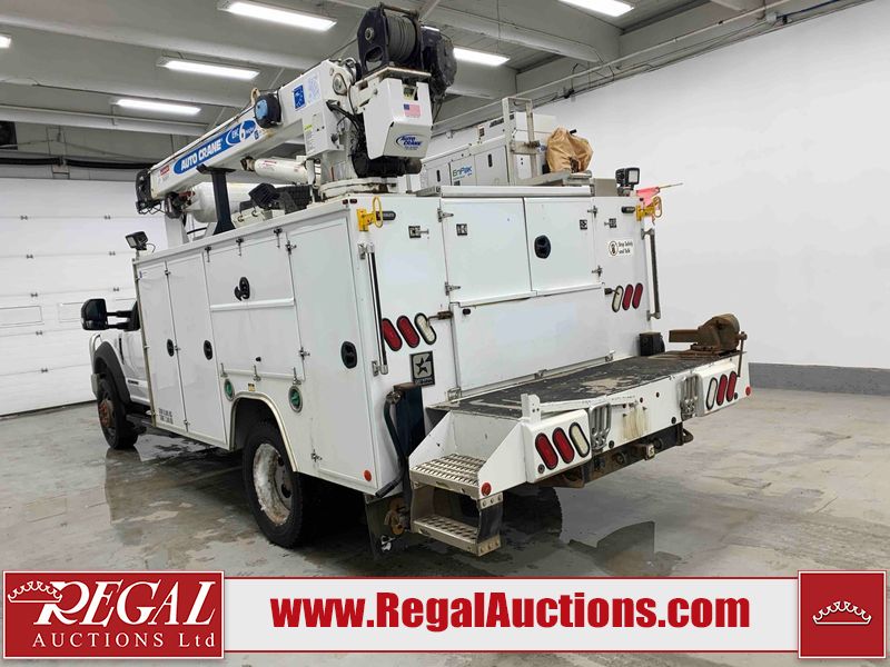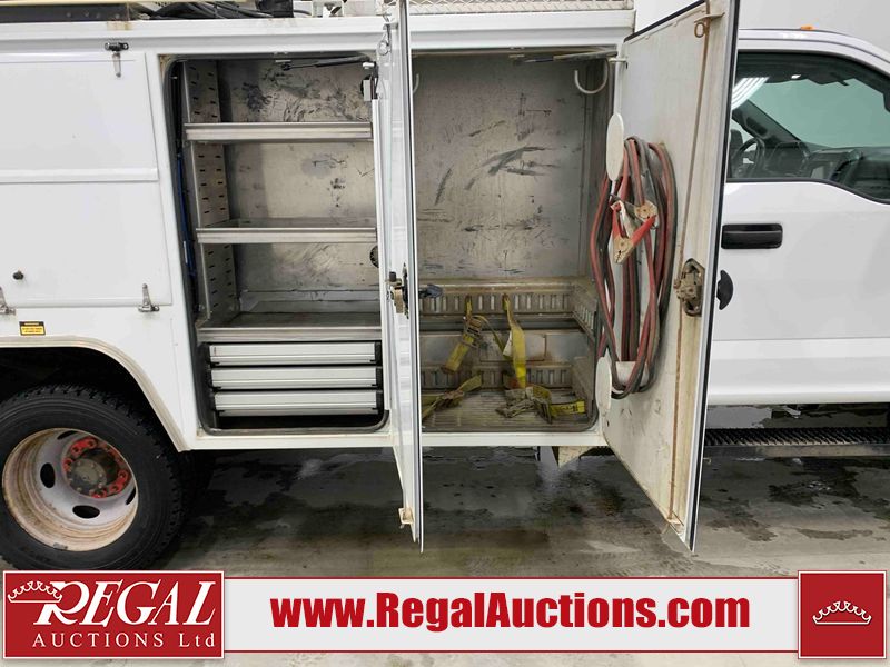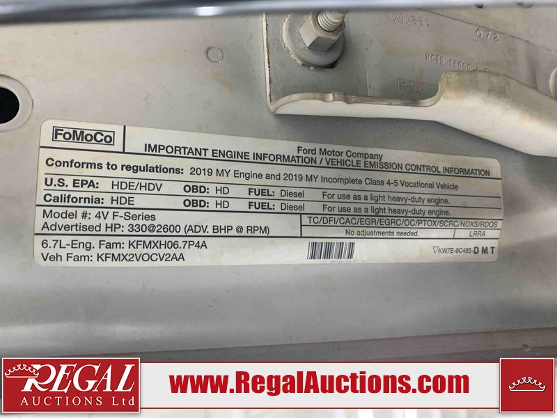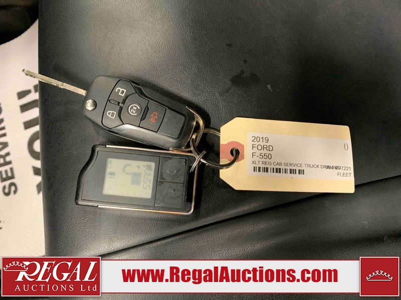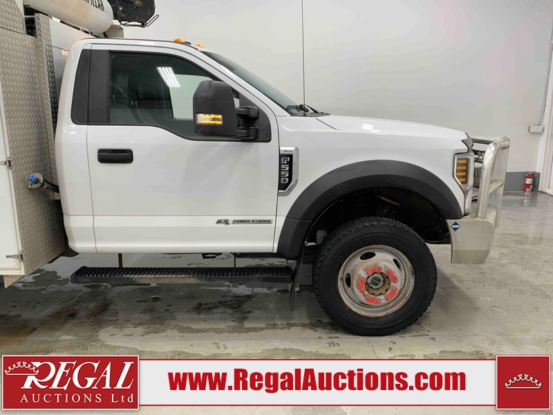 This 2019 FORD F-550 XLT REG CAB SERVICE TRUCK DRW 4WD is powered by a turbocharged 6.7 liter 8 cylinder diesel engine and an automatic transmission. It is equipped with four wheel drive. The truck has seats for 3 people. The truck has high mileage for its age. The body looks to be in very good condition overall. There are scratches on the front bumper. There is dent damage on the hood. There are chips in a few areas around the body. There are scratches in a few areas around the body. The interior looks to be in good condition overall. The windshield looks to be in good condition. All of the tires have lots of tread remaining. This truck is being sold by the fleet department of a corporation or government body. The vehicle will be sold with the following declarations: Fleet Vehicle (See Footnote 1). Footnotes: 1) This vehicle is a commercially owned work vehicle. Regal Auctions Ltd. makes no guarantee or warranty, either express or implied, with respect to the data provided in this report. The information has been provided from the consignor and from sources generally believed to be reliable, however the accuracy of this information cannot be guaranteed by Regal Auctions.