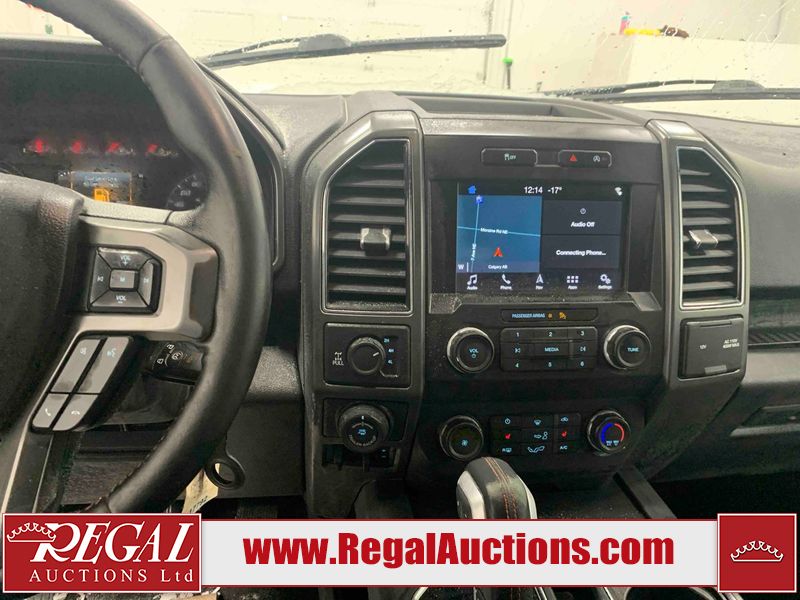 This 2019 FORD F150 XLT SUPER CAB SWB 4WD 2.7L is powered by a 6 cylinder gasoline engine and an automatic transmission. It is equipped with four wheel drive. The truck has seats for 5 people. The truck has high mileage for its age. The vehicle has high value options including power seats, heated seats, navigation, and a backup camera. The Check Engine light is on. The body looks to be in rough condition overall. There is misaligned damage to the front bumper. The front bumper is cracked. The left front fender is missing. There are chips on the front bumper, hood, roof, left front fender, left front door, left rear fender, rear bumper, tail gate, and right rear fender. There are minimal scratches on the front bumper, hood, left rear door, left rear fender, rear bumper, tail gate, right rear fender, right rear door, and right front fender. There are very minor chips in many areas around the body. There are very minor scratches in a few areas around the body. The interior looks to be in fair condition overall. The driver's seat is torn. The dashboard, driver's seat, passenger seat, rear seats, and doors are dirty. The windshield is cracked. Tailgate is inoperable. All of the tires have lots of tread remaining.