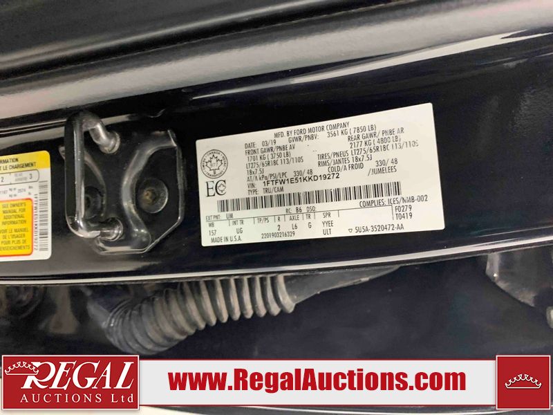 This 2019 FORD F150 XLT SUPERCREW SWB 4WD 5.0L is powered by a 8 cylinder gasoline engine and an automatic transmission. It is equipped with four wheel drive. The truck has seats for 5 people. The truck has high mileage for its age. The vehicle has high value options including power seats and a backup camera. The body looks to be in fair condition overall. There is repaint damage to the grille. The left rear fender has been repainted poorly. There are slight chips on the front bumper, grille, and hood. There are very minor scratches in many areas around the body. There are very minor chips in many areas around the body. The interior looks to be in fair condition overall. The driver's seat, passenger seat, and rear seats are stained. The driver's seat is torn. The carpet is dirty. The windshield is cracked. All of the tires have lots of tread remaining. Aftermarket alloy rims with tires have been mounted, the factory alloys are missing.