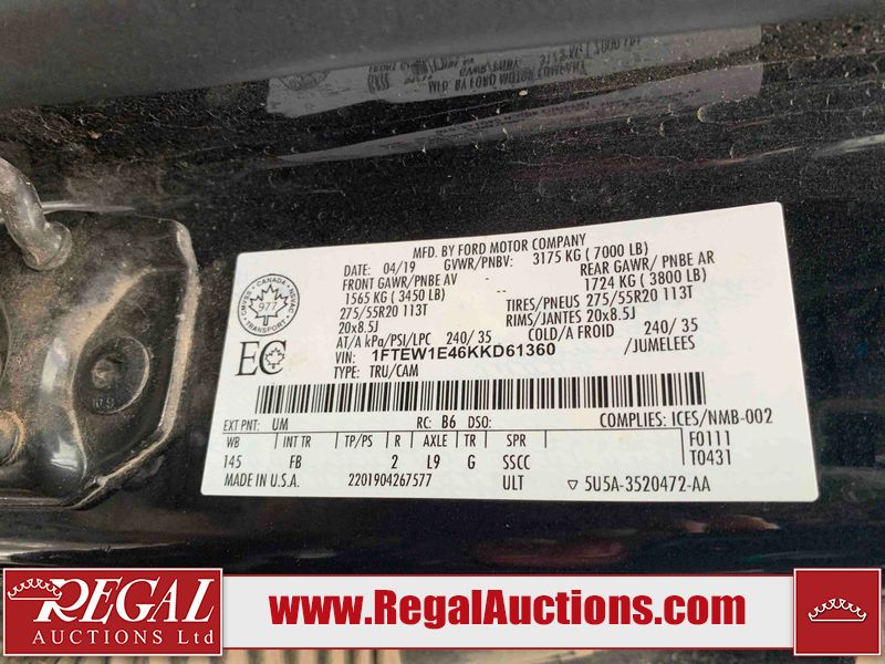 This 2019 FORD F150 XLT CREW CAB SWB 4WD 3.5L is powered by a turbocharged 6 cylinder gasoline engine and an automatic transmission. It is equipped with four wheel drive. The truck has seats for 5 people. The truck has high mileage for its age. The vehicle has high value options including power seats, heated seats, and a backup camera. The Flashing Check Engine light is on. The vehicle has some mechanical problems. The engine runs rough. The engine has a top end tick. The engine has a bottom end knock. There is white smoke coming from the engine. This unit is dirty, not all damages can be determined. The body looks to be in fair condition overall. The grille is cracked. There are minor chips on the front bumper, grille, left front door, left rear fender, rear bumper, tail gate, right rear fender, right rear door, right front door, and right front fender. There are scratches on the left front door, left rear fender, rear bumper, tail gate, right rear fender, right rear door, right front door, and right front fender. There are very minor scratches in some areas around the body. There are very minor chips in some areas around the body. There is very minor dent damage in a few areas around the body. The left tail light is broken. The handle is broken on the tail gate. The interior looks to be in rough condition overall. The driver's seat, passenger seat, and rear seats are stained. The doors are dirty. The dashboard, driver's seat, passenger seat, and rear seats are dirty. The carpet is dirty. The roof liner is dirty. The LF window is cracked. The windshield is cracked. The rear tires and the passenger front tire are all nearly bald and should be replaced. The driver's front tire is worn. The left front tire is damaged. The right front tire is damaged. The right rear tire is damaged.