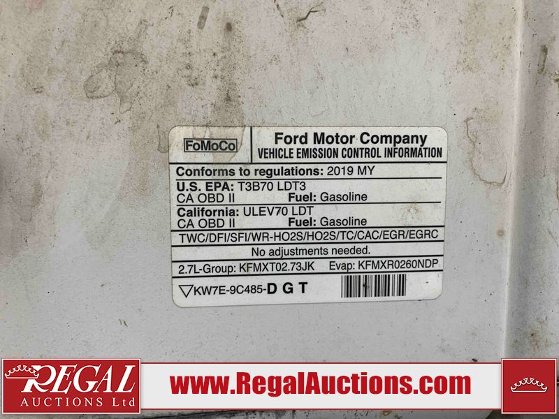 This 2019 FORD F150 XLT SUPERCREW 4WD is powered by a turbocharged 6 cylinder gasoline engine and an automatic transmission. It is equipped with four wheel drive. The truck has seats for 6 people. The truck has high mileage for its age. The vehicle has high value options including a backup camera. The Check Engine light is on. The body looks to be in fair condition overall. The fascia is broken on the front bumper. There are minor chips on the front bumper, hood, left front fender, left rear fender, and right rear fender. There is dent damage on the front bumper. There are slight scratches on the rear bumper and tail gate. There are very minor chips in many areas around the body. There are very minor scratches in many areas around the body. The interior looks to be in good condition overall. The windshield is cracked. All of the tires have lots of tread remaining. This truck is being sold by the fleet department of a corporation or government body. The vehicle will be sold with the following declarations: Fleet Vehicle (See Footnote 1). Footnotes: 1) This vehicle is a commercially owned work vehicle. Regal Auctions Ltd. makes no guarantee or warranty, either express or implied, with respect to the data provided in this report. The information has been provided from the consignor and from sources generally believed to be reliable, however the accuracy of this information cannot be guaranteed by Regal Auctions.