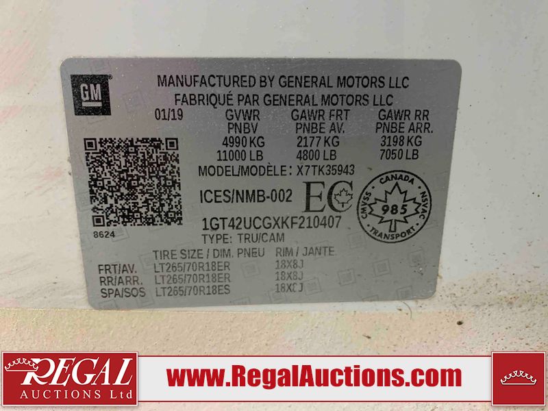 This 2019 GMC SIERRA 3500HD SLE CREW 4WD is powered by a V8 gasoline engine and an automatic transmission. It is equipped with four-wheel drive. The truck has seats for 6 people. The truck has low mileage for its age. The vehicle has high-value options including power seats. The body looks to be in fair condition overall. The front bumper is broken. There are scratches on the left front door and right rear door. There is incidental dent damage on the right rear door. There are very minor chips in many areas around the body. There are very minor scratches in many areas around the body. There is very minor dent damage on the front bumper. The interior looks to be in good condition overall. The driver and passenger seat are torn. The windshield is chipped. All of the tires have lots of tread remaining. This truck is being sold by an automotive broker. Regal Auctions Ltd. makes no guarantee or warranty, either express or implied, with respect to the data provided in this report. The information has been provided from the consignor and from sources generally believed to be reliable, however the accuracy of this information cannot be guaranteed by Regal Auctions.