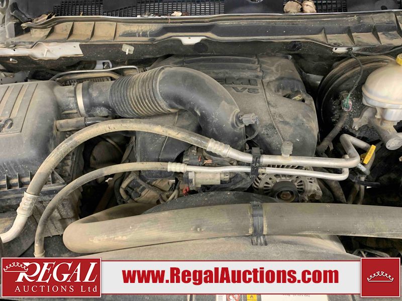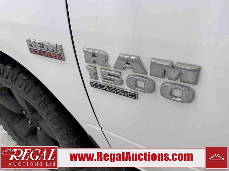 This 2019 RAM 1500 CLASSIC SLT CREW CAB 4WD 5.7L is powered by a 8 cylinder gasoline engine and an automatic transmission. It is equipped with four wheel drive. The truck has seats for 6 people. The truck has high mileage for its age. The vehicle has high value options including heated seats and a backup camera. The Check Engine light is on. The vehicle has some mechanical problems. The engine has a top end tick. The body looks to be in rough condition overall. There is some hail on the left front fender, left front door, left rear door, left rear fender, right rear fender, right rear door, right front door, and right front fender. There are incidental chips on the front bumper and hood. There is slight hail on the hood and roof. There are very minor scratches in many areas around the body. There are very minor chips in many areas around the body. There is very minor dent damage on the left rear door. The interior looks to be in good condition overall. The carpet is dirty. The windshield is damaged. All of the tires have lots of tread remaining.
