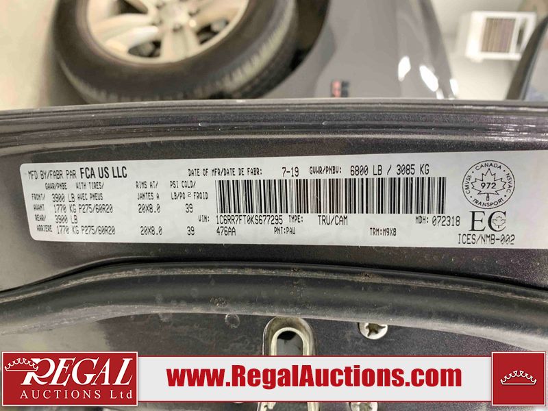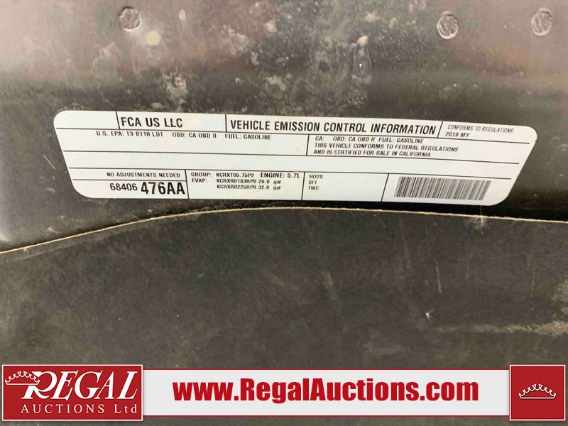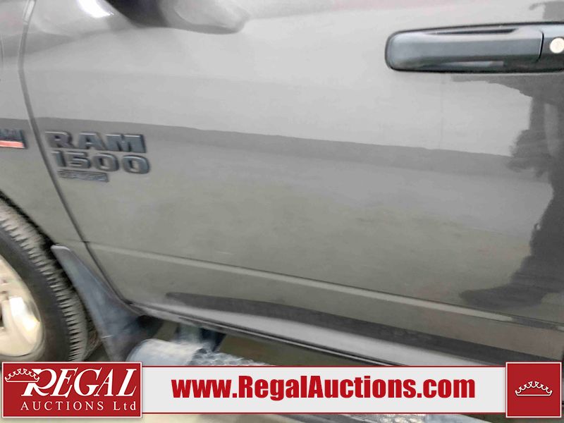This 2019 RAM 1500 CLASSIC QUAD CAB EXPRESS SWB 4WD 5.7L is powered by a 8 cylinder gasoline engine and an automatic transmission. It is equipped with four wheel drive. The truck has seats for 6 people. The truck has low mileage for its age. The vehicle has high value options including power seats, heated seats, and a backup camera. One of the key fobs is inoperable. The body looks to be in rough condition overall. The front bumper, hood, left front fender, tail gate, and right front fender have been repainted poorly. There are minimal chips on the grille, left rear fender, rear bumper, and right rear door. There are scratches on the rear bumper. There are very minor chips in many areas around the body. There are very minor scratches in many areas around the body. There is very minor dent damage on the right rear fender. There is fascia cracked damage to the tail gate. There is tinted damage to the tail lights. The interior looks to be in fair condition overall. The driver's seat and rear seats are stained. The carpet is dirty. The windshield looks to be in good condition. Both rear tires and the driver's side front tire are all worn. The passenger side front tire has lots of tread remaining.