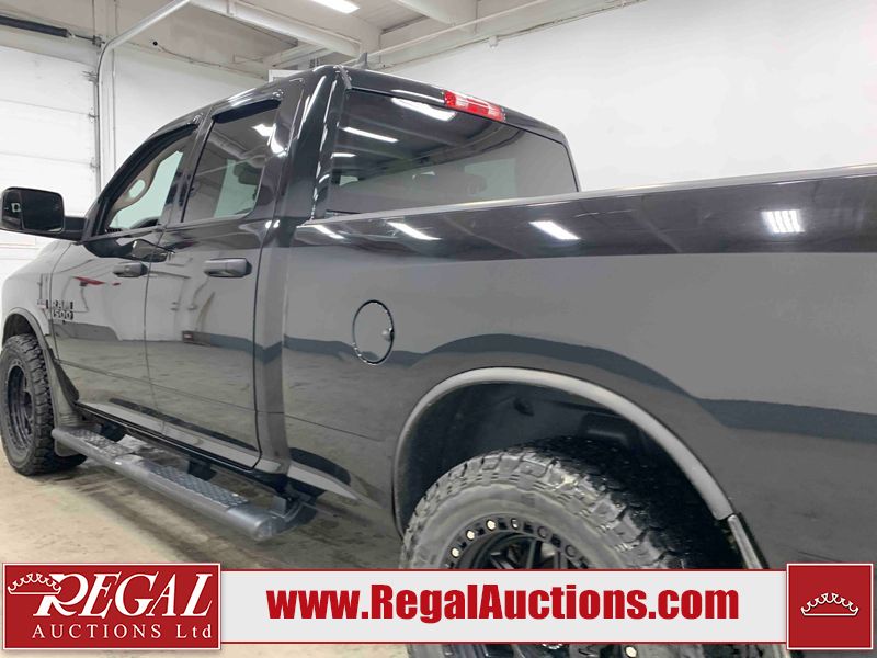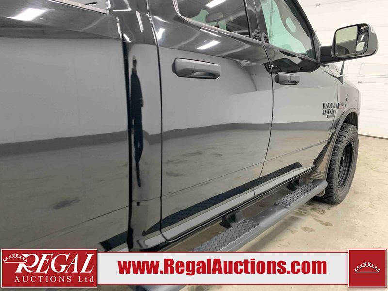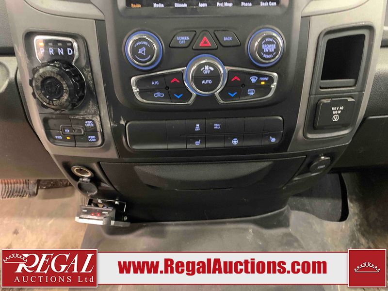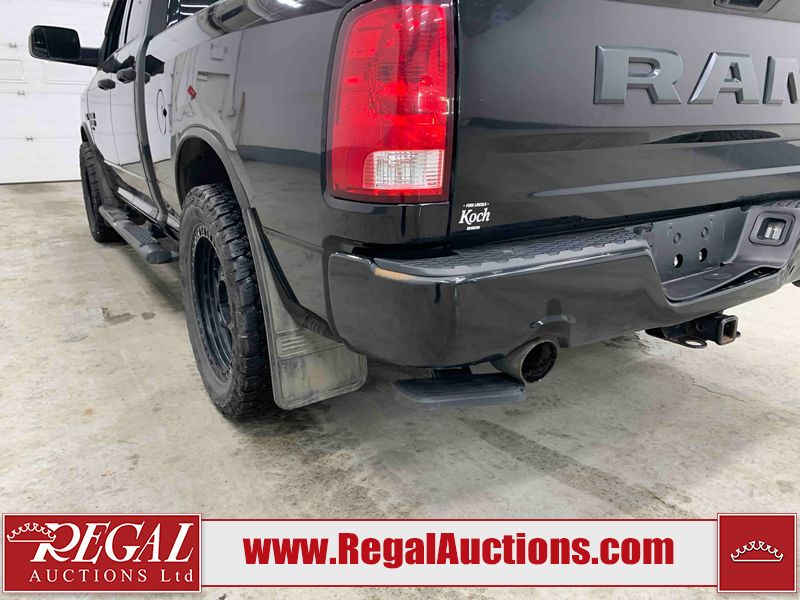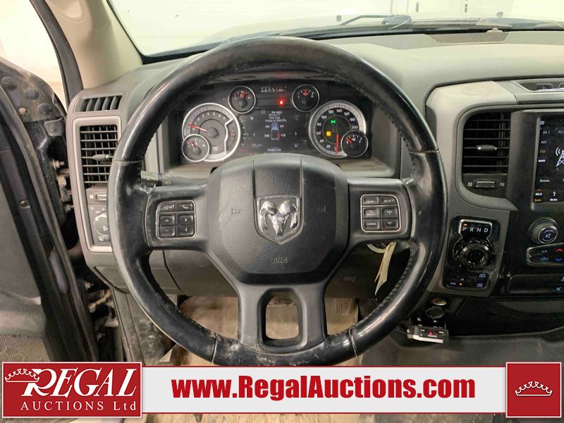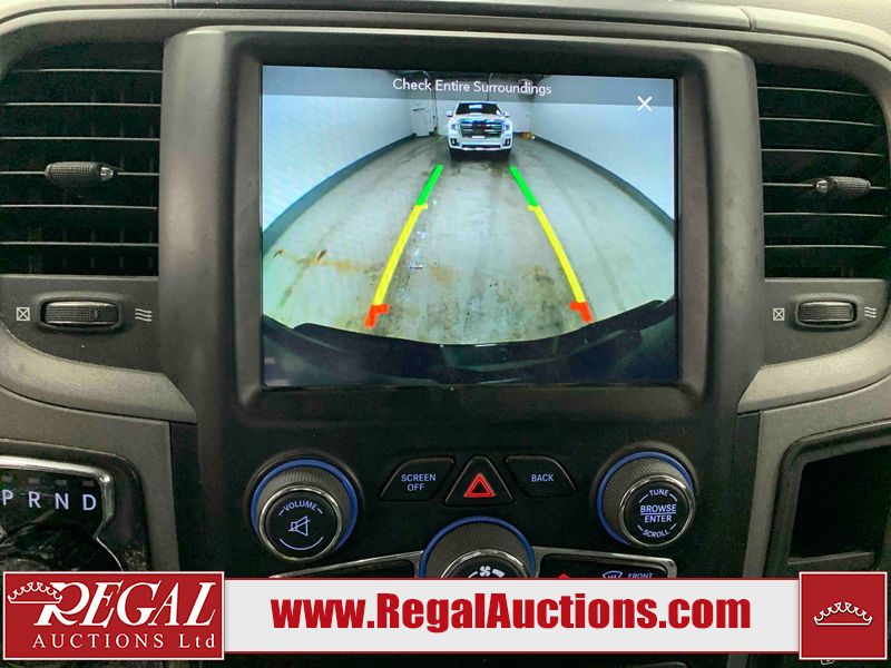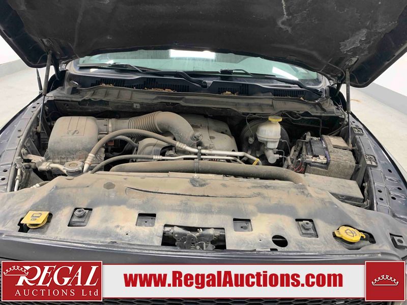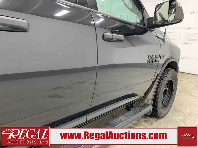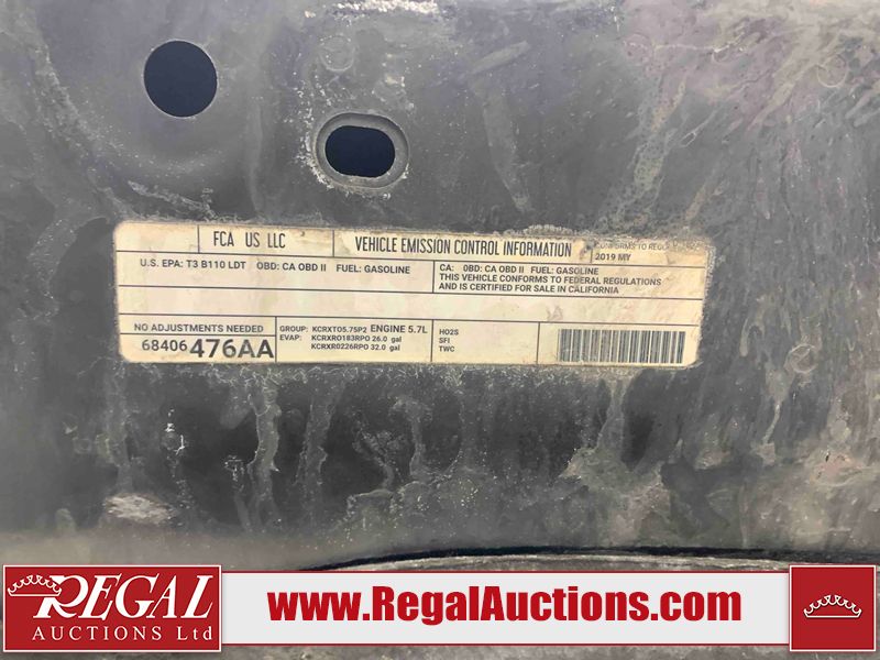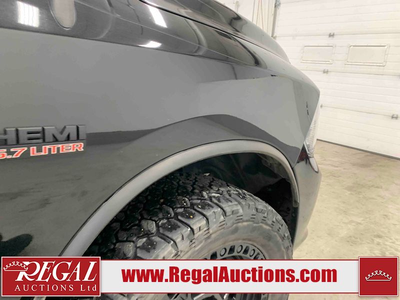 This 2019 RAM 1500 QUAD CAB SWB 4WD 5.7L is powered by a 5.7L 8 cylinder gasoline engine and an automatic transmission. It is equipped with four wheel drive. The truck has seats for 6 people. The mileage is average considering the truck's age. The vehicle has high value options including power seats, heated seats, and a backup camera. The body looks to be in rough condition overall. The front bumper has been repainted poorly. There are chips on the front bumper, left front fender, left front door, left rear door, left rear fender, rear bumper, tail gate, right rear fender, right rear door, right front door, and right front fender. There are scratches on the front bumper, left front door, left rear door, left rear fender, rear bumper, tail gate, right rear fender, right rear door, and right front door. There is minor dent damage on the front bumper, rear bumper, and tail gate. There is paint peeling on the rear bumper. There are very minor chips in a few areas around the body. There are very minor scratches in a few areas around the body. There is very minor dent damage on the left rear fender. The interior looks to be in fair condition overall. The driver's seat, passenger seat, and rear seats are stained. The dashboard and doors are dirty. The carpet is dirty. The windshield is cracked. Aftermarket alloy rims with tires have been mounted, the factory alloys are missing. Aftermarket grille has been installed.All of the tires have lots of tread remaining.