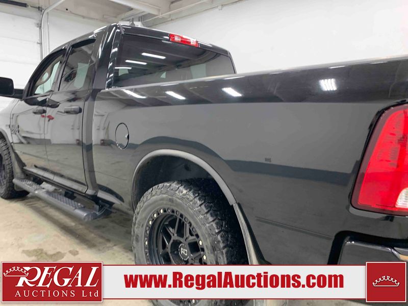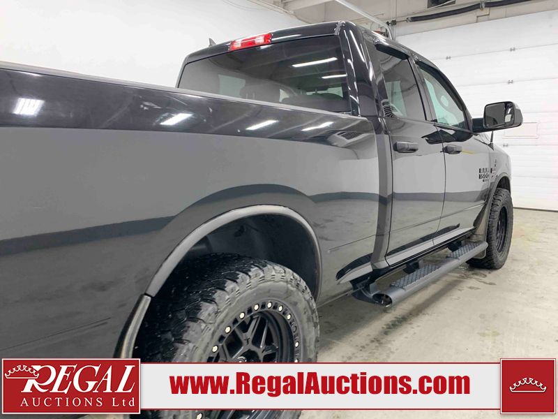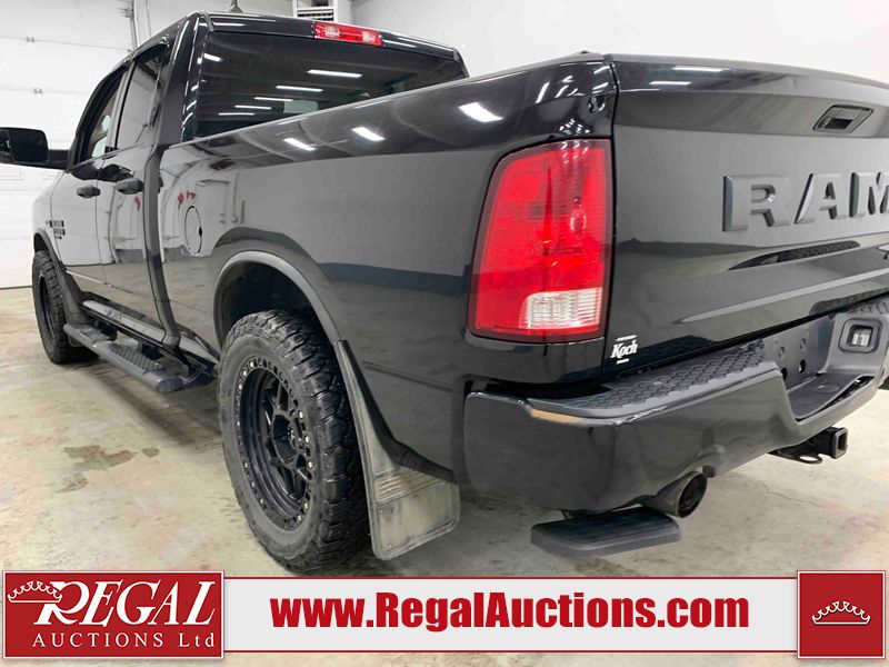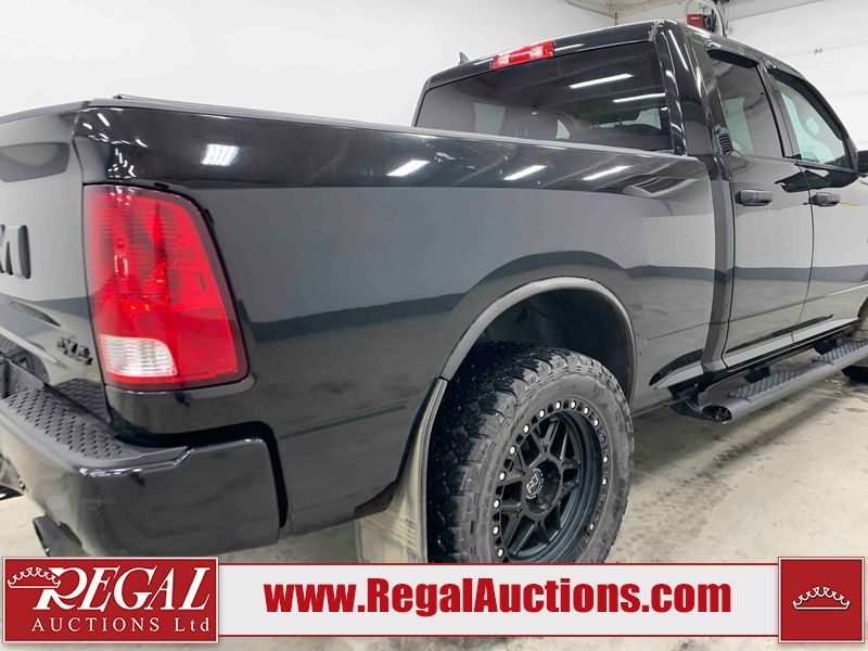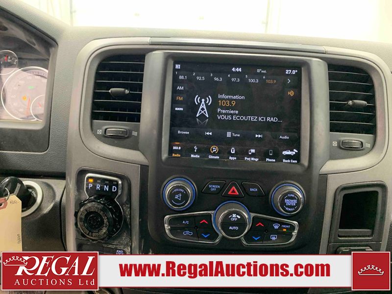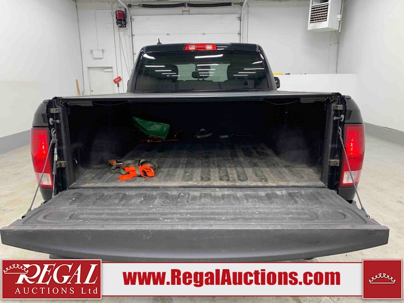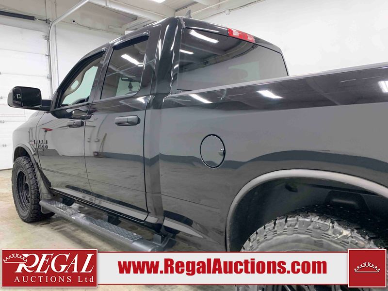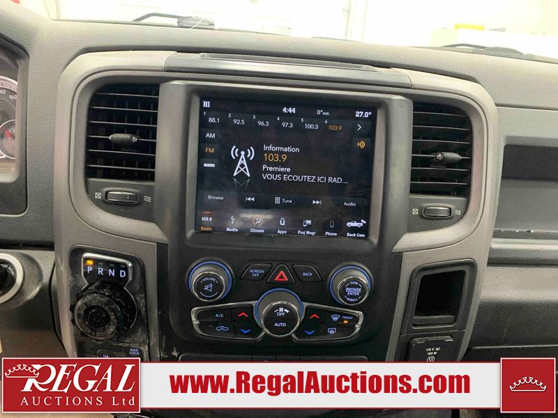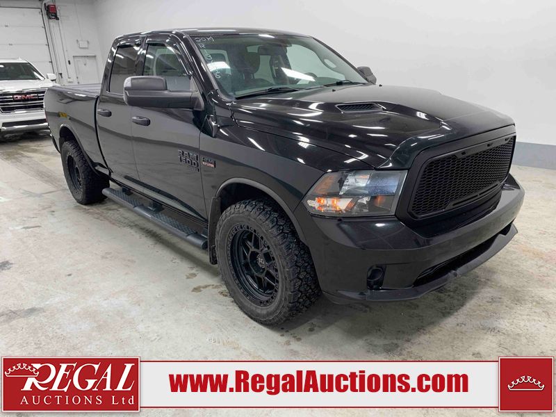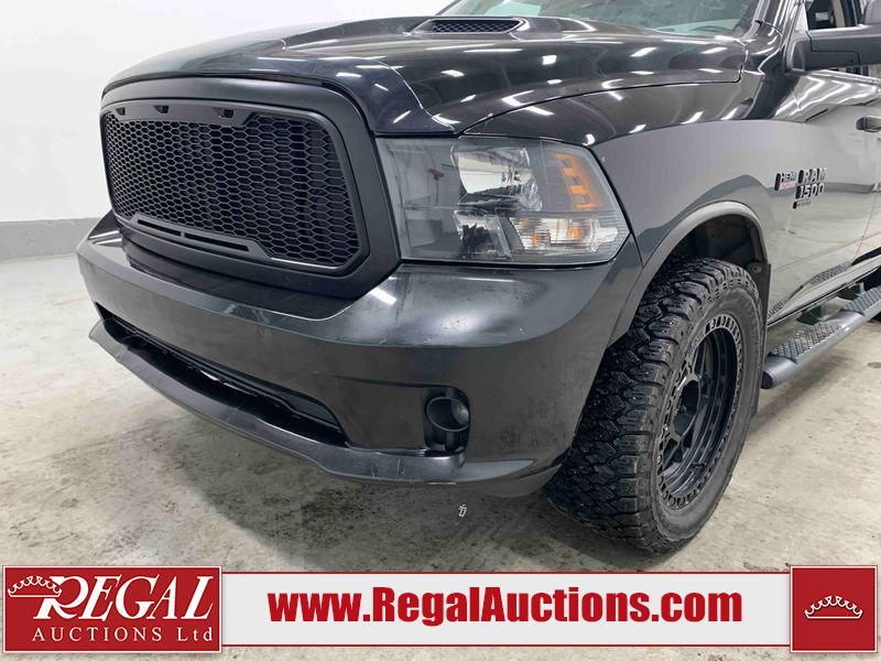 This 2019 RAM 1500 QUAD CAB SWB 4WD 5.7L is powered by a 5.7L 8 cylinder gasoline engine and an automatic transmission. It is equipped with four wheel drive. The truck has seats for 6 people. The mileage is average considering the truck's age. The vehicle has high value options including power seats, heated seats, and a backup camera. The body looks to be in rough condition overall. The front bumper has been repainted poorly. There are chips on the front bumper, left front fender, left front door, left rear door, left rear fender, rear bumper, tail gate, right rear fender, right rear door, right front door, and right front fender. There are scratches on the front bumper, left front door, left rear door, left rear fender, rear bumper, tail gate, right rear fender, right rear door, and right front door. There is minor dent damage on the front bumper, rear bumper, and tail gate. There is paint peeling on the rear bumper. There are very minor chips in a few areas around the body. There are very minor scratches in a few areas around the body. There is very minor dent damage on the left rear fender. The interior looks to be in fair condition overall. The driver's seat, passenger seat, and rear seats are stained. The dashboard and doors are dirty. The carpet is dirty. The windshield is cracked. Aftermarket alloy rims with tires have been mounted, the factory alloys are missing. Aftermarket grille has been installed.All of the tires have lots of tread remaining.