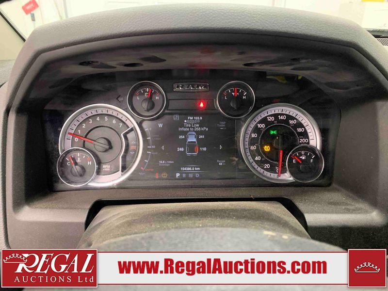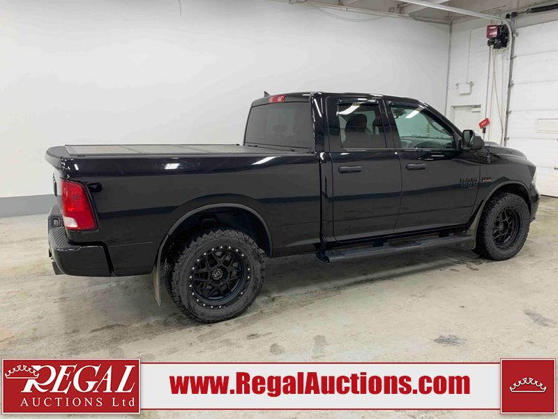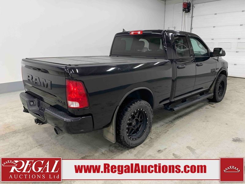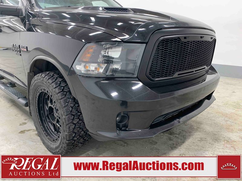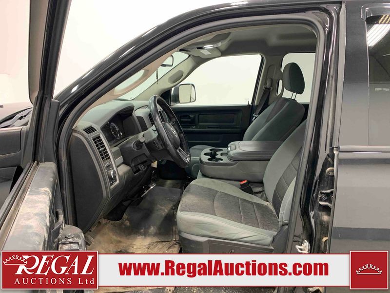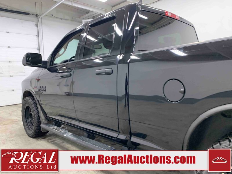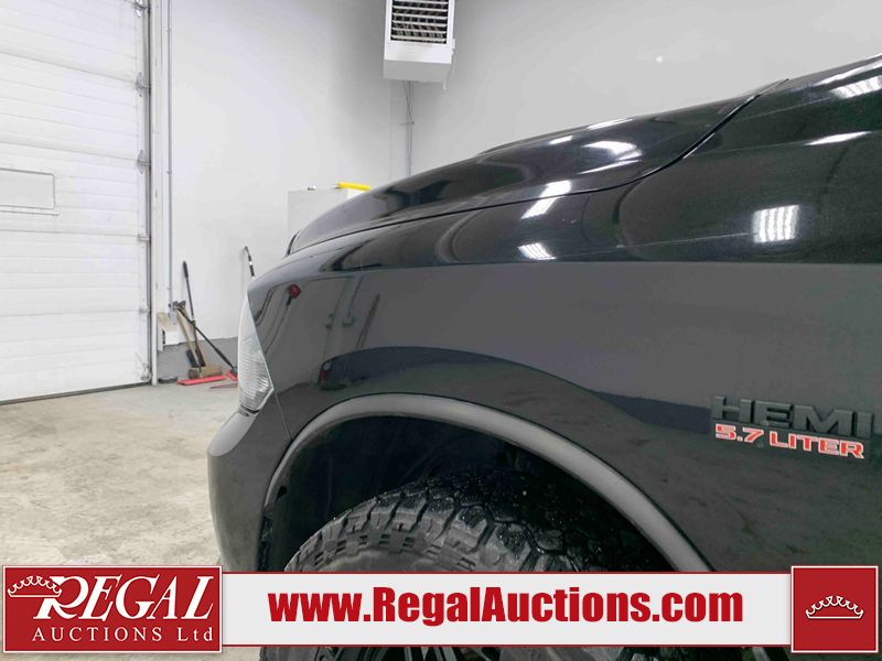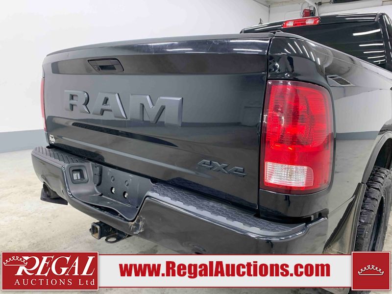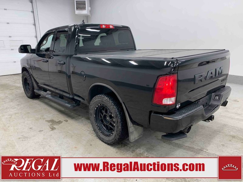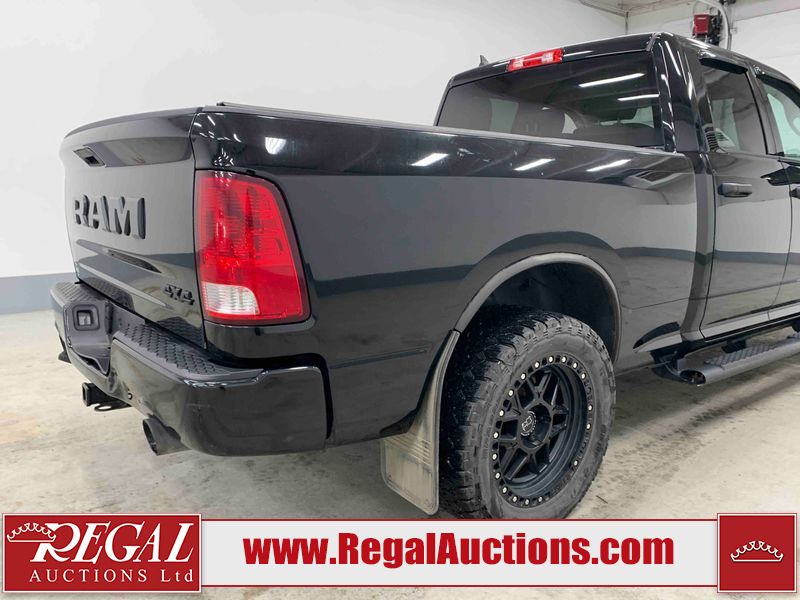 This 2019 RAM 1500 QUAD CAB SWB 4WD 5.7L is powered by a 5.7L 8 cylinder gasoline engine and an automatic transmission. It is equipped with four wheel drive. The truck has seats for 6 people. The mileage is average considering the truck's age. The vehicle has high value options including power seats, heated seats, and a backup camera. The body looks to be in rough condition overall. The front bumper has been repainted poorly. There are chips on the front bumper, left front fender, left front door, left rear door, left rear fender, rear bumper, tail gate, right rear fender, right rear door, right front door, and right front fender. There are scratches on the front bumper, left front door, left rear door, left rear fender, rear bumper, tail gate, right rear fender, right rear door, and right front door. There is minor dent damage on the front bumper, rear bumper, and tail gate. There is paint peeling on the rear bumper. There are very minor chips in a few areas around the body. There are very minor scratches in a few areas around the body. There is very minor dent damage on the left rear fender. The interior looks to be in fair condition overall. The driver's seat, passenger seat, and rear seats are stained. The dashboard and doors are dirty. The carpet is dirty. The windshield is cracked. Aftermarket alloy rims with tires have been mounted, the factory alloys are missing. Aftermarket grille has been installed.All of the tires have lots of tread remaining.