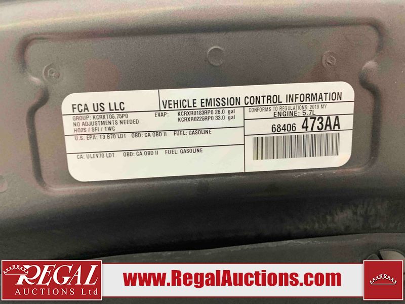 * Electronic control switch is inoperable. 4WD does not engage * BOX TOPPER REAR ACCESS DOOR INOPERABLE * This 2019 RAM 1500 LARAMIE CREW CAB is powered by a 5.7L V8 gasoline engine and an automatic transmission. It is equipped with four-wheel drive. The truck has seats for 5 people. The truck has low mileage for its age. LARAMIE is a very popular trim level. The vehicle has high-value options including leather upholstery, power seats, heated seats, navigation, and a backup camera. The Tire Pressure light is on. The vehicle has some mechanical problems. *4WD INOPERABLE* (See Footnote 1) The body looks to be in good condition overall. There are slight chips on the front bumper and hood. There are scratches on the hood, left rear fender, rear bumper, and tailgate. There are very minor chips in many areas around the body. There are very minor scratches in many areas around the body. The trim on the left fender is loose. The interior looks to be in good condition overall. The windshield is chipped. All of the tires have lots of tread remaining. This truck is being sold by a franchise dealership. The vehicle will be sold with the following declarations: Dealership Trade-In (See Footnote 2) and Mechanical Problems (See Footnote 1). Footnotes: 1) We've identified some mechanical problems with the vehicle. However, the vehicle has not undergone a mechanical inspection and our findings are not to be considered a complete evaluation of the vehicle's mechanical condition. Review our Buyer Protection Policy to see how Regal Auctions protects you from undisclosed mechanical problems. 2) This vehicle is being sold on behalf of a franchise dealership. Franchise Dealerships are automotive sales companies who are directly connected to an automotive manufacturer like Ford, Tesla, Honda, BMW, or similar. Regal Auctions Ltd. makes no guarantee or warranty, either express or implied, with respect to the data provided in this report. The information has been provided from the consignor and from sources generally believed to be reliable, however the accuracy of this information cannot be guaranteed by Regal Auctions.