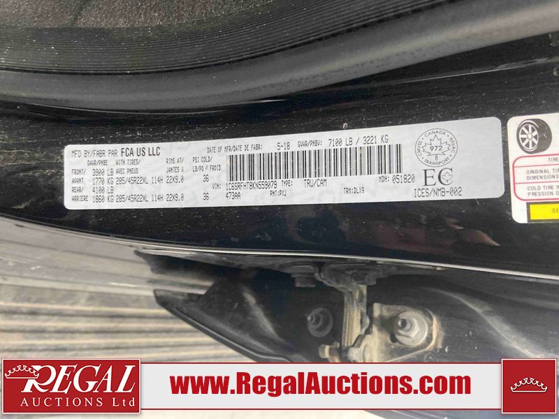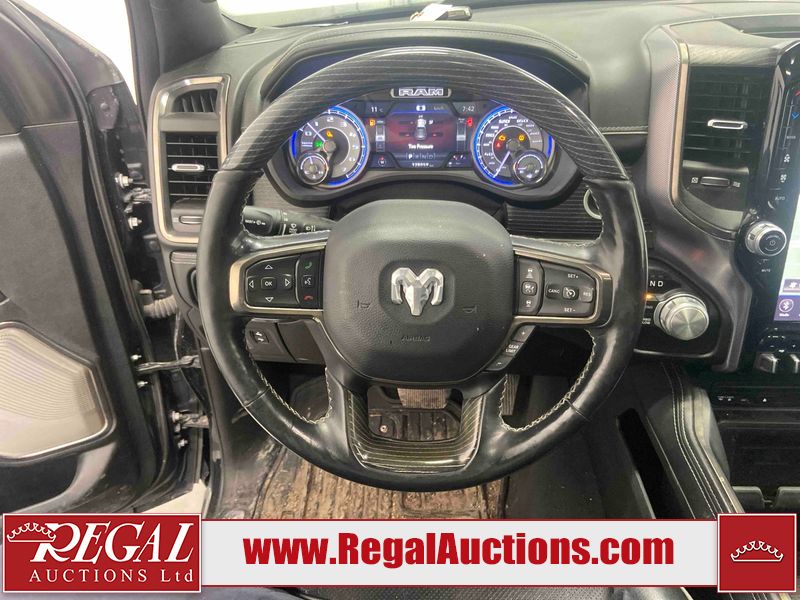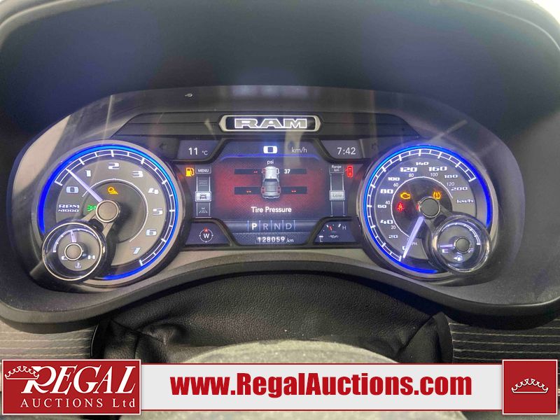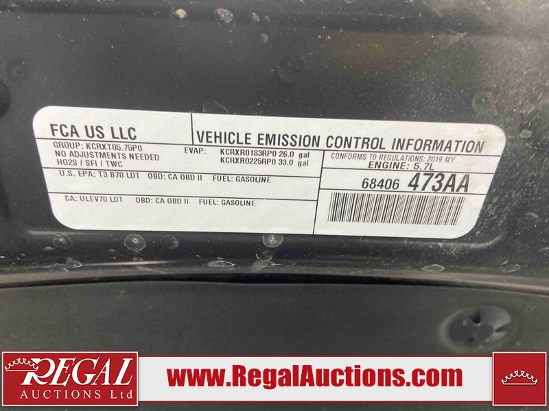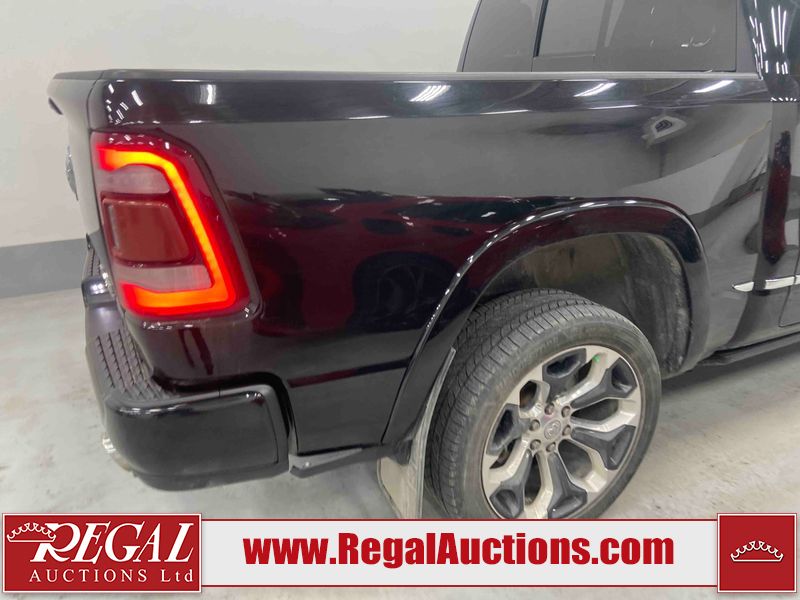 This 2019 RAM 1500 LIMITED CREW CAB SWB 4WD 5.7L is powered by a 8 cylinder gasoline engine and an automatic transmission. It is equipped with four wheel drive. The truck has seats for 5 people. The truck has low mileage for its age. LIMITED is a very popular trim level. The vehicle has high value options including leather upholstery, power seats, heated seats, navigation, and a backup camera. The Check Engine light is on. The vehicle has some mechanical problems. The exhaust is noisy. The body looks to be in good condition overall. There are minor chips on the front bumper. There is dent damage on the tail gate. There are very minor scratches in many areas around the body. There are very minor chips in many areas around the body. There is very minor dent damage in a few areas around the body. There is fascia separating damage to the right front fender. The interior looks to be in good condition overall. The carpet is dirty. The windshield looks to be in good condition. The front tires and the driver's side rear tire are all worn. The passenger side rear tire has lots of tread left.