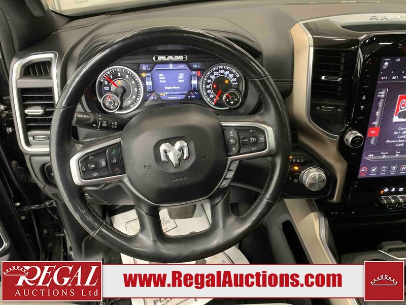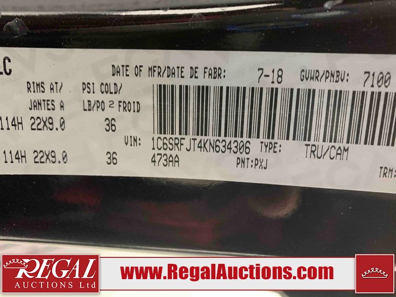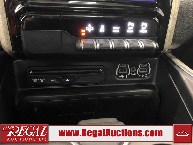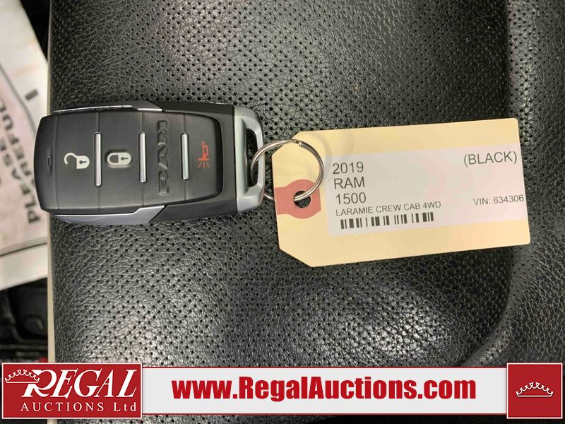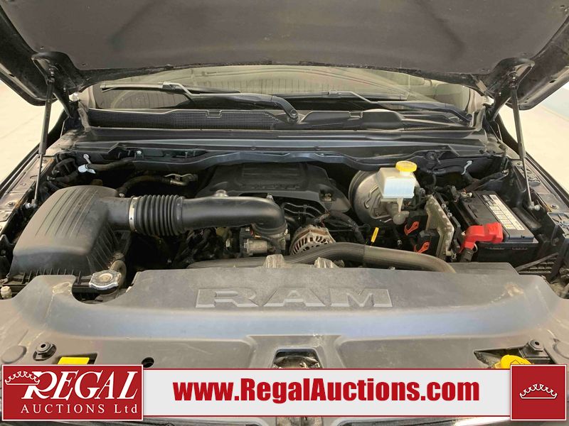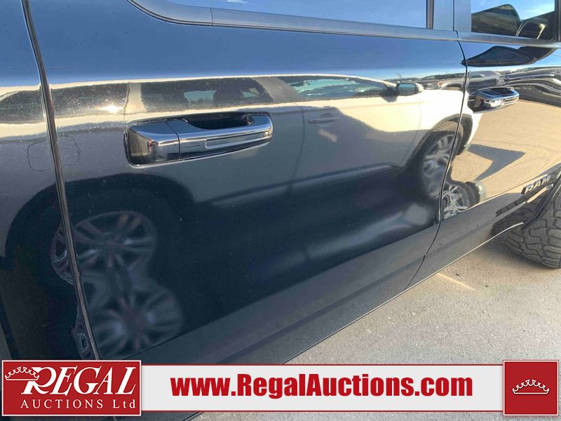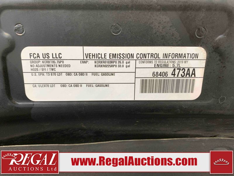 This 2019 RAM 1500 LARAMIE CREW CAB 4WD is powered by a 5.7L V8 gasoline engine and an automatic transmission. It is equipped with four-wheel drive. The truck has seats for 5 people. The mileage is average considering the truck's age. LARAMIE is a very popular trim level. The vehicle has high-value options including leather upholstery, power seats, heated seats, navigation, and a backup camera. The body looks to be in good condition overall. There is a fair amount of dent damage on the left rear fender. There are chips on the front bumper. There are scratches on the left rear door, rear bumper, and tail gate. There are very minor chips in many areas around the body. There are very minor scratches in many areas around the body. The interior looks to be in good condition overall. The windshield looks to be in good condition. All of the tires have lots of tread remaining. This truck is being sold by an automotive broker. The vehicle will be sold with the following declarations: Out of Province - ON (See Footnote 1). Footnotes: 1) The vehicle's last registered jurisdiction is Ontario. The purchaser must have the vehicle undergo and pass an Out of Province inspection before it can be registered in Alberta. Regal Auctions Ltd. makes no guarantee or warranty, either express or implied, with respect to the data provided in this report. The information has been provided from the consignor and from sources generally believed to be reliable, however the accuracy of this information cannot be guaranteed by Regal Auctions.