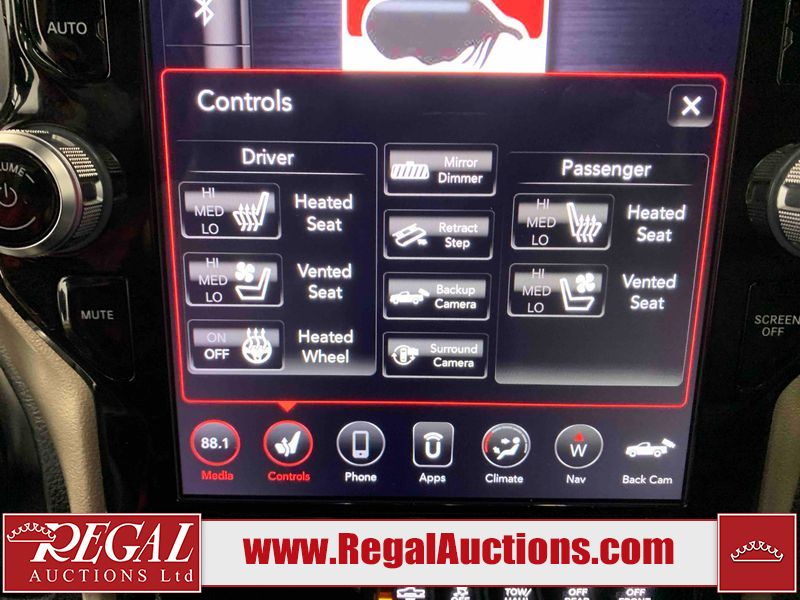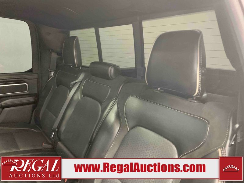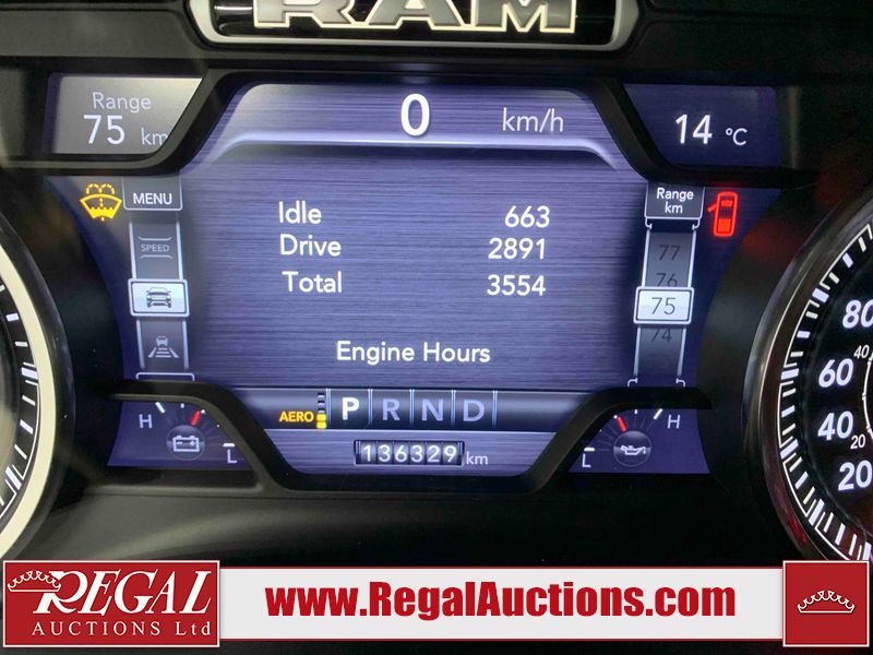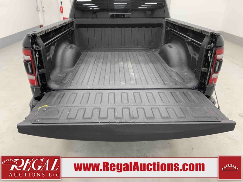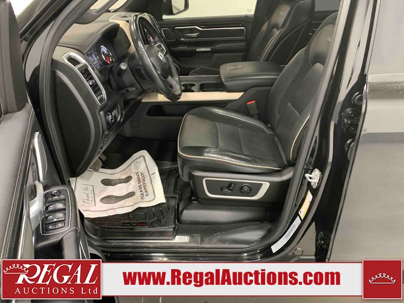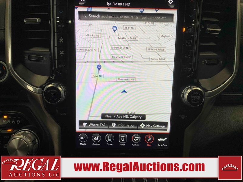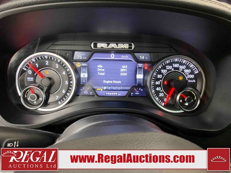 This 2019 RAM 1500 LARAMIE CREW CAB 4WD is powered by a 5.7L V8 gasoline engine and an automatic transmission. It is equipped with four-wheel drive. The truck has seats for 5 people. The mileage is average considering the truck's age. LARAMIE is a very popular trim level. The vehicle has high-value options including leather upholstery, power seats, heated seats, navigation, and a backup camera. The body looks to be in good condition overall. There is a fair amount of dent damage on the left rear fender. There are chips on the front bumper. There are scratches on the left rear door, rear bumper, and tail gate. There are very minor chips in many areas around the body. There are very minor scratches in many areas around the body. The interior looks to be in good condition overall. The windshield looks to be in good condition. All of the tires have lots of tread remaining. This truck is being sold by an automotive broker. The vehicle will be sold with the following declarations: Out of Province - ON (See Footnote 1). Footnotes: 1) The vehicle's last registered jurisdiction is Ontario. The purchaser must have the vehicle undergo and pass an Out of Province inspection before it can be registered in Alberta. Regal Auctions Ltd. makes no guarantee or warranty, either express or implied, with respect to the data provided in this report. The information has been provided from the consignor and from sources generally believed to be reliable, however the accuracy of this information cannot be guaranteed by Regal Auctions.