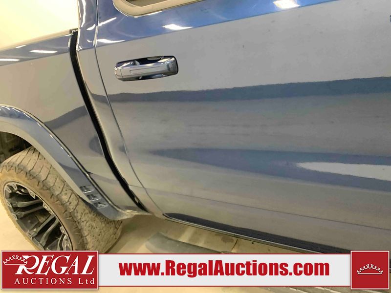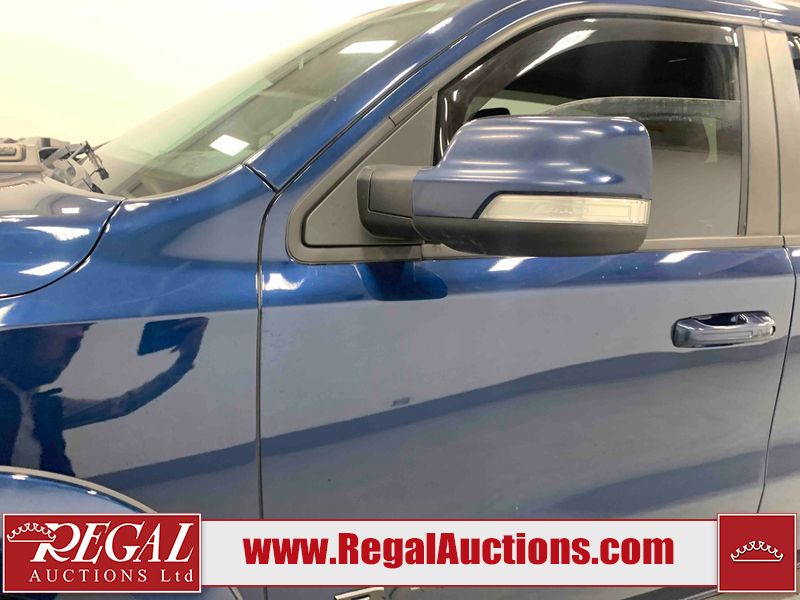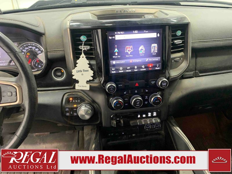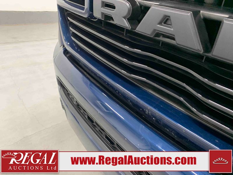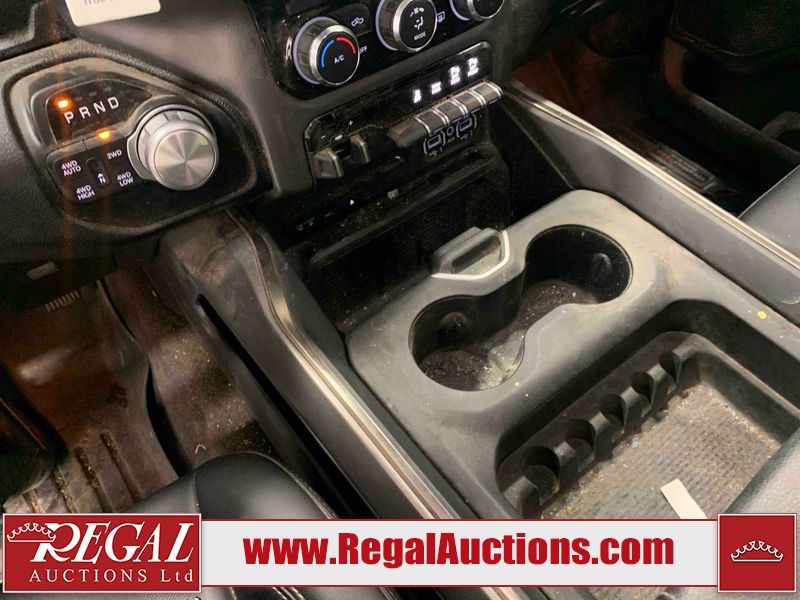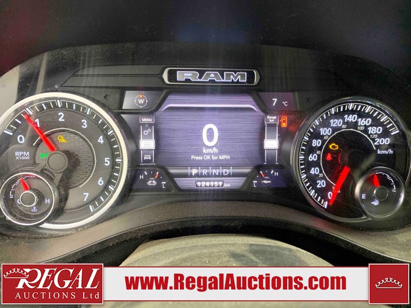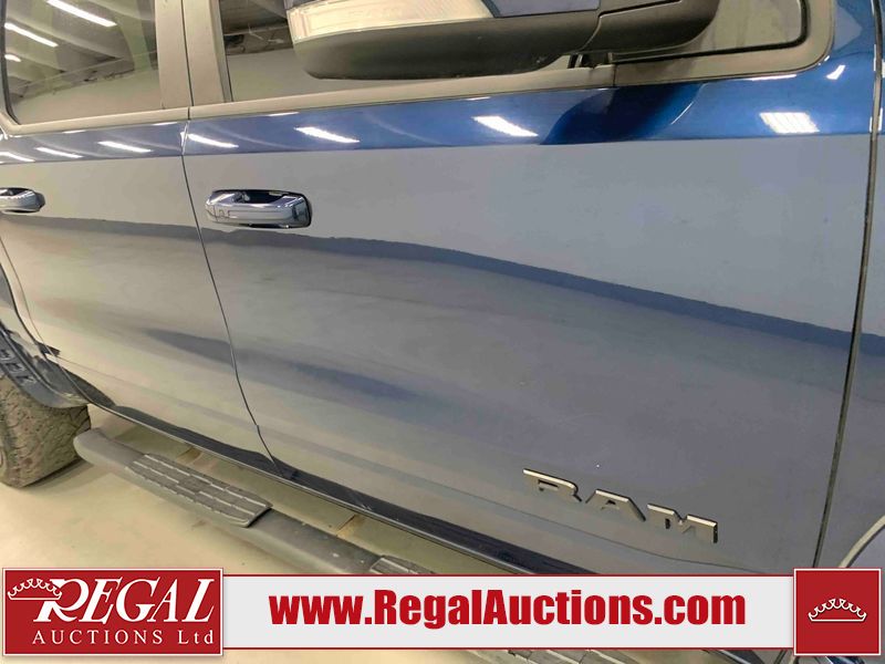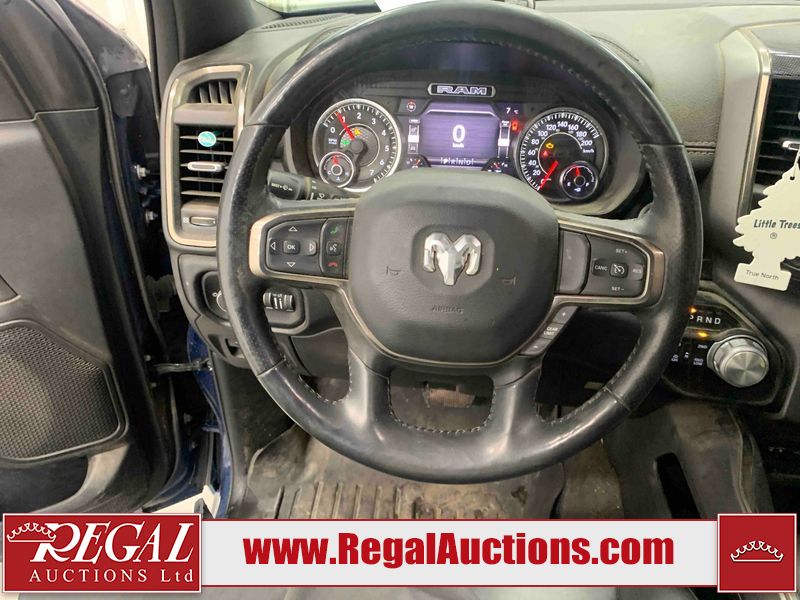 This 2019 RAM 1500 SPORT CREW CAB SWB 4WD 5.7L is powered by a 8 cylinder gasoline engine and an automatic transmission. It is equipped with four wheel drive. The truck has seats for 5 people. The mileage is average considering the truck's age. The vehicle has high value options including leather upholstery, power seats, heated seats, navigation, and a backup camera. The Check Engine light is on. The vehicle has some mechanical problems. The engine has a top end tick. Aftermarket exhaust tips have been installed. Aftermarket master air filter has been installed. The body looks to be in rough condition overall. The left rear door has been repainted poorly. There is considerable dent damage on the rear bumper. There is a fair amount of hail on the hood and roof. There are chips on the front bumper, grille, hood, roof, rear bumper, tail gate, right rear fender, and right front door. There are minor scratches on the front bumper, rear bumper, tail gate, and right rear fender. There is paint peeling on the rear bumper. There are very minor scratches in many areas around the body. There are very minor chips in many areas around the body. There is very minor dent damage on the left rear fender. The interior looks to be in rough condition overall. The passenger seat, rear seats, and doors are stained. The dashboard, driver's seat, passenger seat, rear seats, and doors are dirty. The carpet is dirty. The windshield is cracked. The driver's side front tire and passenger side rear tire are both worn. The passenger side front tire and the driver's side rear tire are both nearly bald and should be replaced. Aftermarket alloy rims with tires mounted have been installed, factory rims are missing.