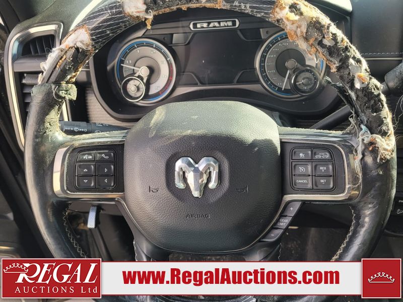 The interior is damaged, a dog has chewed the steering wheel and door handles. The carpet and rear seats are torn. Engine does not turn over, two big boosters cant turn it over, something internally is binding in engine.This 2019 RAM 2500 LIMITED CREW CAB SWB 4WD 6.7L is powered by a turbocharged 6 cylinder diesel engine and an automatic transmission. It is equipped with four wheel drive. The truck has seats for 5 people. The vehicle has high value options including power seats. The Flashing Check Engine and Collision lights are on. The vehicle has some mechanical problems. This unit needs to be towed through the auction as the engine does not turn over. The engine requires major internal repair or replacement. It's engine, transmission, and driveline cannot be confirmed. The body looks to be in good condition overall. There is incidental paint peeling on the tail gate. There are very minor chips in many areas around the body. There are very minor scratches in many areas around the body. There is rock guard on the front bumper, rear bumper, all fender, flares, and all lower panels of the vehicle. The carpet is dirty. The windshield is cracked. The driver side mirror is broken. The driver's door window is cracked. All of the tires have lots of tread remaining. Aftermarket alloy rims have been installed, the factory alloys are missing.