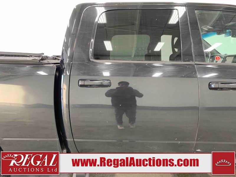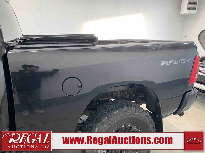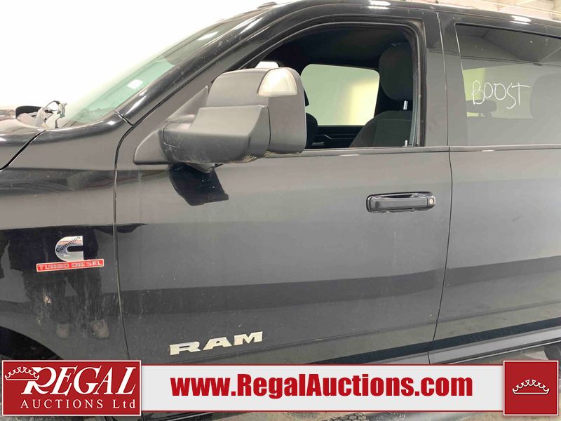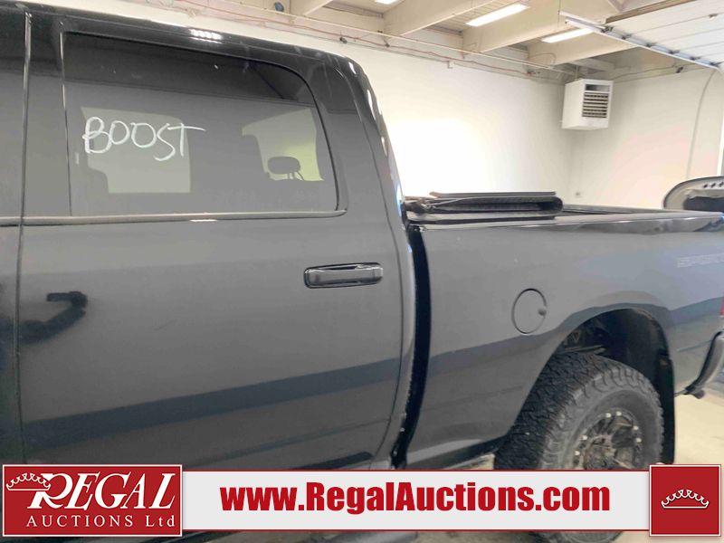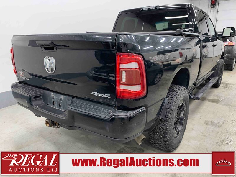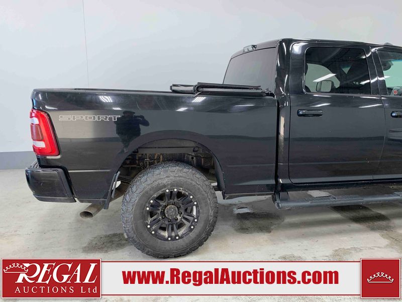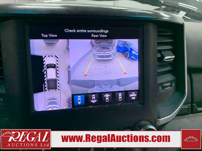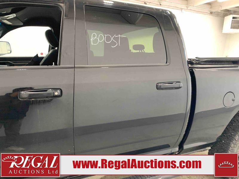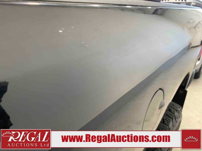 This 2019 RAM 3500 BIG HORN CREW CAB SWB 4WD 6.7L is powered by a turbocharged 8 cylinder diesel engine and an automatic transmission. It is equipped with four wheel drive. The truck has seats for 6 people. The truck has high mileage for its age. The vehicle has high value options including power seats, heated seats, navigation, and a backup camera. The Check Engine light is on. The body looks to be in fair condition overall. There are chips on the front bumper, hood, roof, left front fender, left front door, left rear door, left rear fender, rear bumper, tail gate, right rear fender, right rear door, right front door, and right front fender. There are minimal scratches on the front bumper, hood, left front fender, left front door, left rear door, left rear fender, rear bumper, tail gate, right rear fender, right rear door, right front door, and right front fender. There is very minor dent damage on the right rear fender. The interior looks to be in fair condition overall. The dashboard, driver's seat, passenger seat, rear seats, and doors are dirty. The windshield is cracked. The front tires are both worn. The rear tires both have lots of tread remaining. Aftermarket all the way rims with tires have been mounted, the factory alloys are missing.