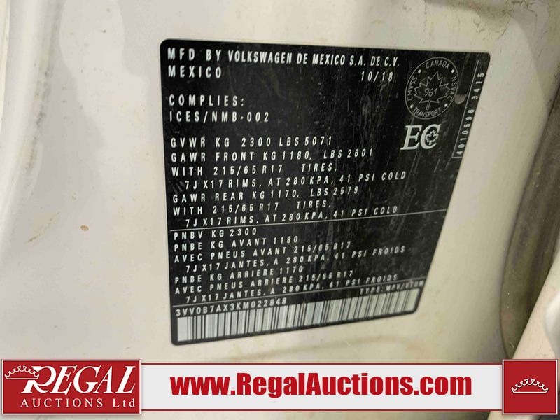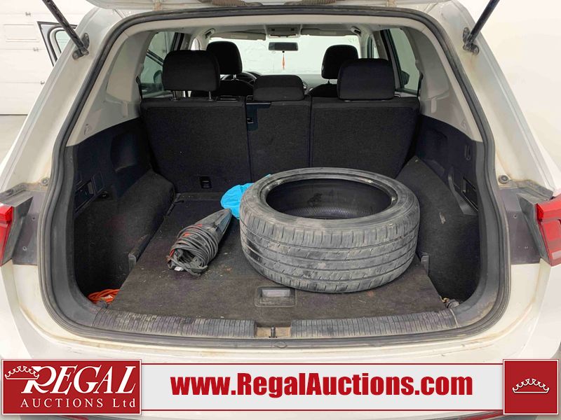 This 2019 VOLKSWAGEN TIGUAN TRENDLINE 4D UTILITY AWD 2.0L is powered by a 4 cylinder gasoline engine and an automatic transmission. It is equipped with four wheel drive. The truck has seats for 5 people. The truck has high mileage for its age. The vehicle has high value options including power seats, heated seats, and a backup camera. The Power steering, Check Engine, and Stability Control lights are on. The vehicle has some mechanical problems. The battery is dead. The vehicle requires a boost to start and may require a booster pack in order to stay running. The power windows are inoperable. The body looks to be in rough condition overall. There is facisa misaligned damage to the front bumper. The front bumper and left front door are cracked. There are very bad scratches on the front bumper. There are minimal chips on the front bumper, hood, roof, left front fender, rear bumper, and right front door. There is incidental paint peeling on the grille. There is minimal dent damage on the left rear door. There are slight scratches on the rear bumper. There are very minor chips in many areas around the body. There are very minor scratches in many areas around the body. There is very minor dent damage in a few areas around the body. The interior looks to be in rough condition overall. The driver's seat, passenger seat, rear seats, and doors are stained. There are some cigarette burns on the driver's seat. The dashboard, passenger seat, rear seats, and doors are dirty. The carpet is dirty. The roofline is dirty. The driver side sun visor has a piece missing and is hanging. There is panel missing damage to the dashboard. The windshield is damaged. All of the tires are nearly bald and should be replaced. There's a spare tire in the rear.