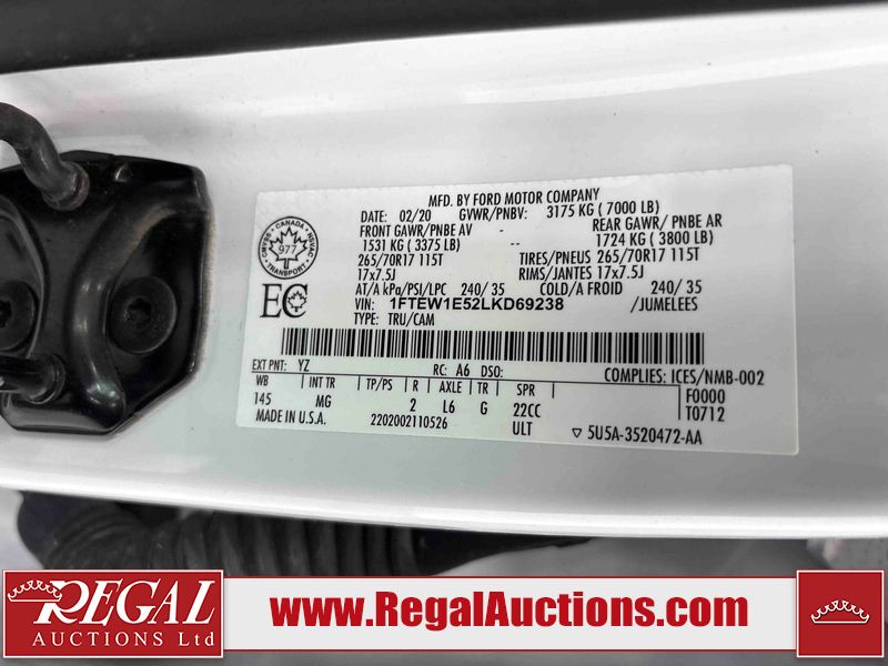 This 2020 FORD F-150 4D CREW CAB PICKUP 4WD is powered by a 5.0L V8 gasoline engine and an automatic transmission. It is equipped with four-wheel drive. The truck has seats for 6 people. The truck has high mileage for its age. The vehicle has high value options including a backup camera. The Check Engine and Tire Pressure lights are on. The body looks to be in fair condition overall. The front bumper and left rear fender have been repainted poorly. The left rear door is broken. There is paint peeling on the roof. There is incidental rust on the left front door. There are scratches on the left rear fender. There are very minor chips in many areas around the body. There are very minor scratches in many areas around the body. There is very minor dent damage in a few areas around the body. The interior looks to be in good condition overall. The driver's seat is torn. The windshield is cracked. The front tires are nearly bald and should be replaced. The rear tires are worn. This truck is being sold by a franchise dealership. The vehicle will be sold with the following declarations: Dealership Trade-In (See Footnote 1). Footnotes: 1) This vehicle is being sold on behalf of a franchise dealership. Franchise Dealerships are automotive sales companies who are directly connected to an automotive manufacturer like Ford, Tesla, Honda, BMW, or similar. Regal Auctions Ltd. makes no guarantee or warranty, either express or implied, with respect to the data provided in this report. The information has been provided from the consignor and from sources generally believed to be reliable, however the accuracy of this information cannot be guaranteed by Regal Auctions.