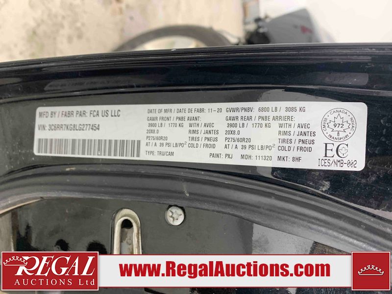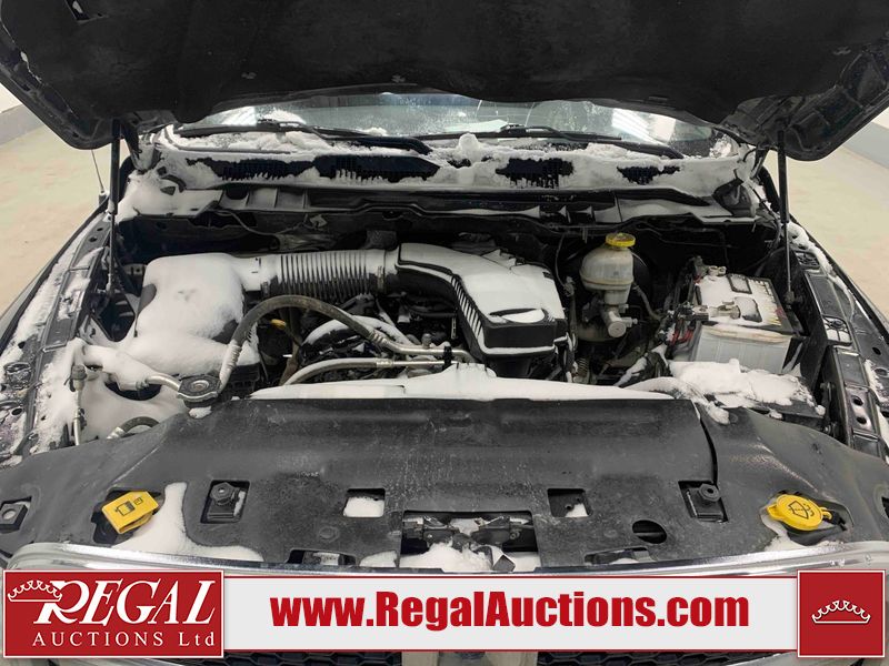 This 2020 RAM 1500 CLASSIC TRADESMAN CREW CAB SWB 4WD 3.6L is powered by a 6 cylinder gasoline engine and an automatic transmission. It is equipped with four wheel drive. The truck has seats for 6 people. The vehicle has high value options including power seats, heated seats, and a backup camera. The Check Engine light is on. The vehicle has some mechanical problems. The battery is dead. The vehicle requires a boost to start and may require a booster pack in order to stay running. The body looks to be in rough condition overall. The front bumper is missing. There is considerable hail on the left rear fender. The rear bumper is broken. There are scratches on the hood, rear bumper, tail gate, right rear fender, and right front fender. There is minor hail on the hood, roof, left front fender, left front door, left rear door, right rear door, and right front door. The rear bumper and tail gate have parts missing. There are chips on the tail gate and right rear fender. There is dent damage on the tail gate, right rear fender, and right front fender. There is rust on the tail gate and right rear fender. There are very minor chips in many areas around the body. There are very minor scratches in many areas around the body. The right tail light is broken. The interior looks to be in good condition overall. The carpet is dirty. The windshield is damaged. The windshield is cracked. All of the tires have lots of tread remaining.